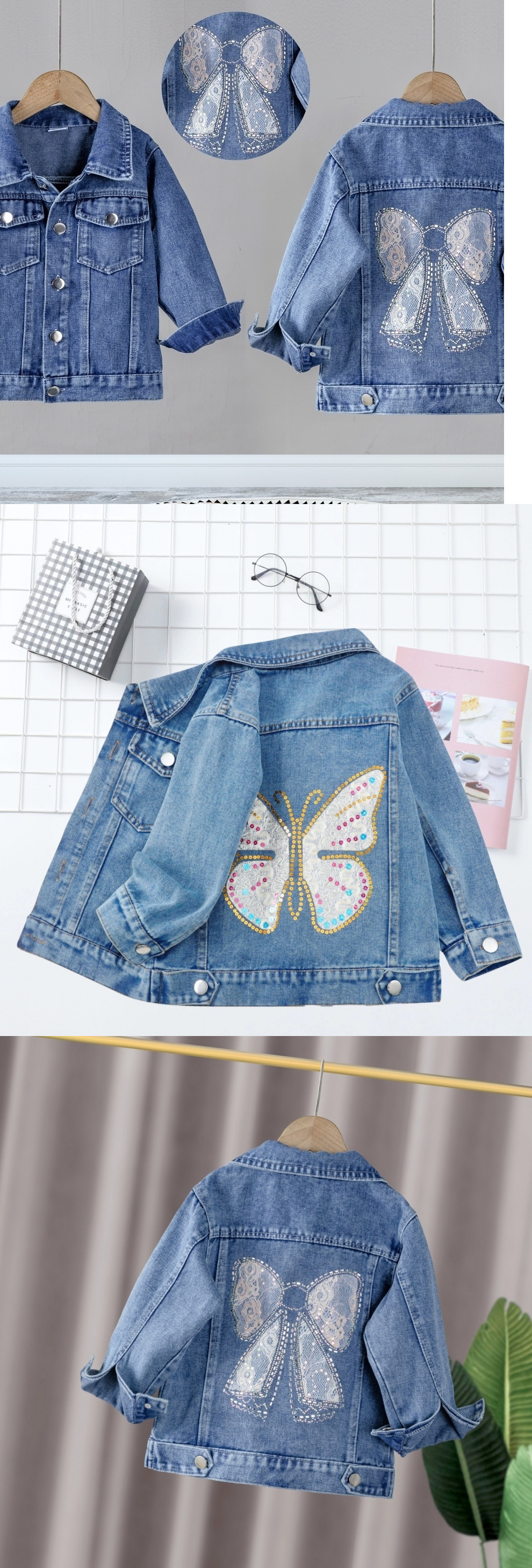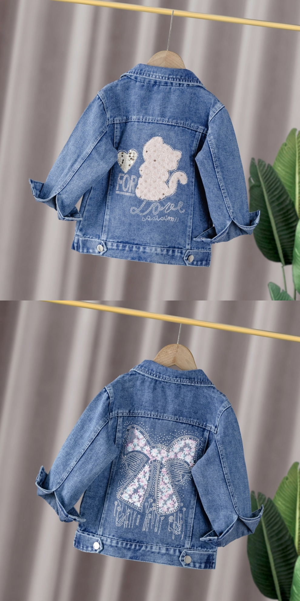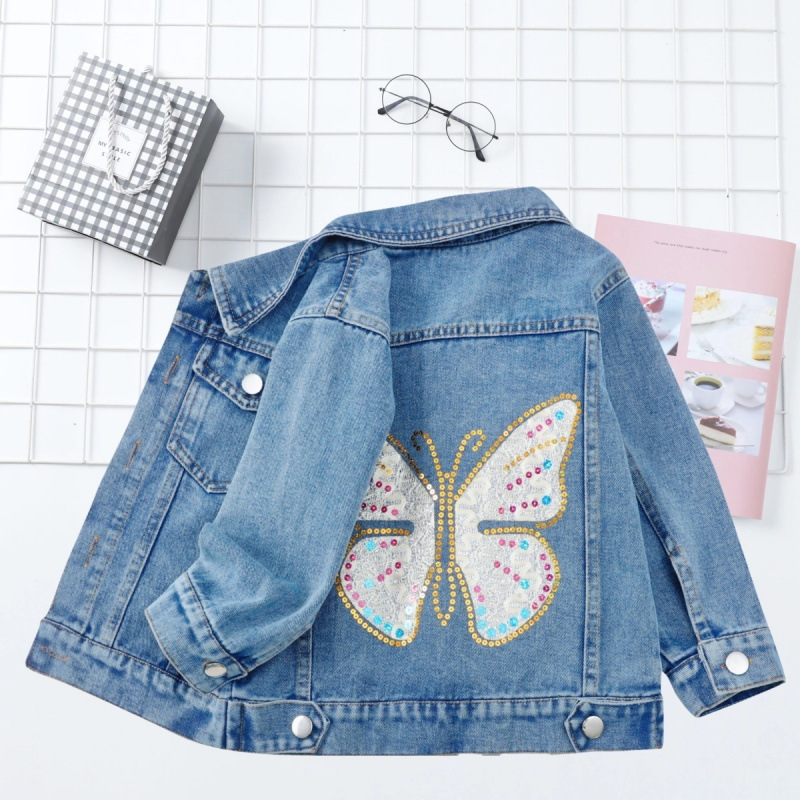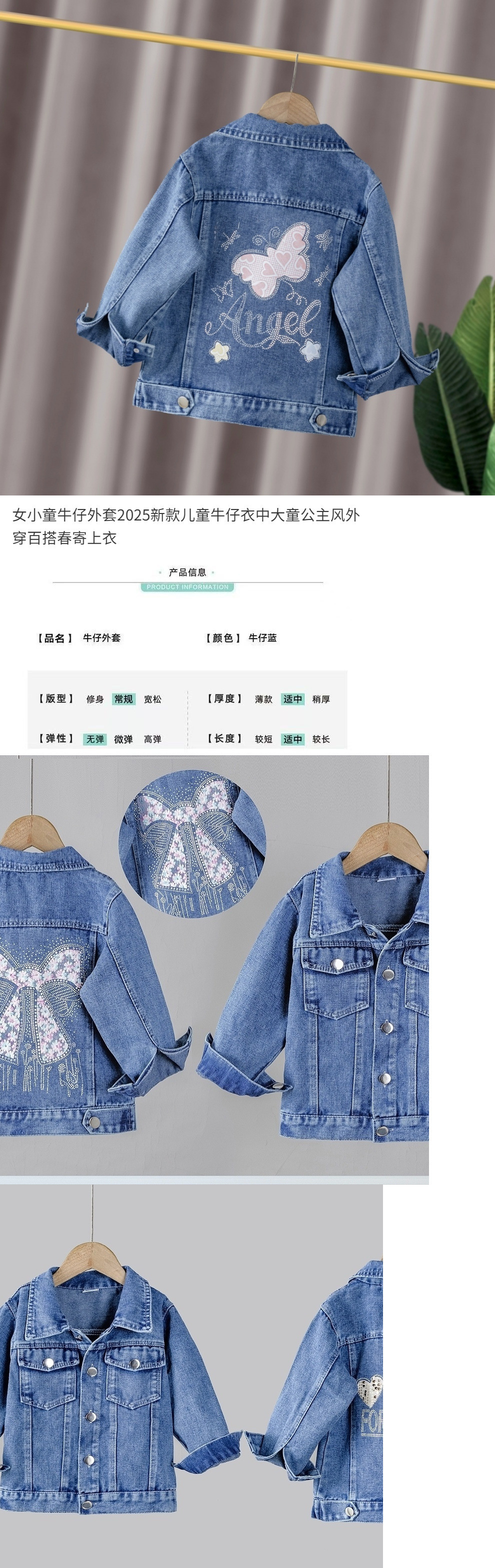 Chaqueta de mezclilla para niñas 2025 nueva ropa de mezclilla para niños, estilo princesa para niños grandes, tops de primavera de todo fósforo