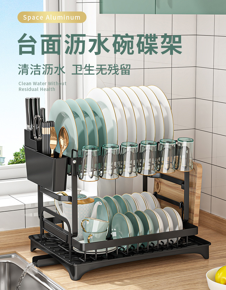Estante para platos de drenaje plegable sin instalación, estante para el acabado de la cocina, palillos, cuchillo y tenedor, estante de almacenamiento para tazas de agua