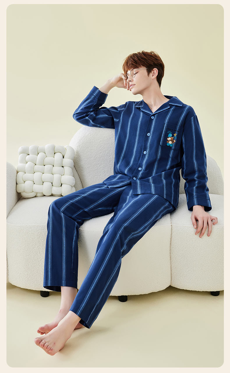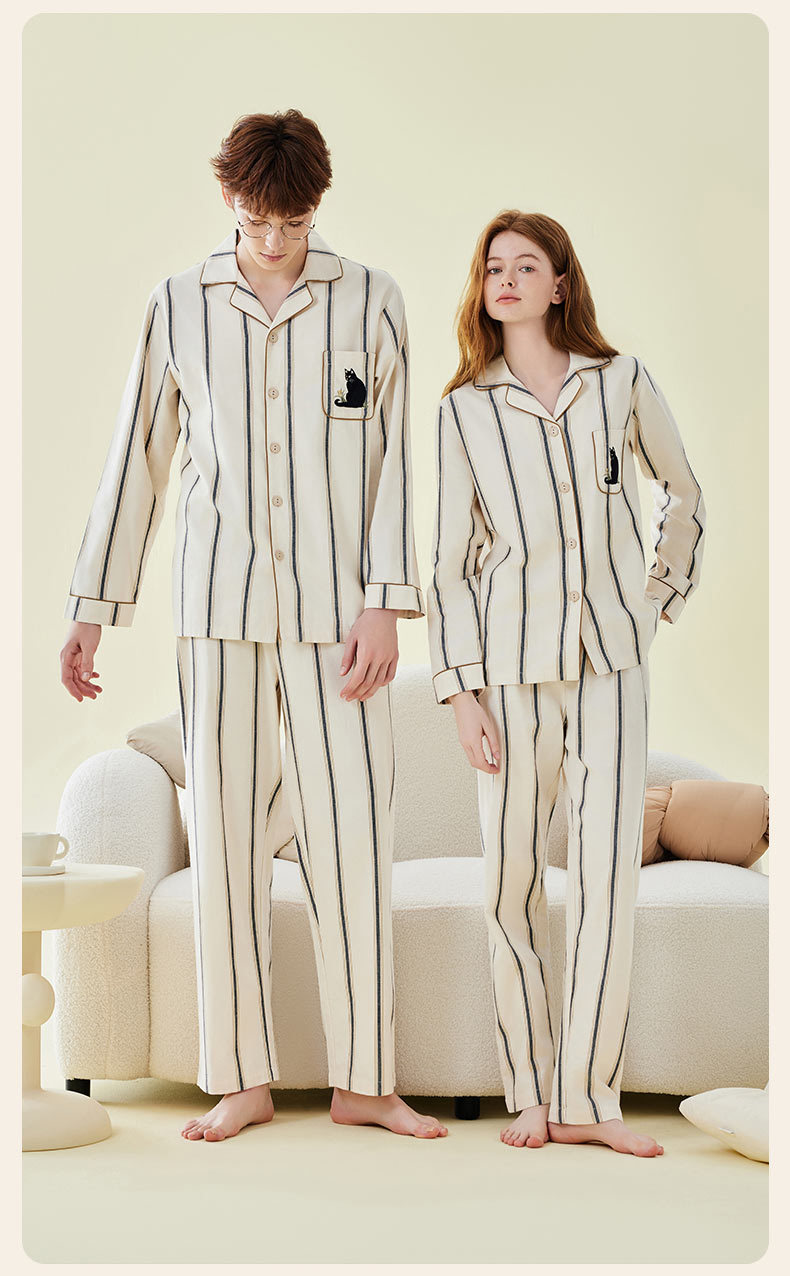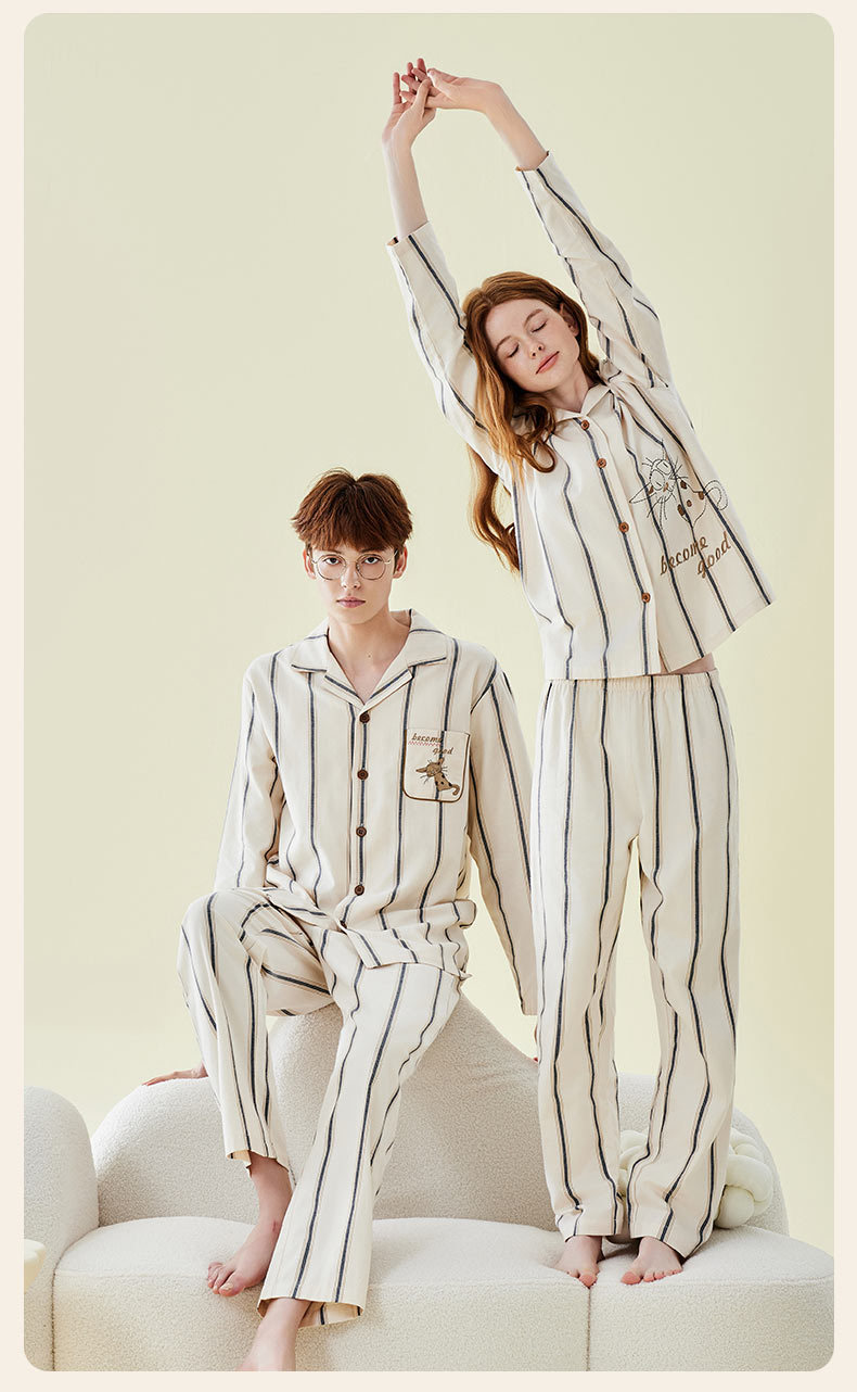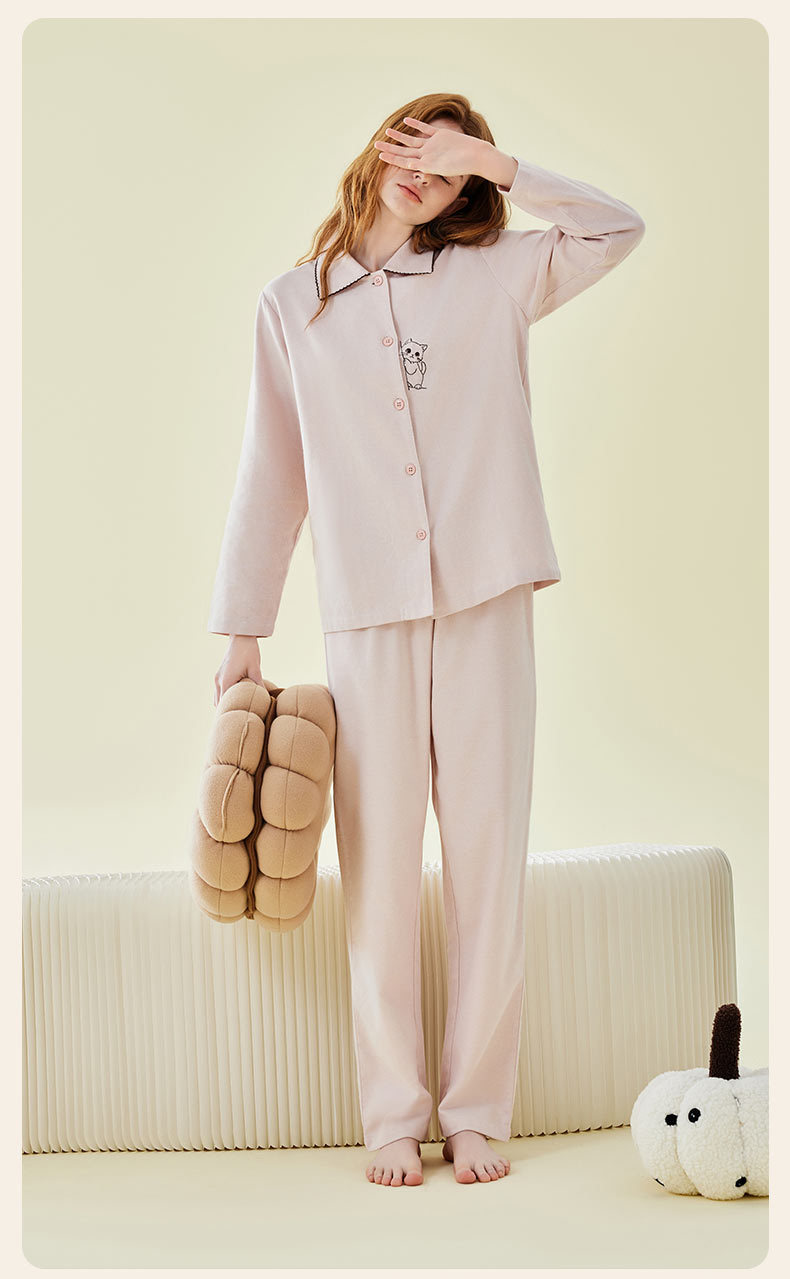 Pajamas bordados de algodón para parejas, pijamas de algodón de invierno y otoño, ropa de vestir para mujeres, se pueden usar fuera.