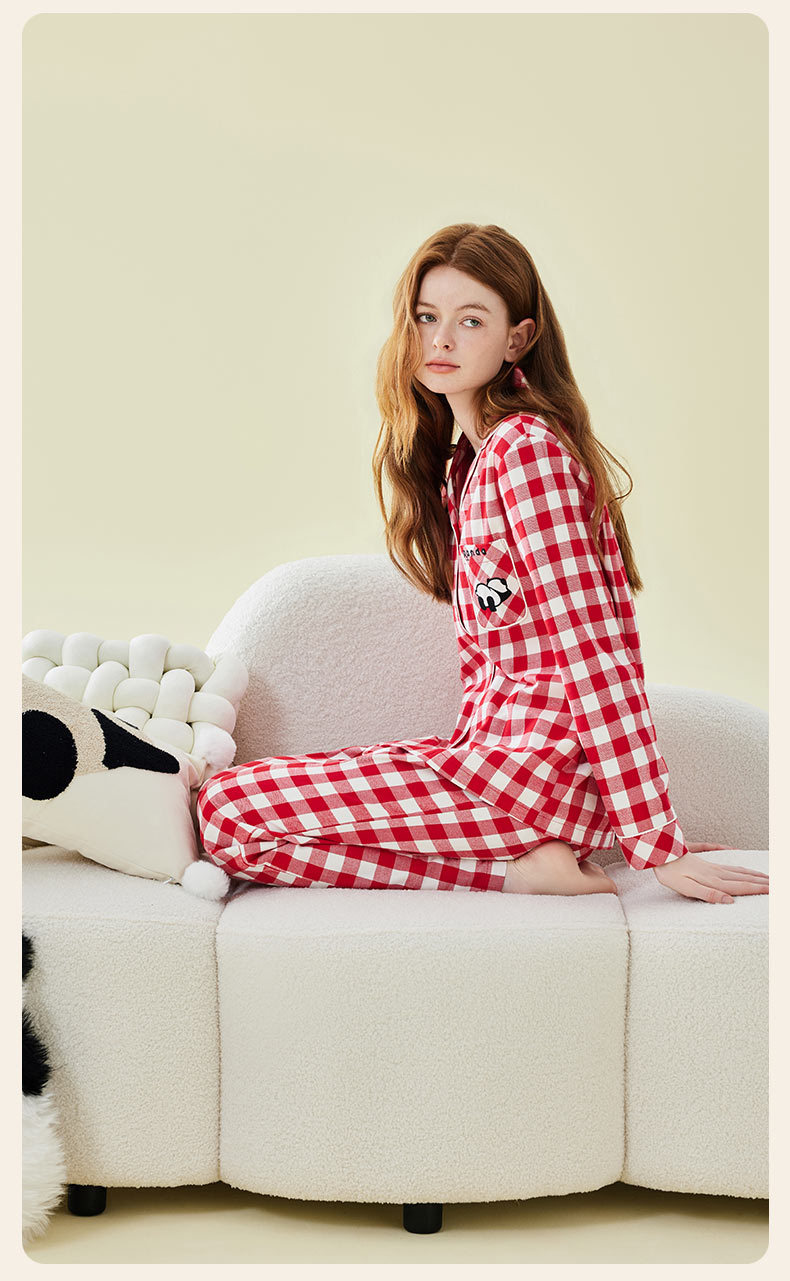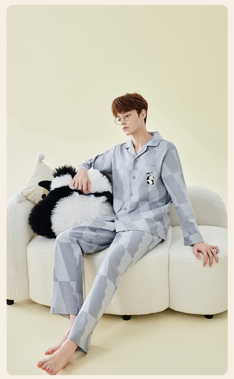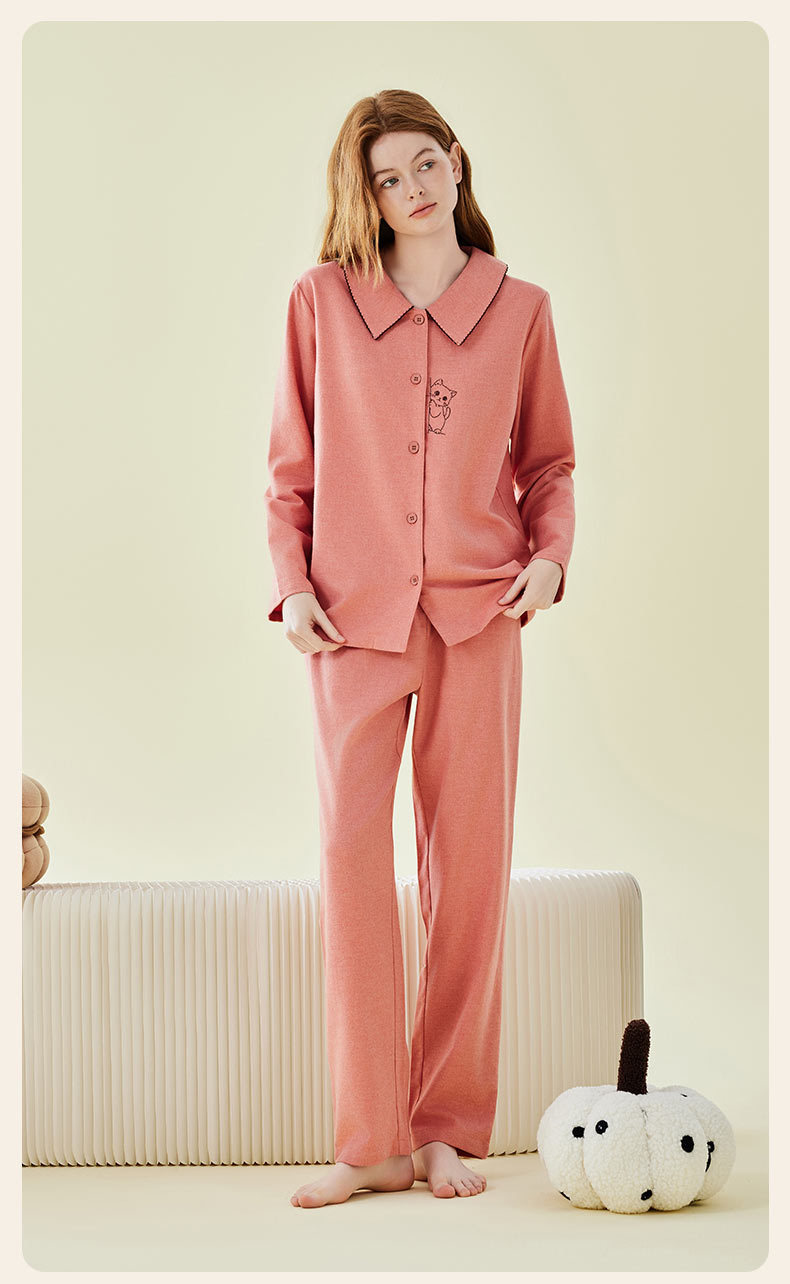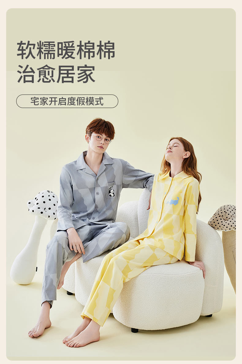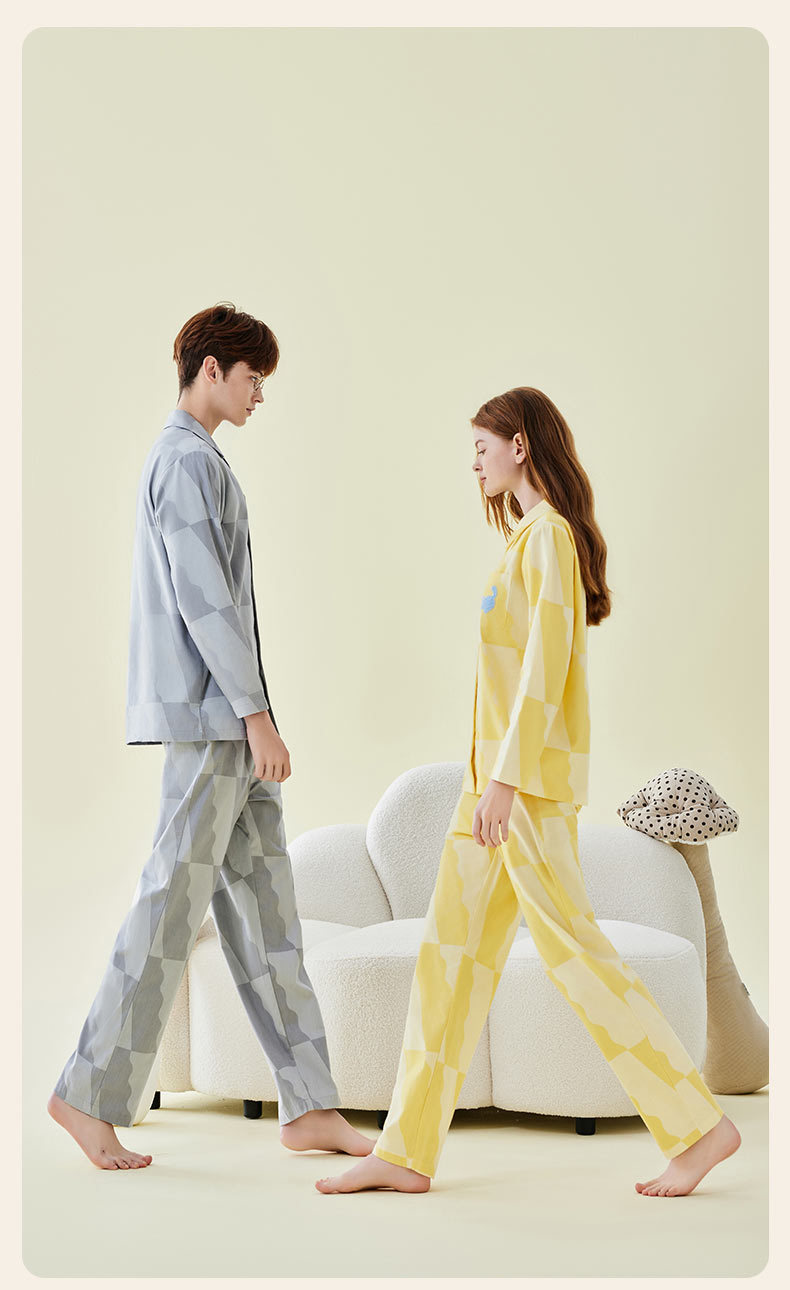Pajamas bordados de algodón para parejas, pijamas de algodón de invierno y otoño, ropa de vestir para mujeres, se pueden usar fuera.