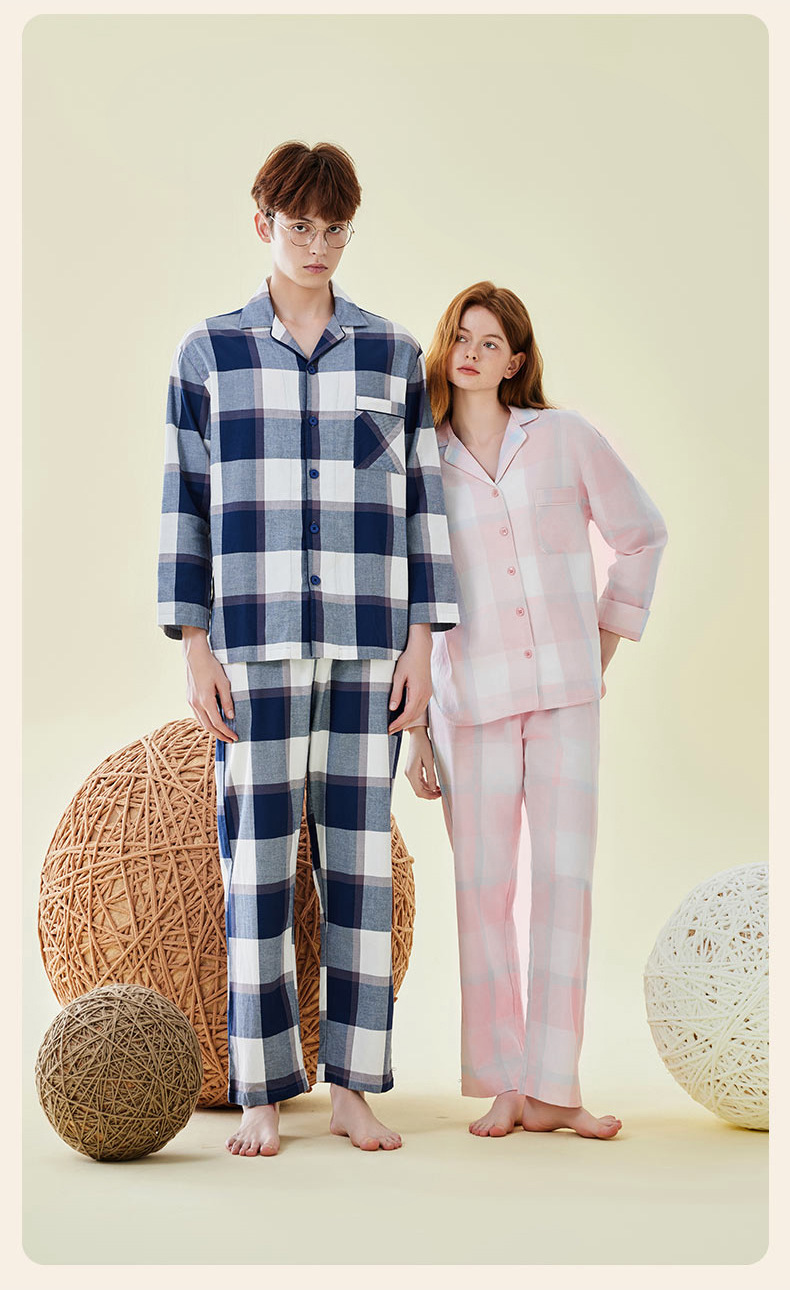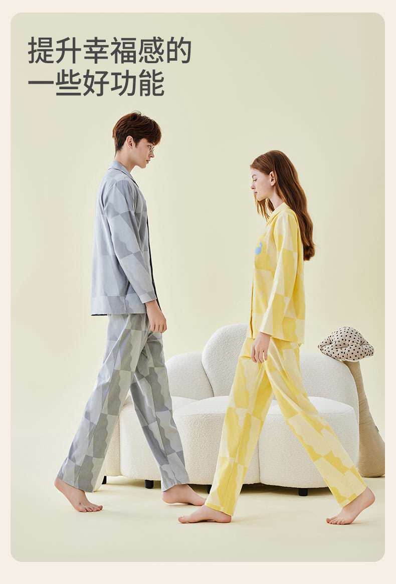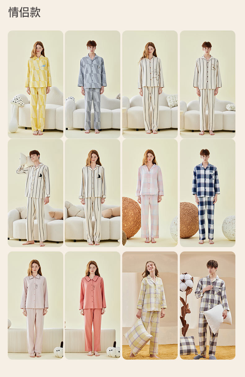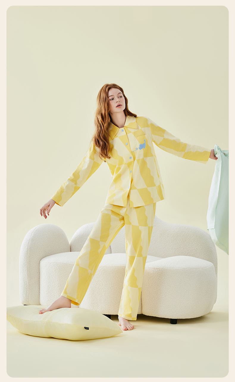Pajamas bordados de algodón para parejas, pijamas de algodón de invierno y otoño, ropa de vestir para mujeres, se pueden usar fuera.