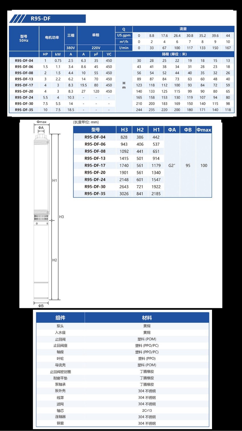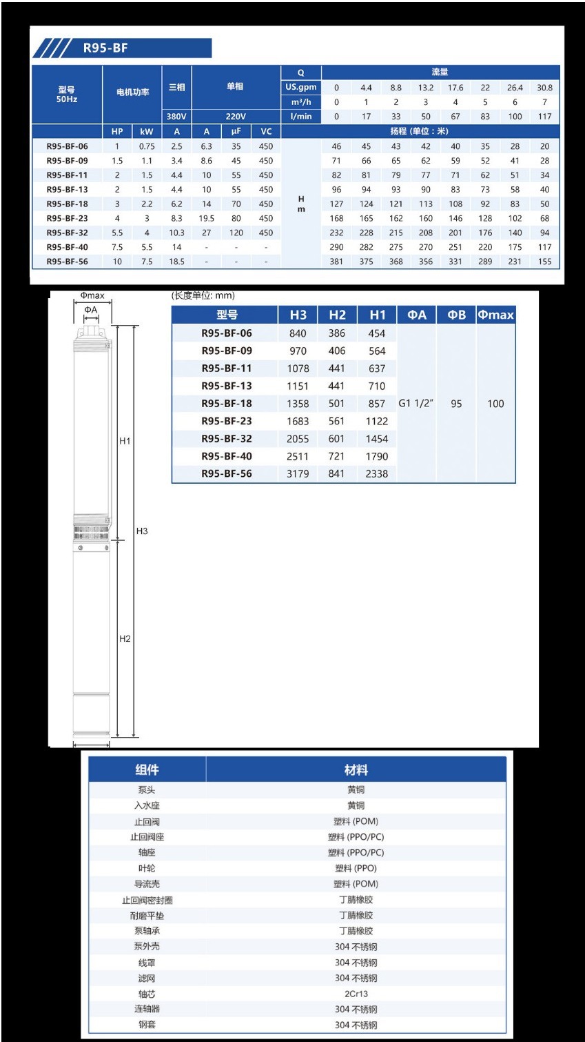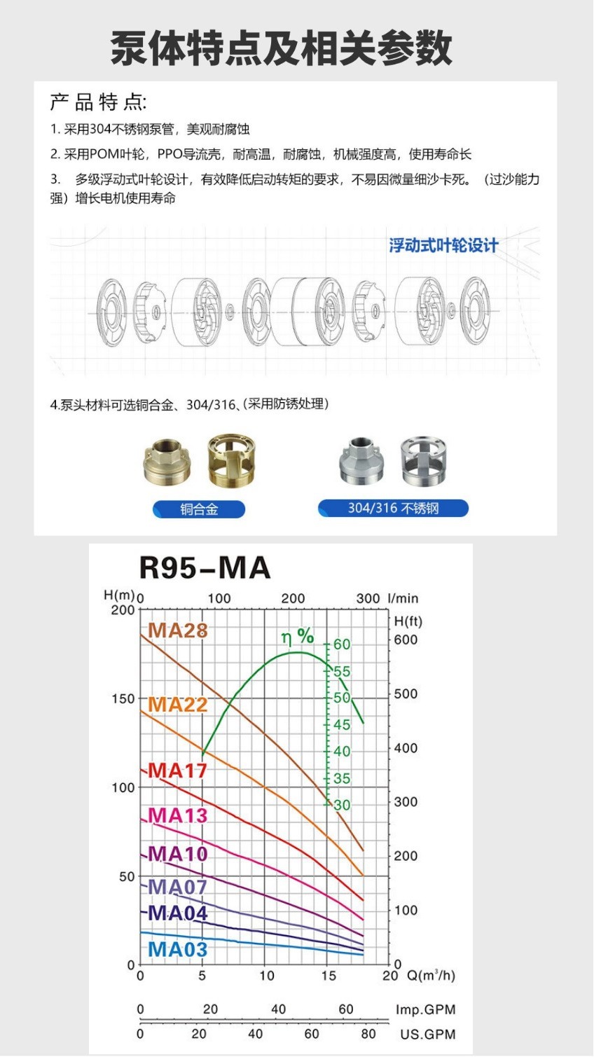 Bomba de bombeo MasterCard R95 220V bomba de agua de pozo doméstica bomba de pozo profundo bomba sumergible de acero inoxidable 380V tres fases
