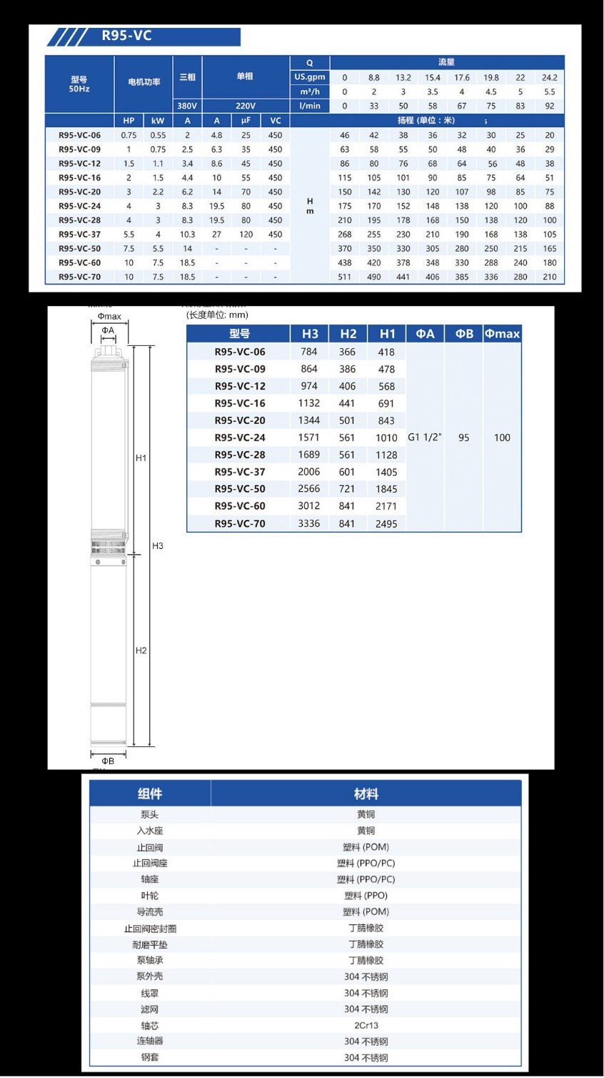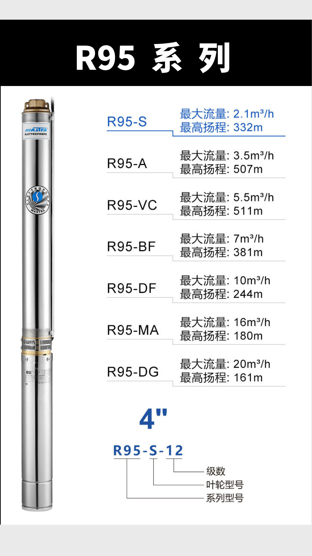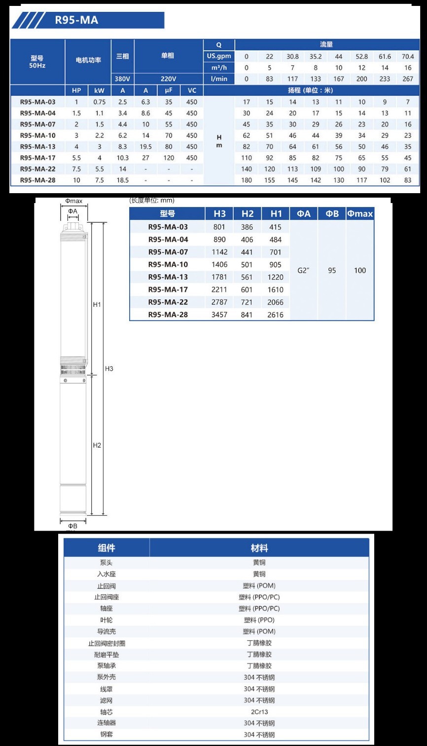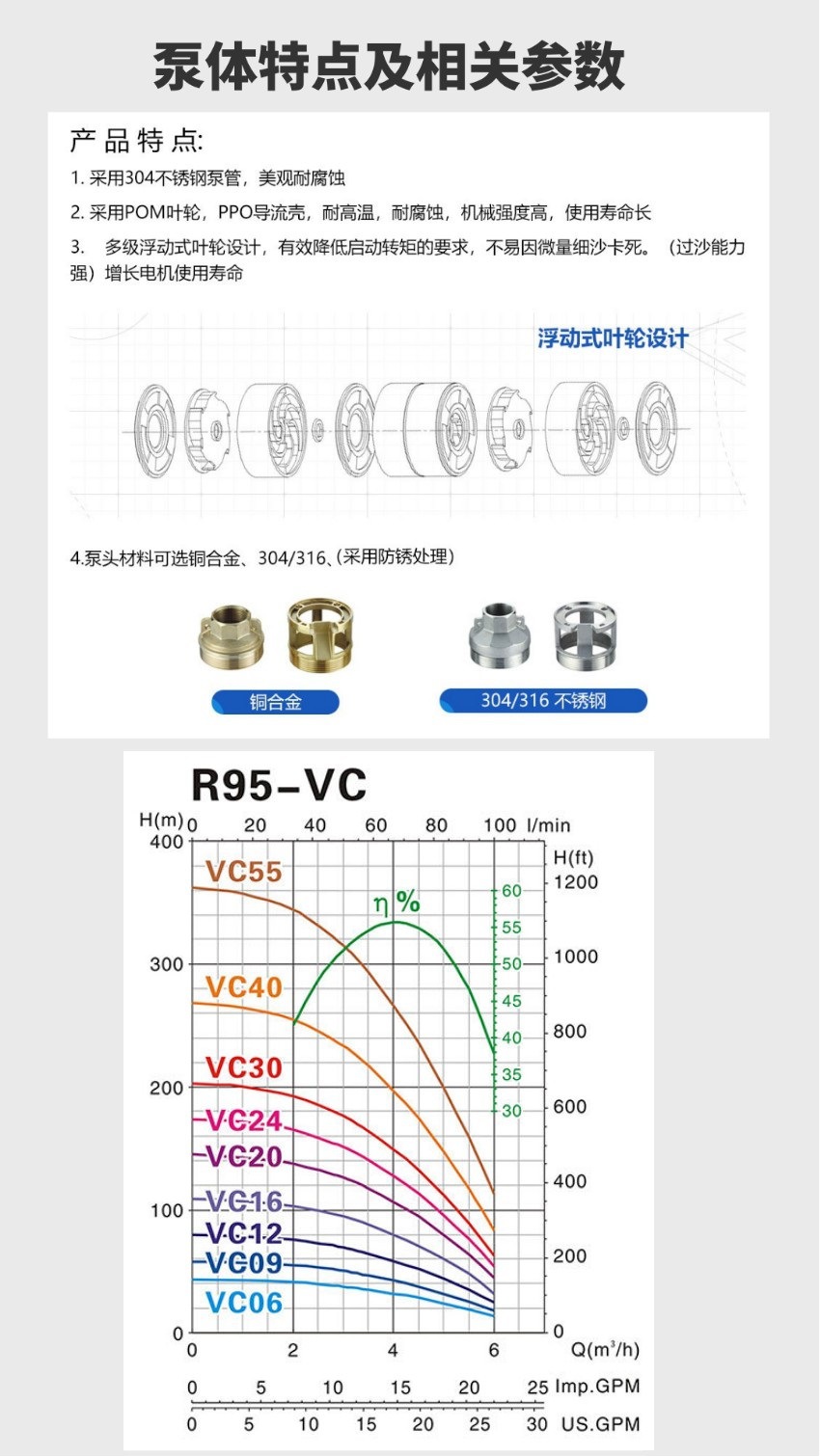 Bomba de bombeo MasterCard R95 220V bomba de agua de pozo doméstica bomba de pozo profundo bomba sumergible de acero inoxidable 380V tres fases