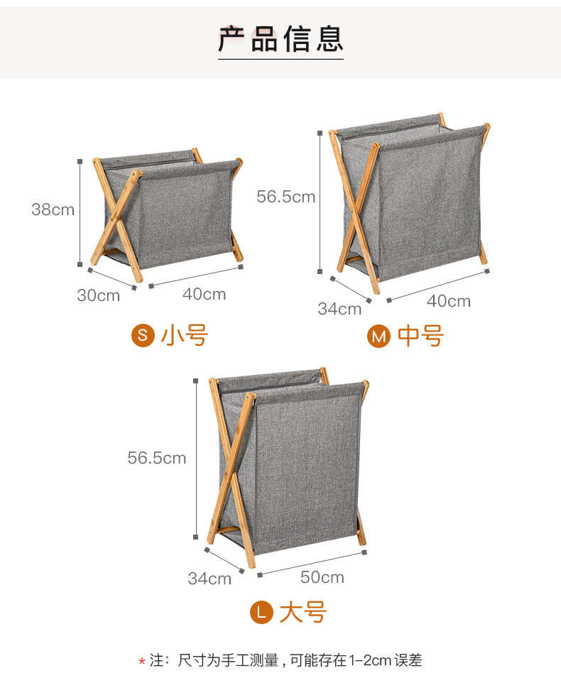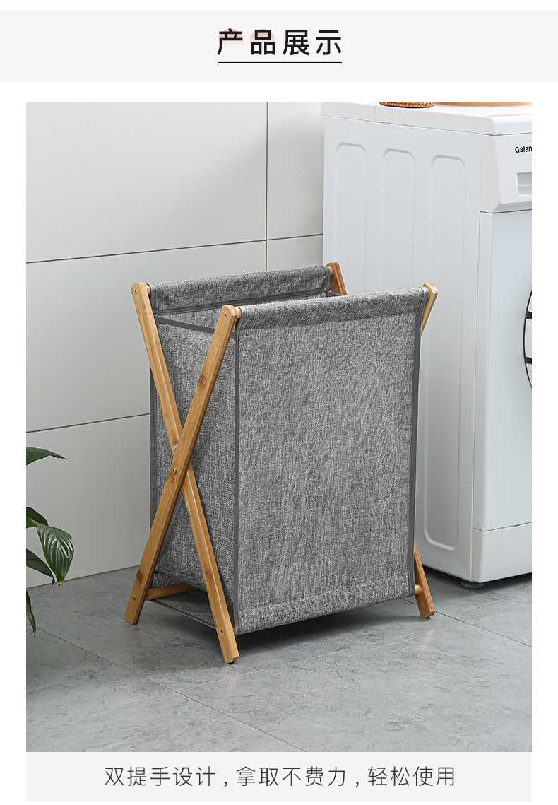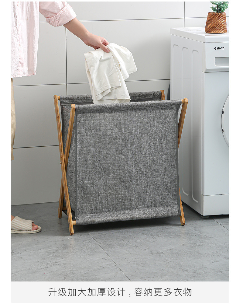 Cesta de lavandería de madera maciza de bambú plegable que ahorra espacio ropa de juguete cesta de almacenamiento de artículos diversos baño tela de lino de algodón grande
