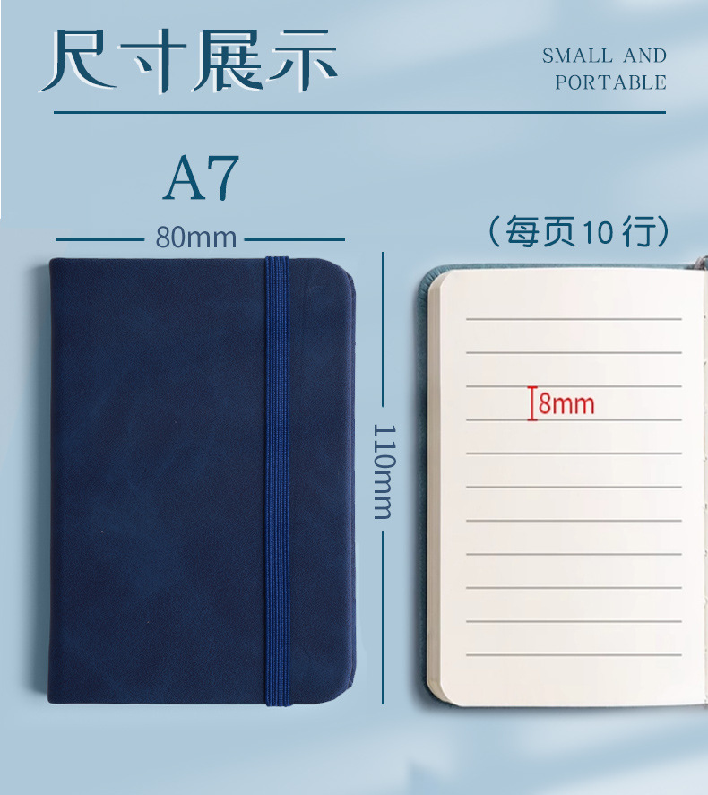 Portátil de bolsillo portátil pequeño Portátil de bolsillo de cuero a6 Portátil portátil portátil A7 Cuaderno compacto A7 Mini inglés