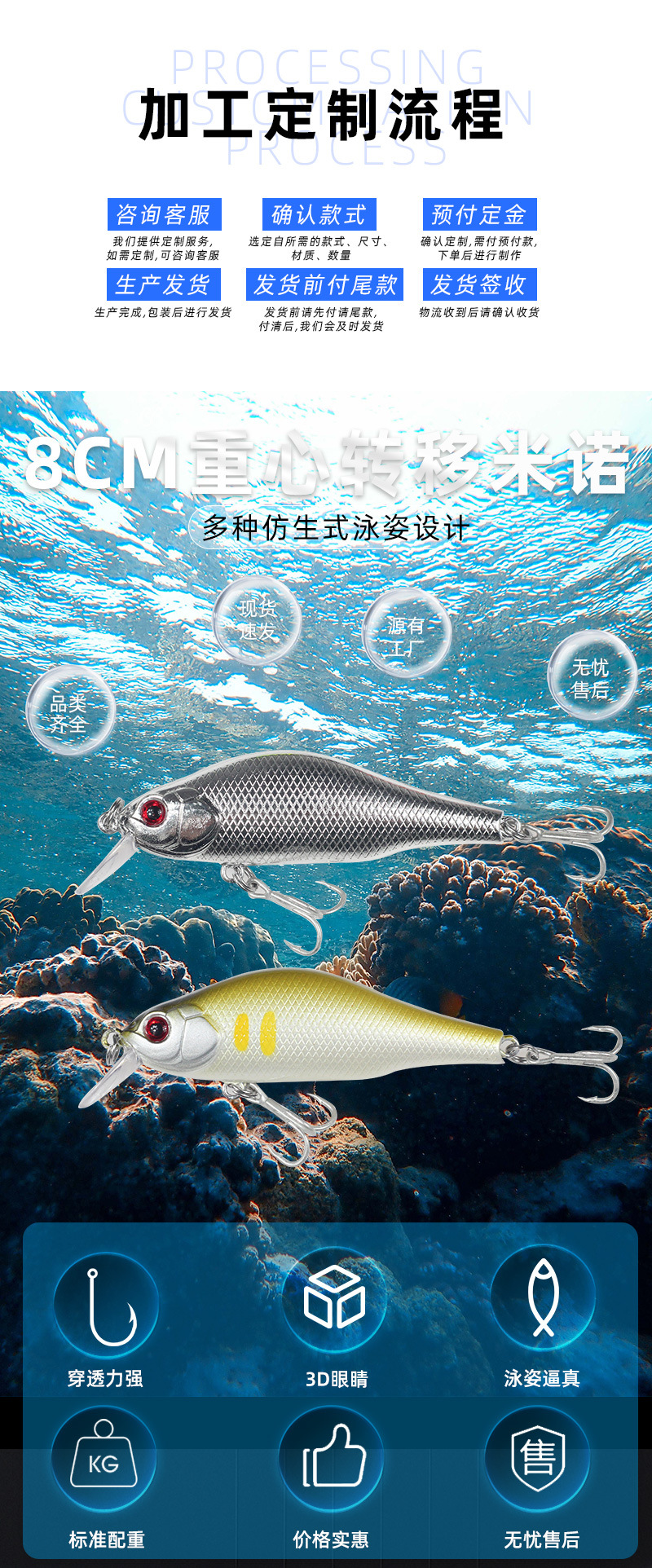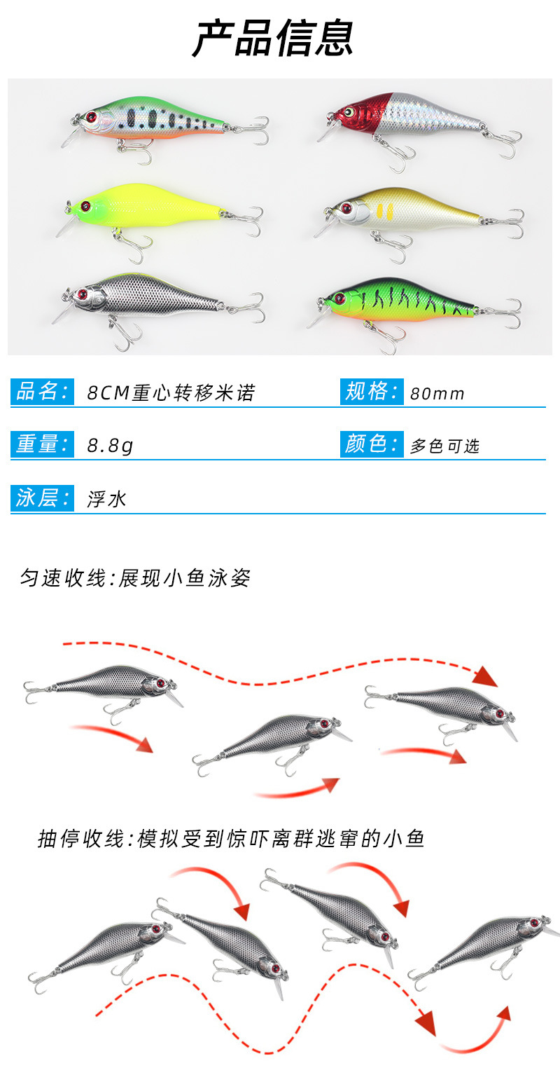 8.8g8cm Centro de Transferencia de gravedad Mino tiro largo agua flotante Luya cebo al aire libre pesca al aire libre al por mayor Luya falso cebo duro cebo