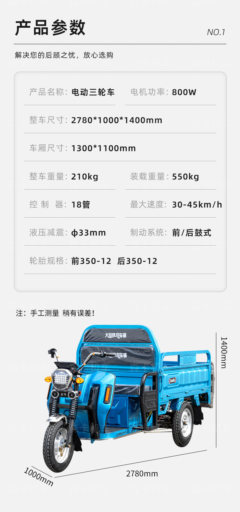 Fábrica de suministro de triciclo eléctrico de carga de carga pesada doméstica granja camión de batería tres saltones exportación eec