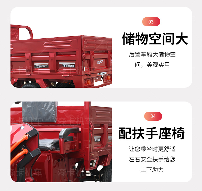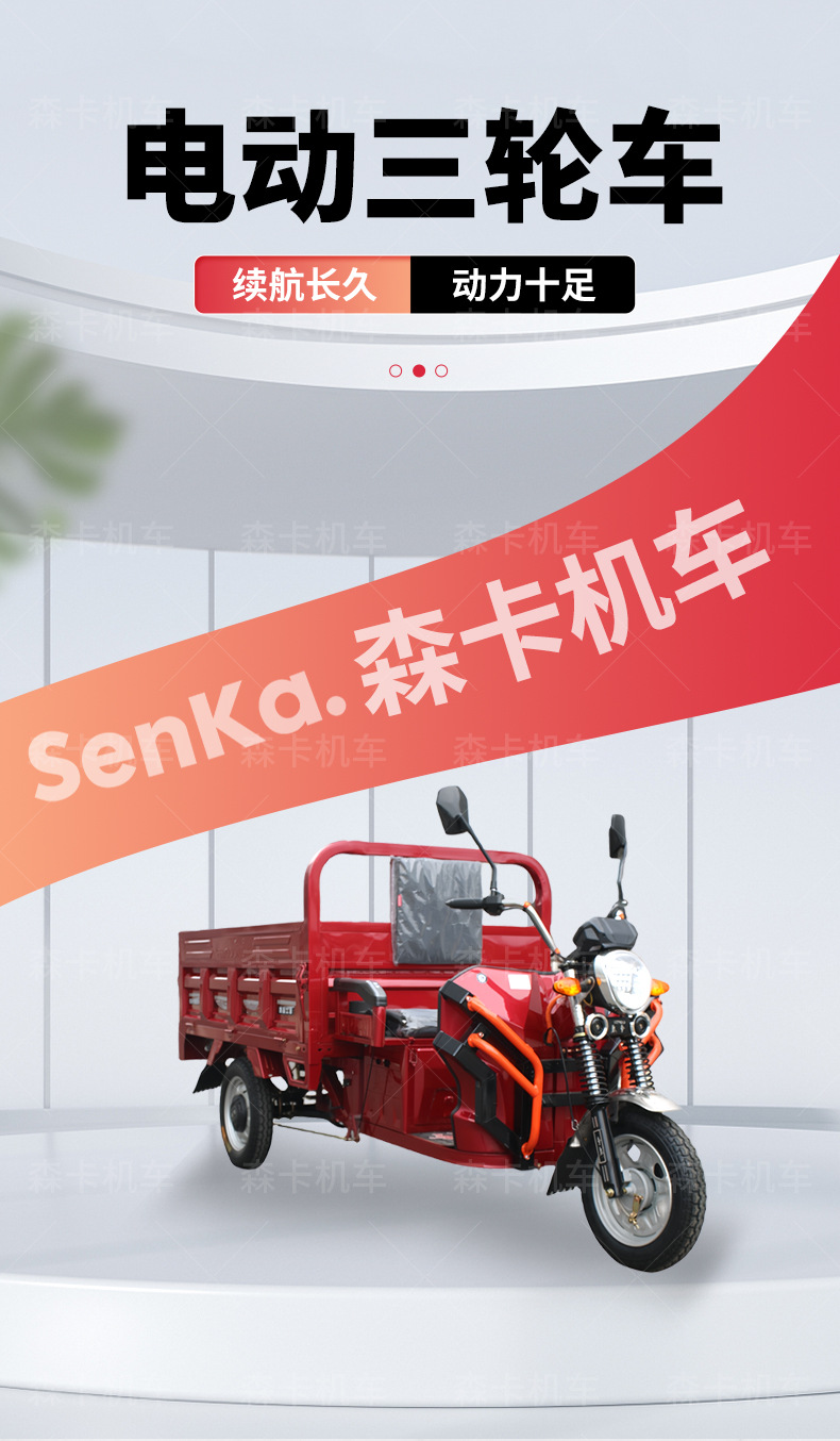 Triciclo eléctrico para adultos, apto para transportar mercancías, uso doméstico y montañismo, con batería reforzada y gran capacidad de carga.
