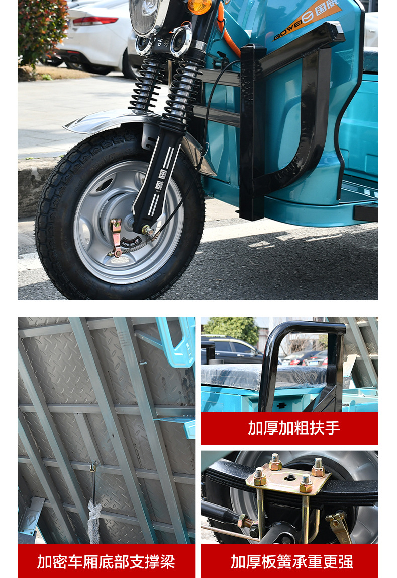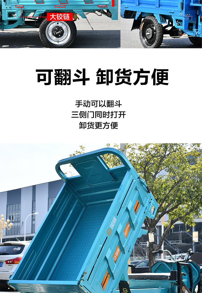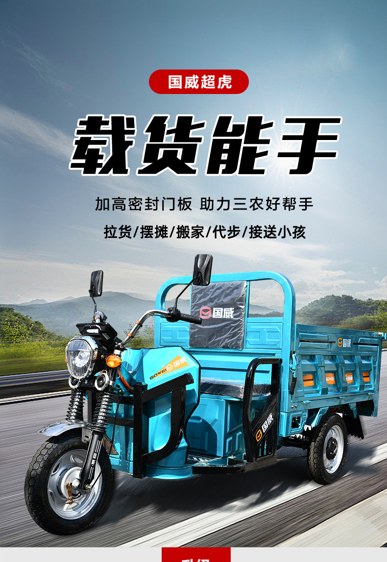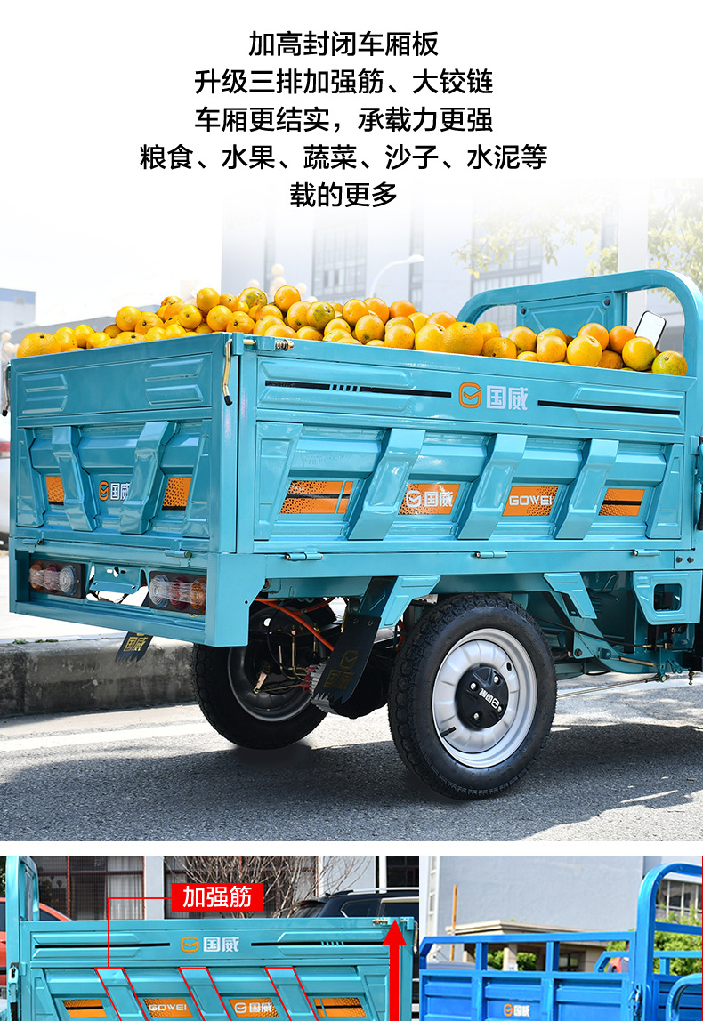 Guowei vehículo eléctrico triciclo eléctrico de entrega de carga doméstica cabina agrícola volcado tripulado vehículo de batería de alta potencia