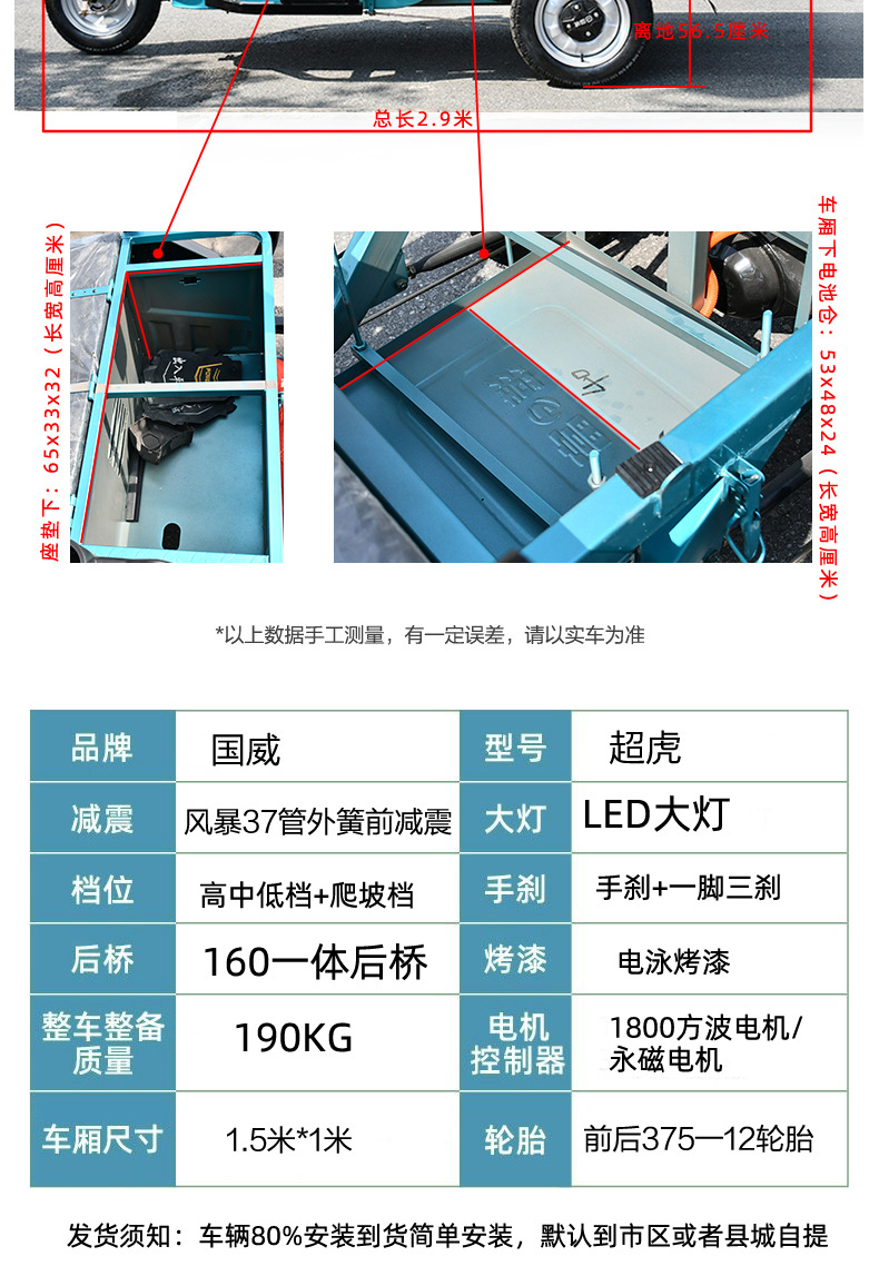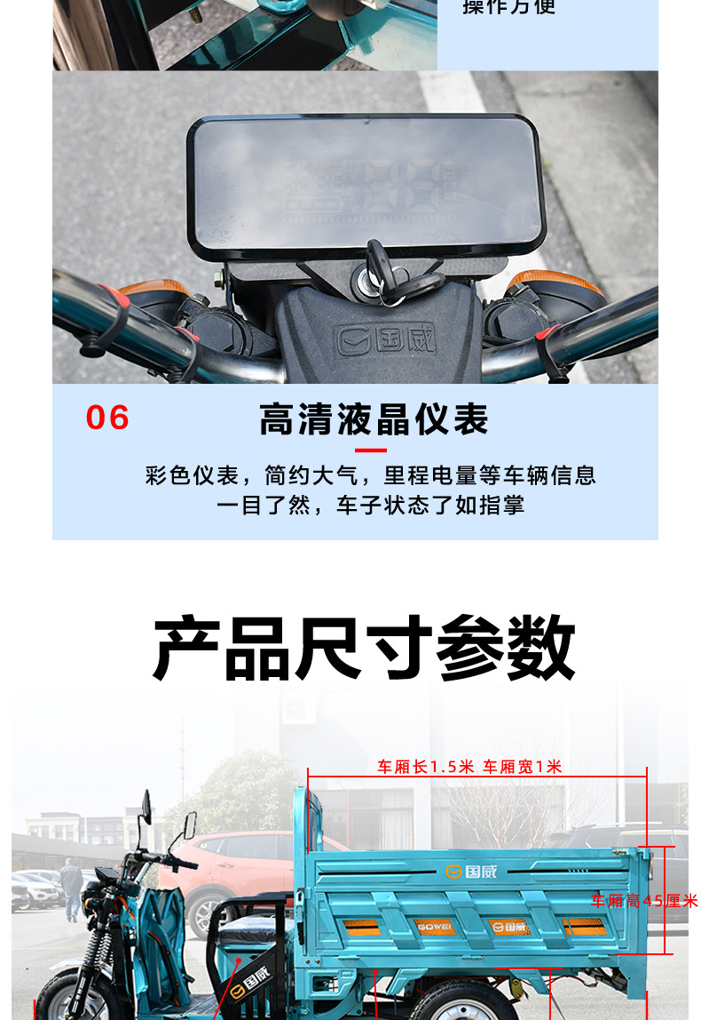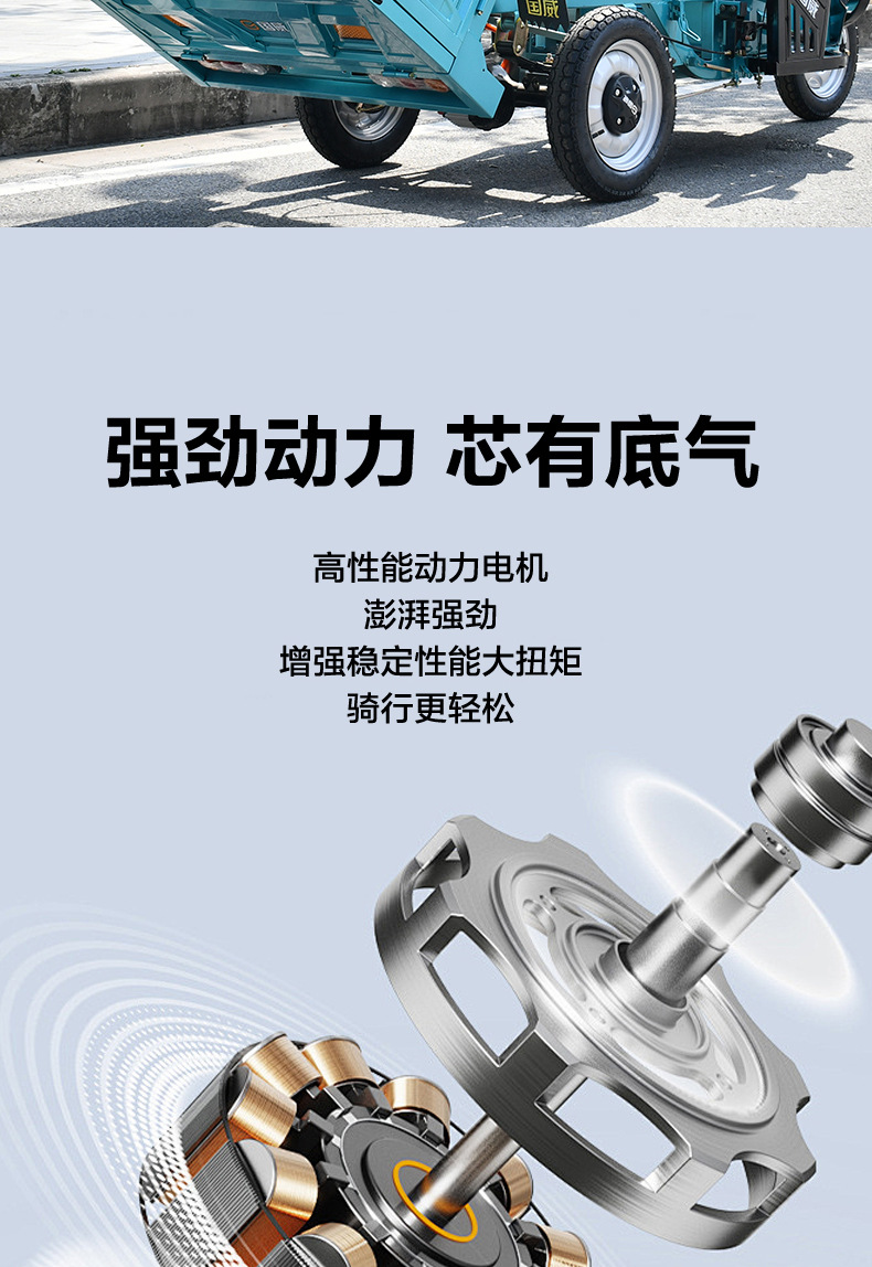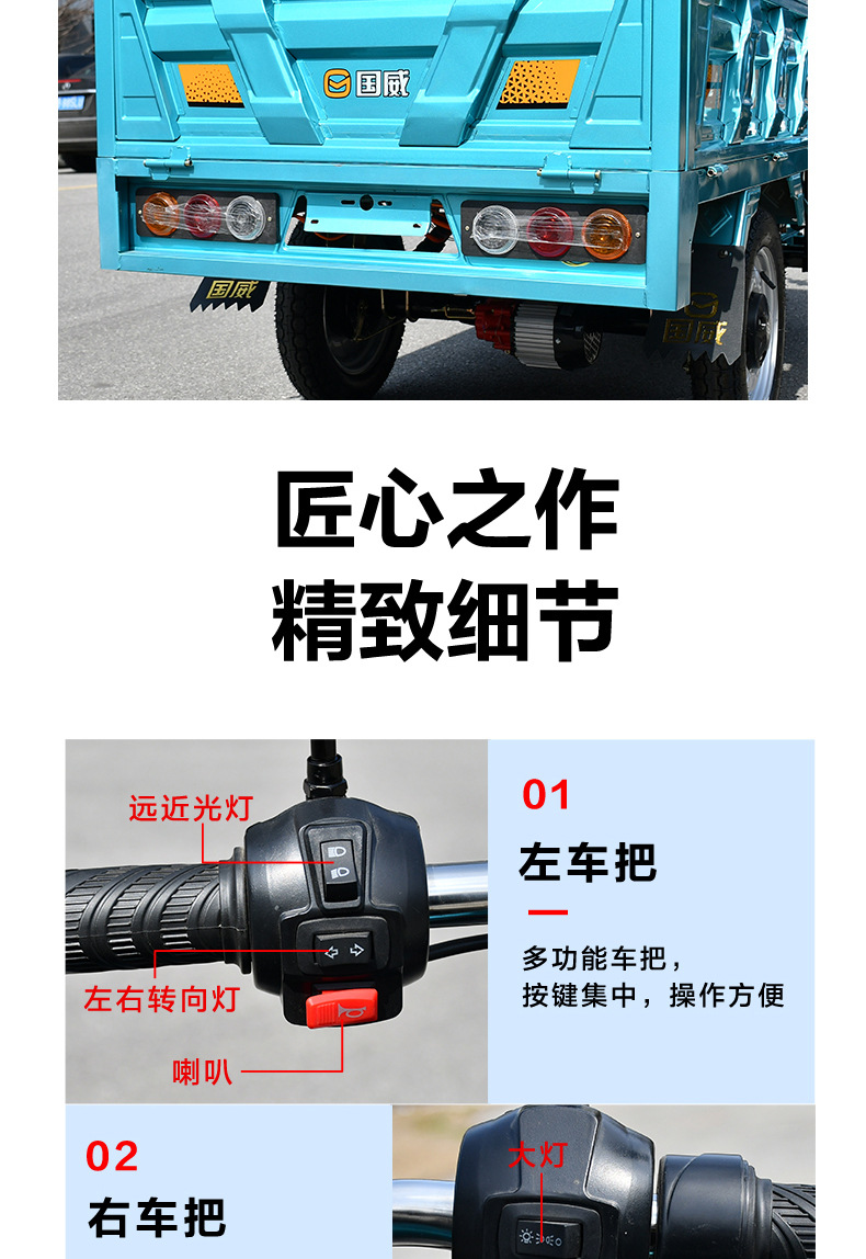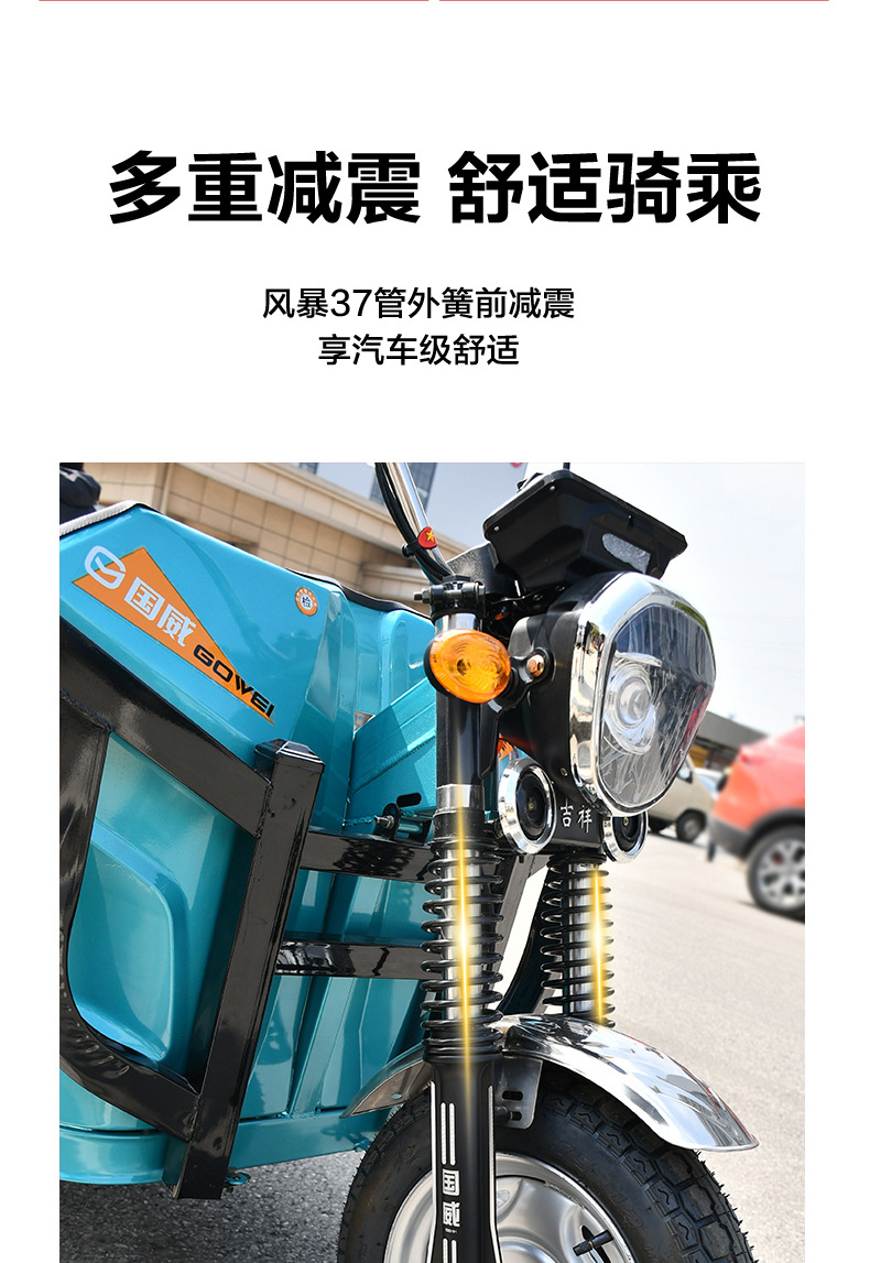 Guowei vehículo eléctrico triciclo eléctrico de entrega de carga doméstica cabina agrícola volcado tripulado vehículo de batería de alta potencia