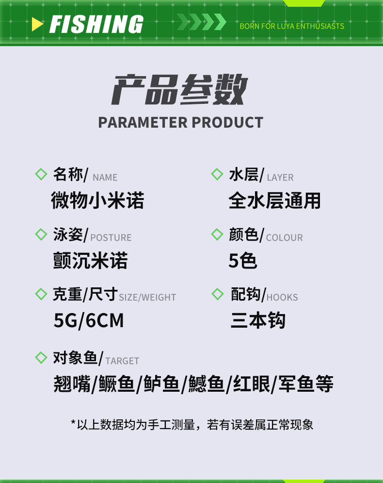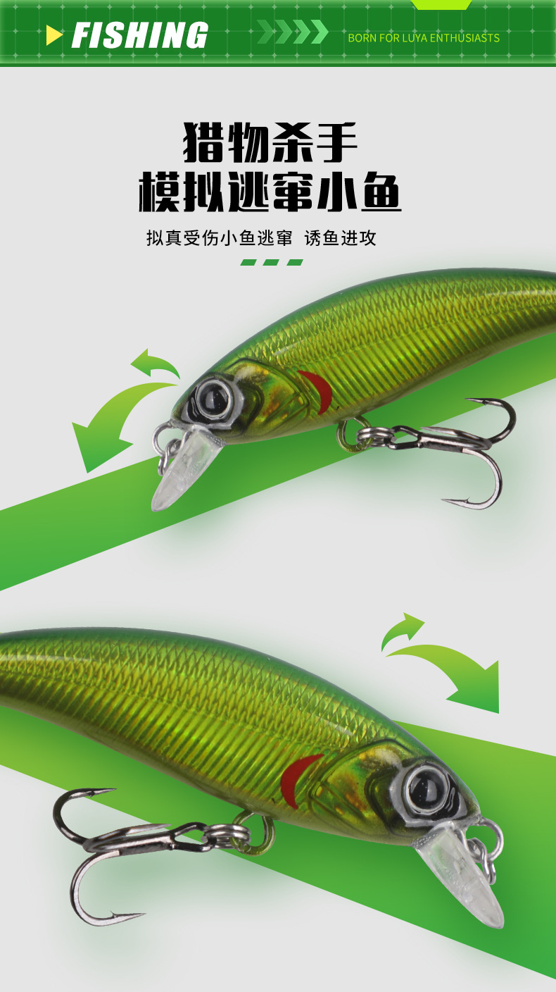 60mm5g nuevo producto micro-objeto pequeño Minuo tres anzuelos temblor hundimiento de la carretera cebo sumergido Minuo Luya cebo falso calamar boca