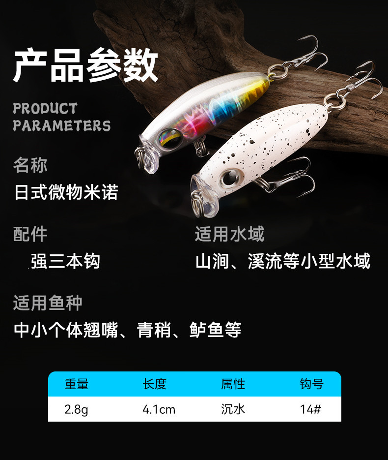 Japón 2.6g micro-materiales minos arroyo luya cebo falso hundimiento lento de pesca de capuchón de caballo de boca de caballo de bajo blanco