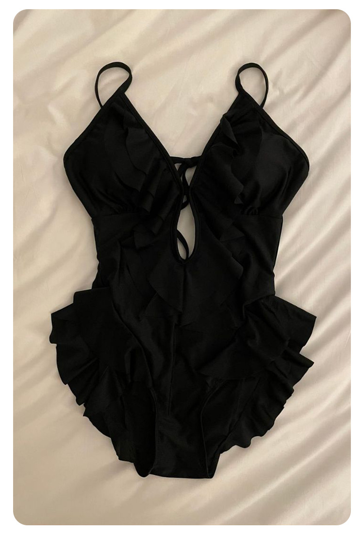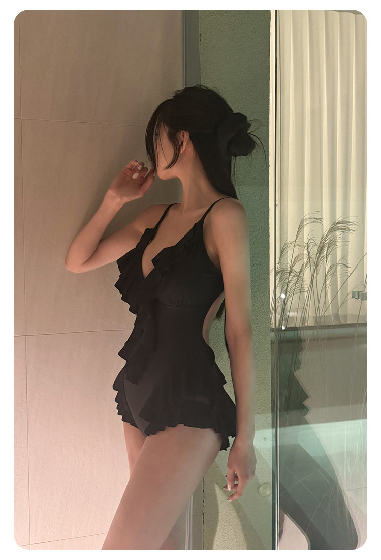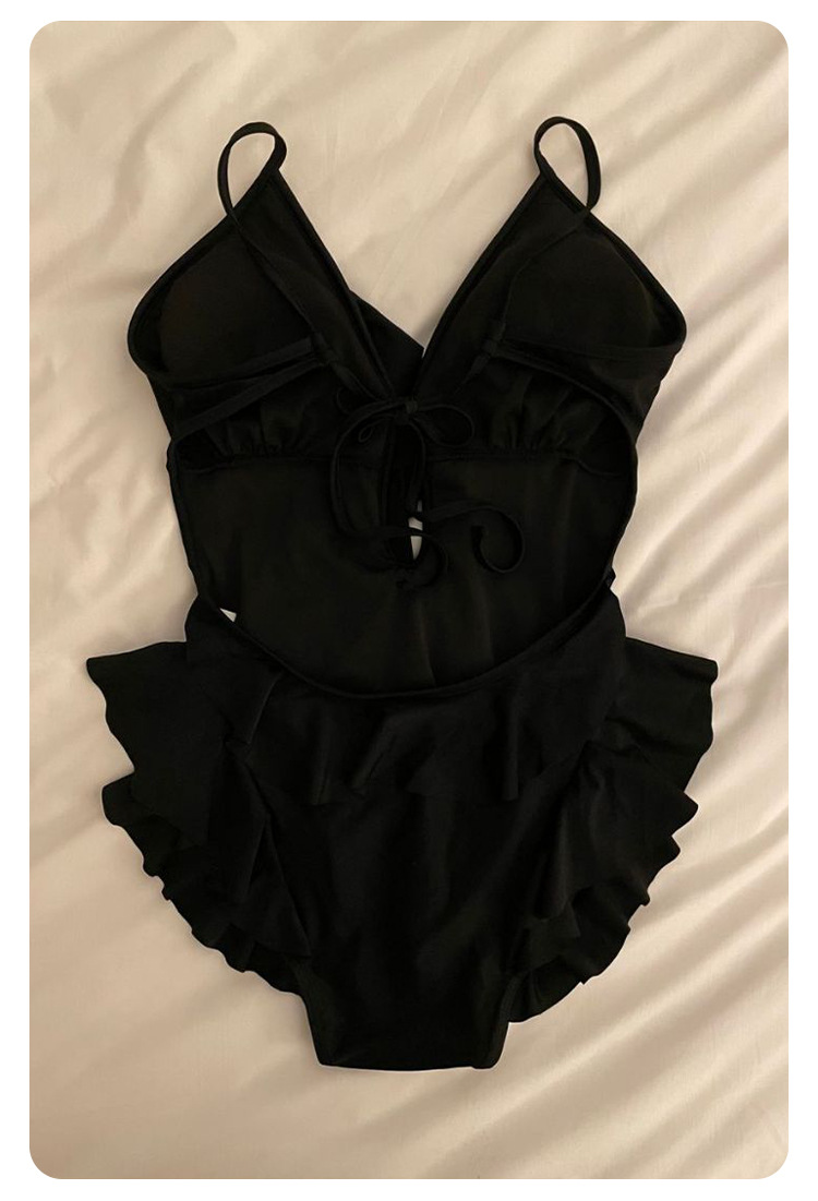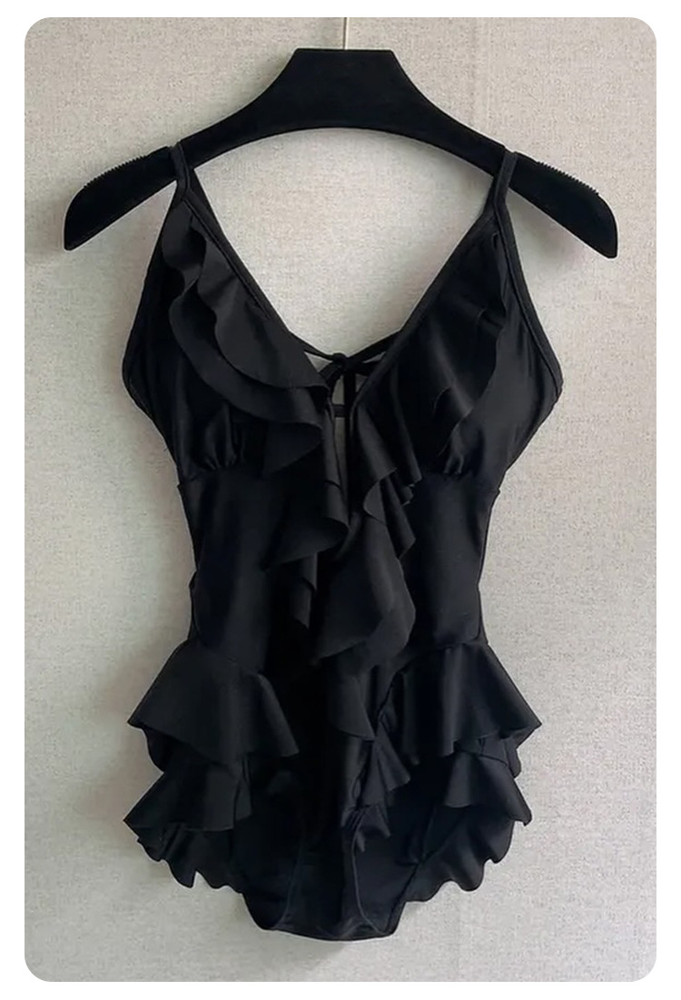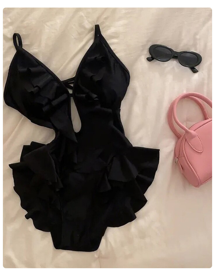 Negro oscuro V borde de loto de alta calidad puro puro puro color puro trajes de baño unidos mujeres pechos pequeños espaldas termales sexy pechos grandes