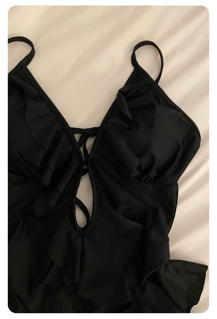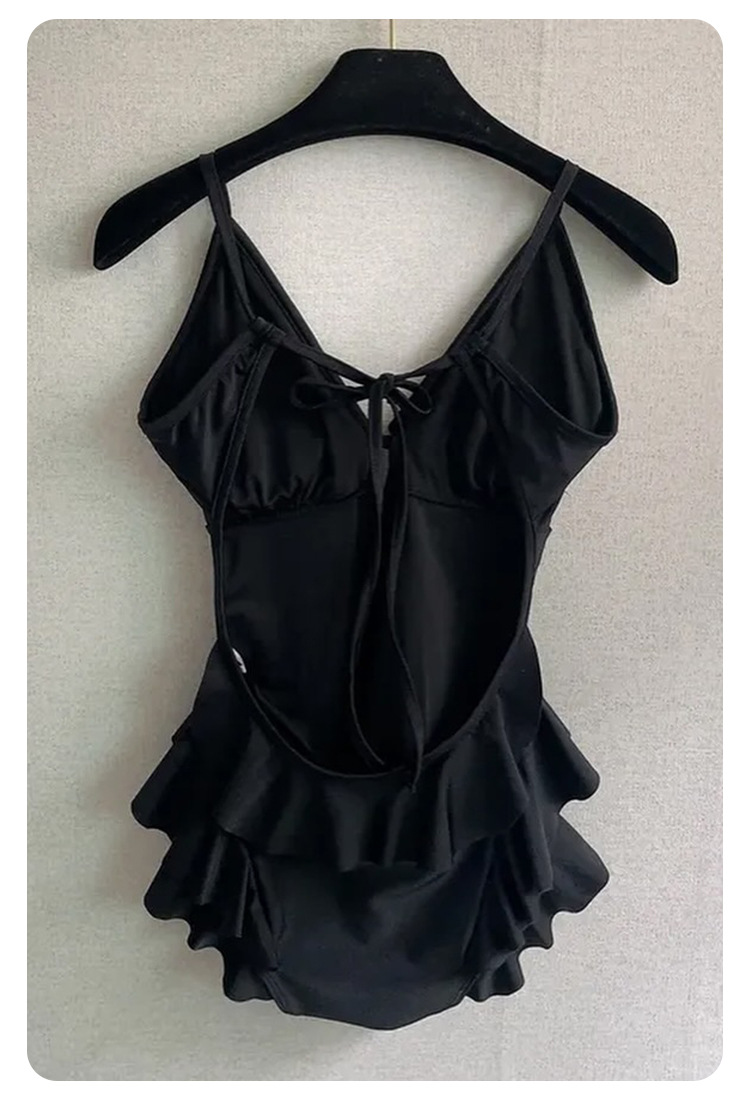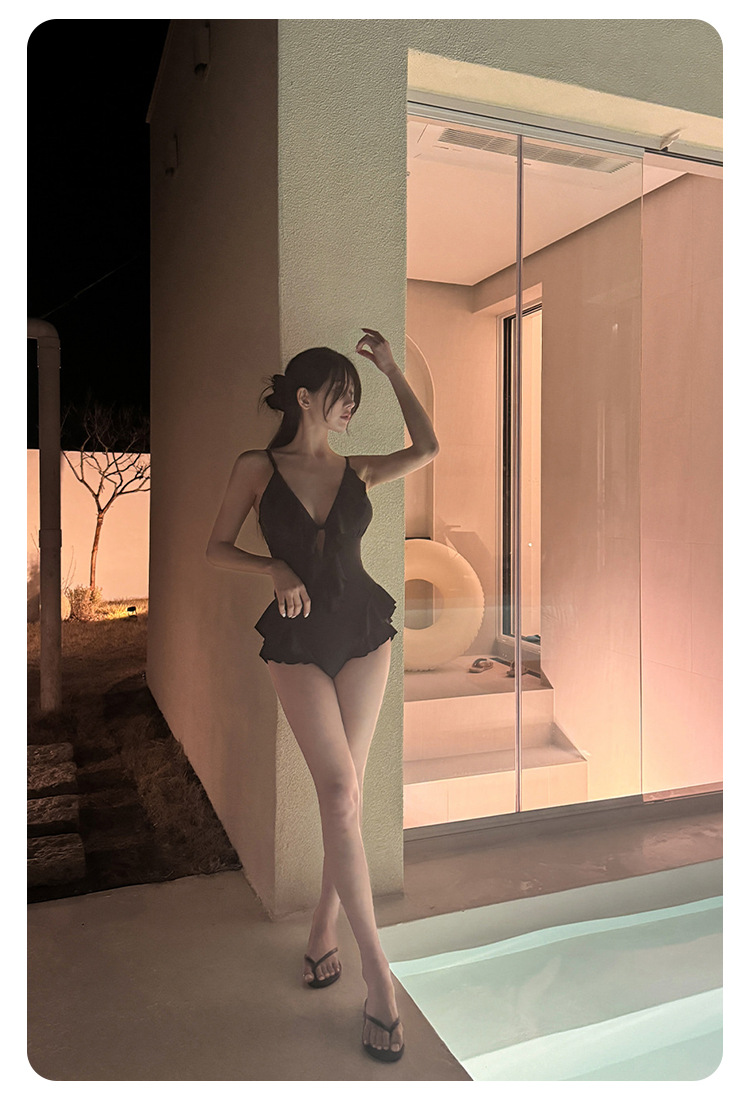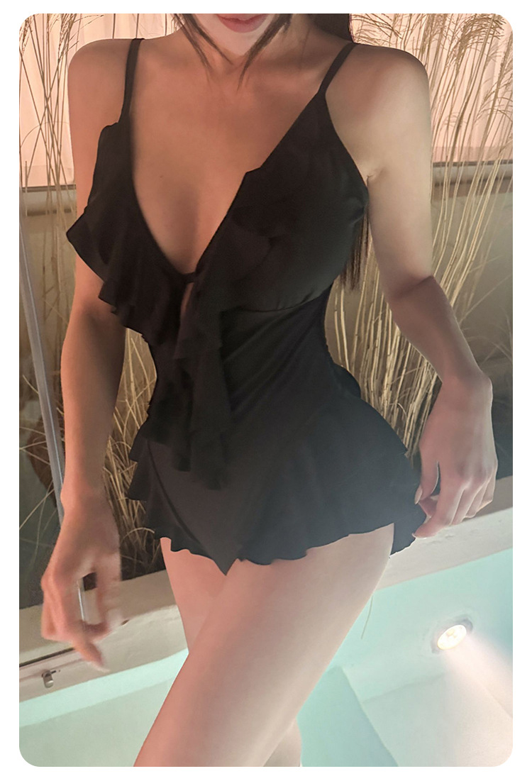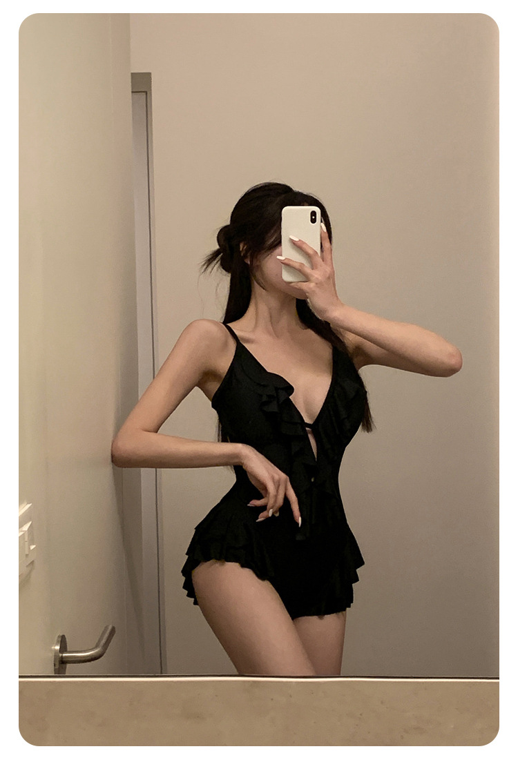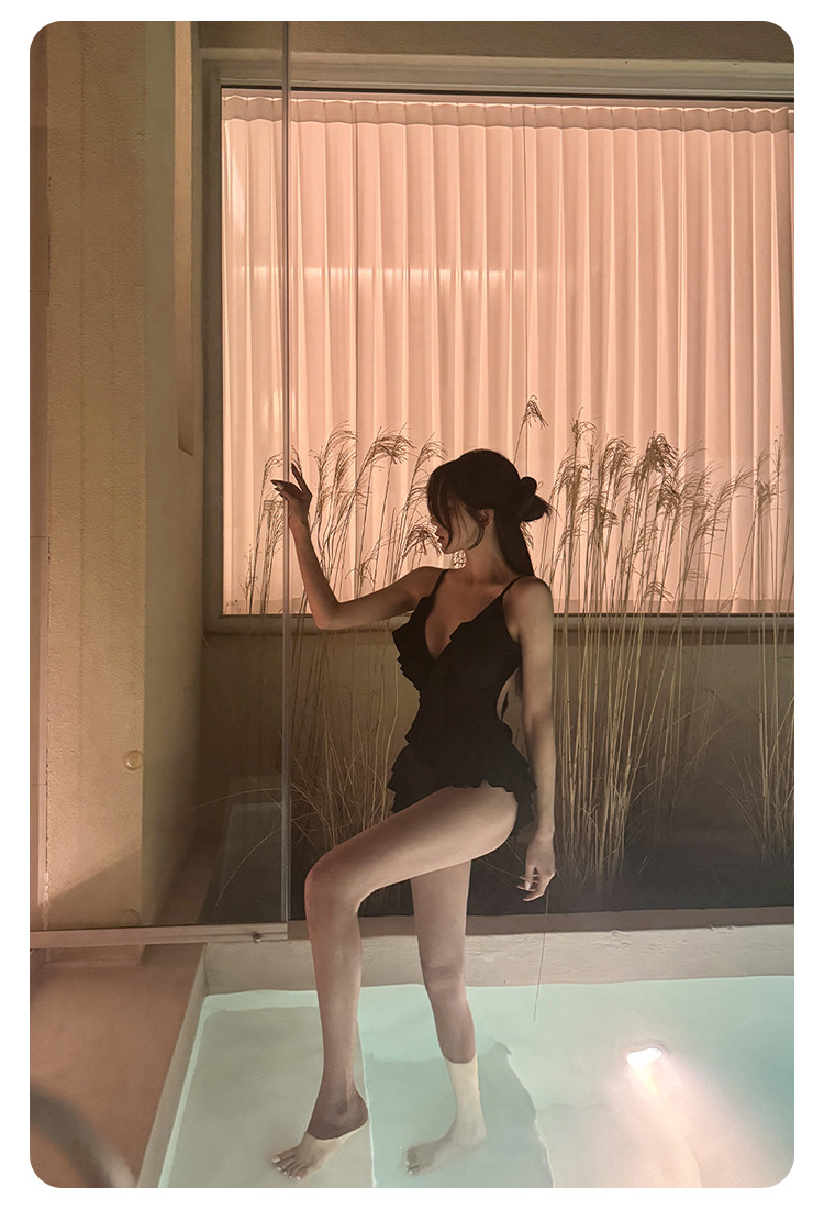 Negro oscuro V borde de loto de alta calidad puro puro puro color puro trajes de baño unidos mujeres pechos pequeños espaldas termales sexy pechos grandes