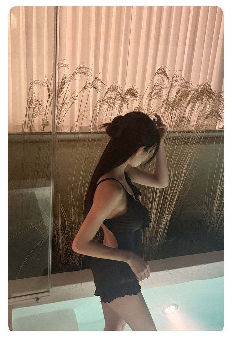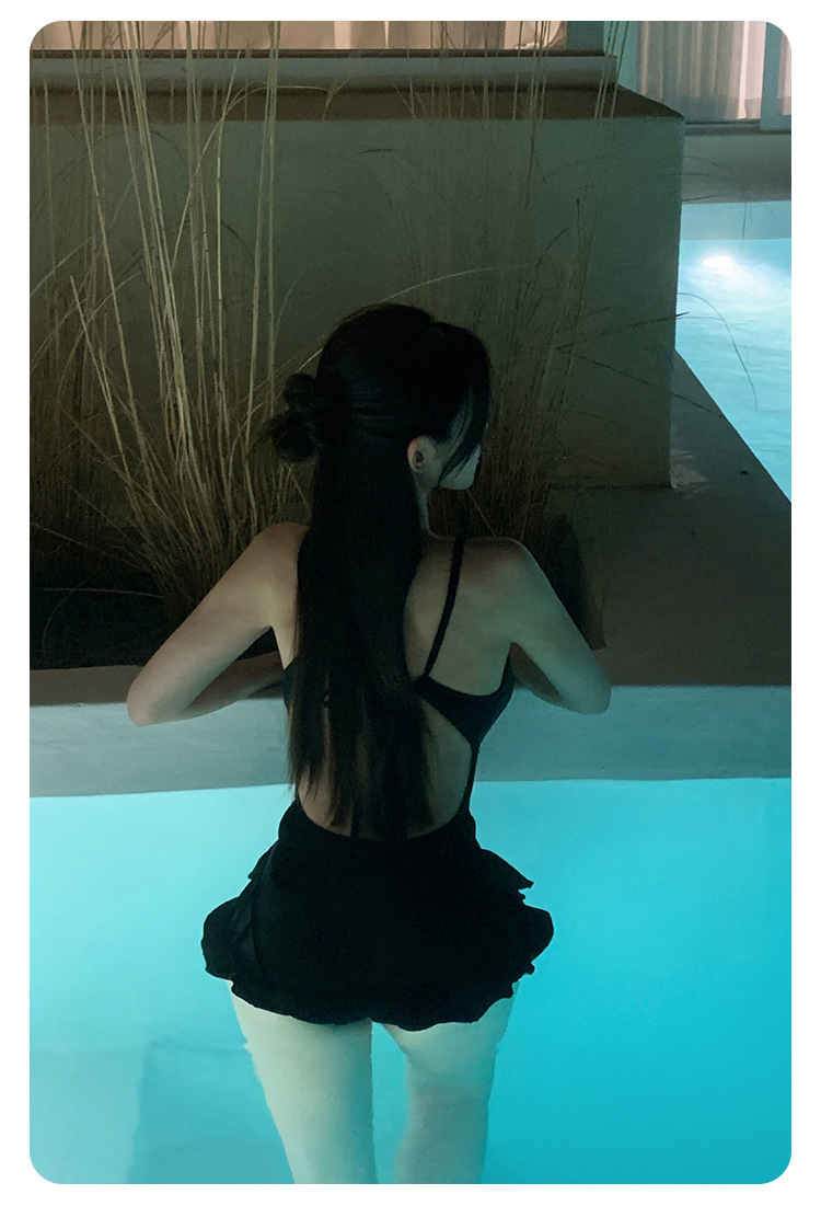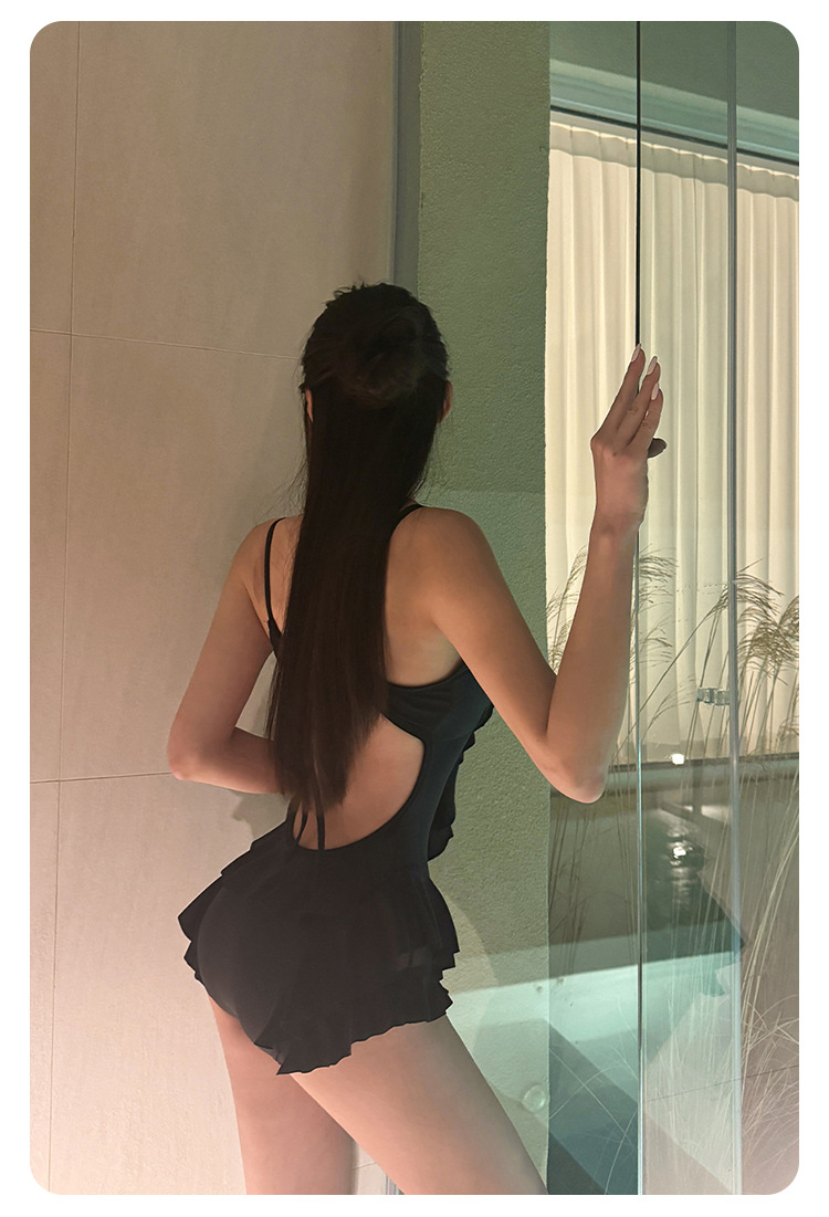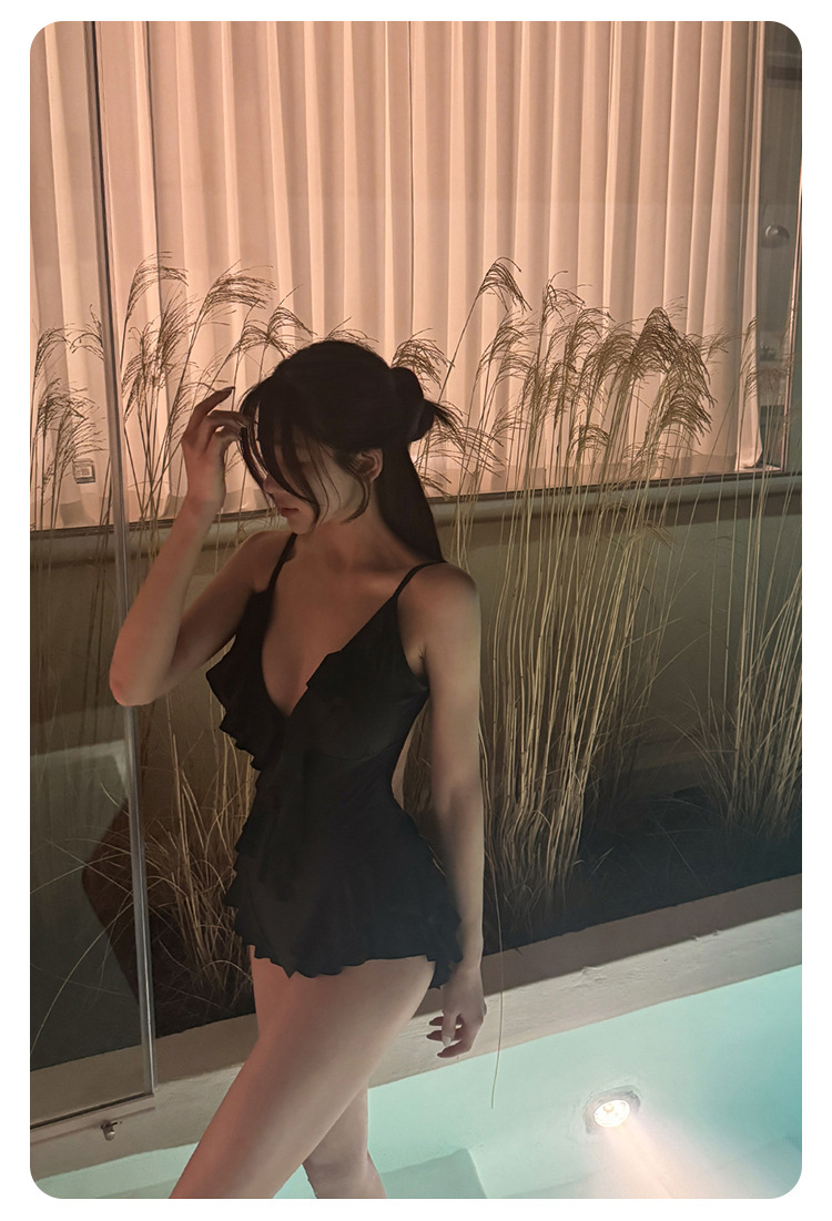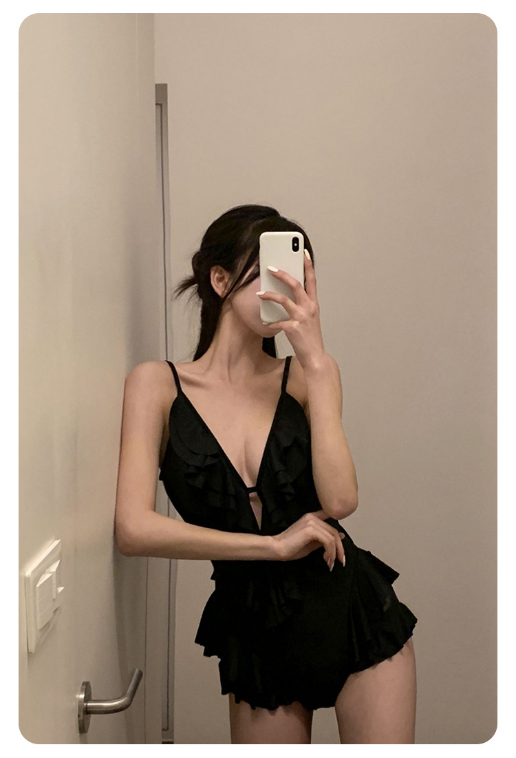 Negro oscuro V borde de loto de alta calidad puro puro puro color puro trajes de baño unidos mujeres pechos pequeños espaldas termales sexy pechos grandes