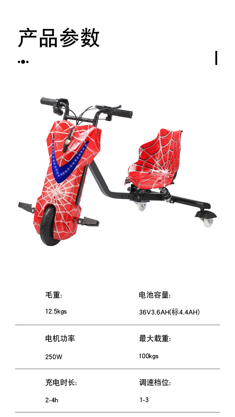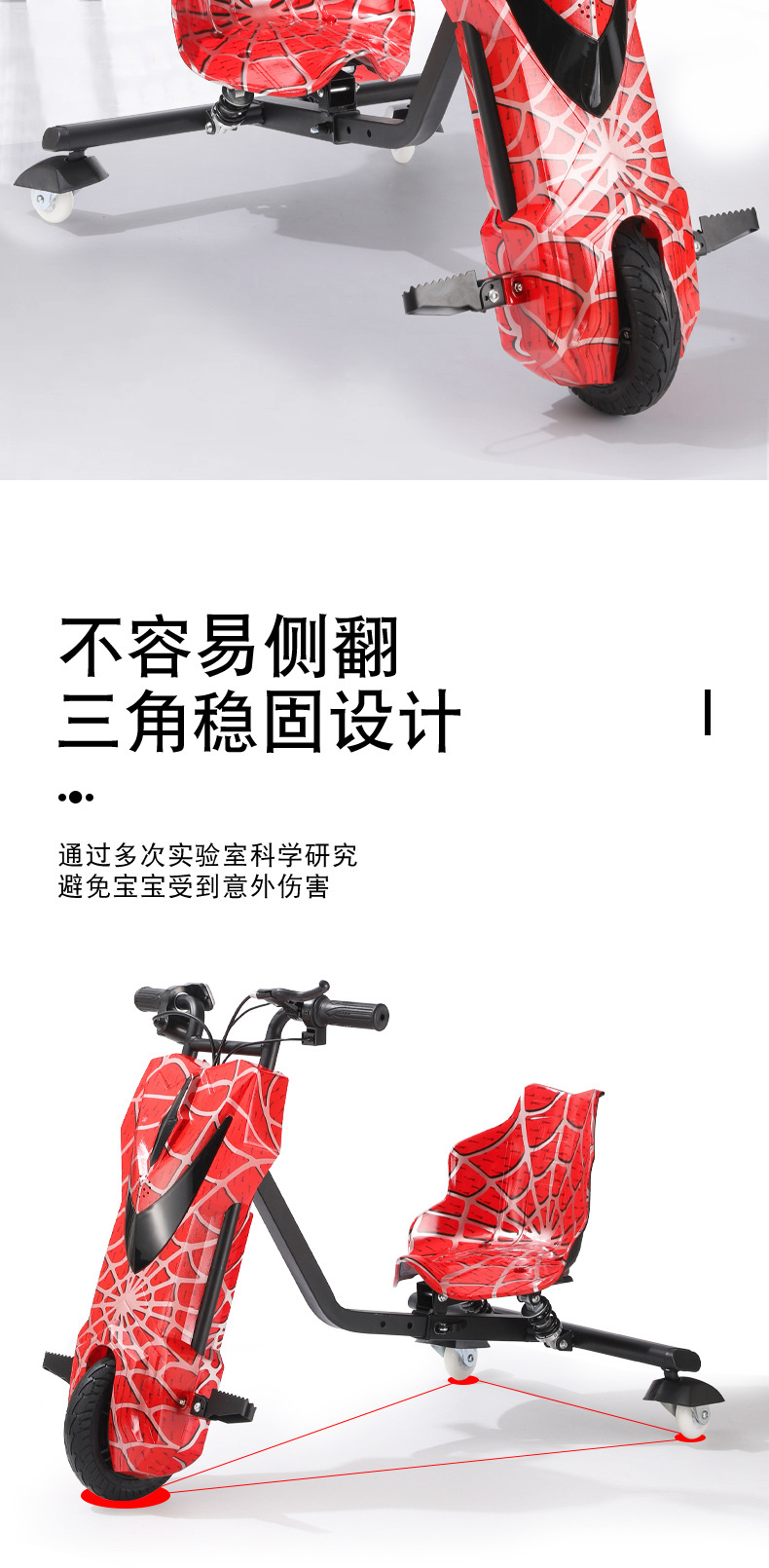 Coche de Derrape de Tres Ruedas para Niños, Amortiguador de Impactos, Coche de Equilibrio para Exteriores, Coche de Derrape Eléctrico para Puestos Callejeros, Scooter