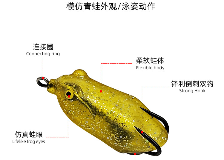 Doble gancho trueno rana trueno cebo fuerte pesca de agua dulce pescado negro lua cebo falso biónico rana cebo suave trueno rana cebo falso 6cm13.5g