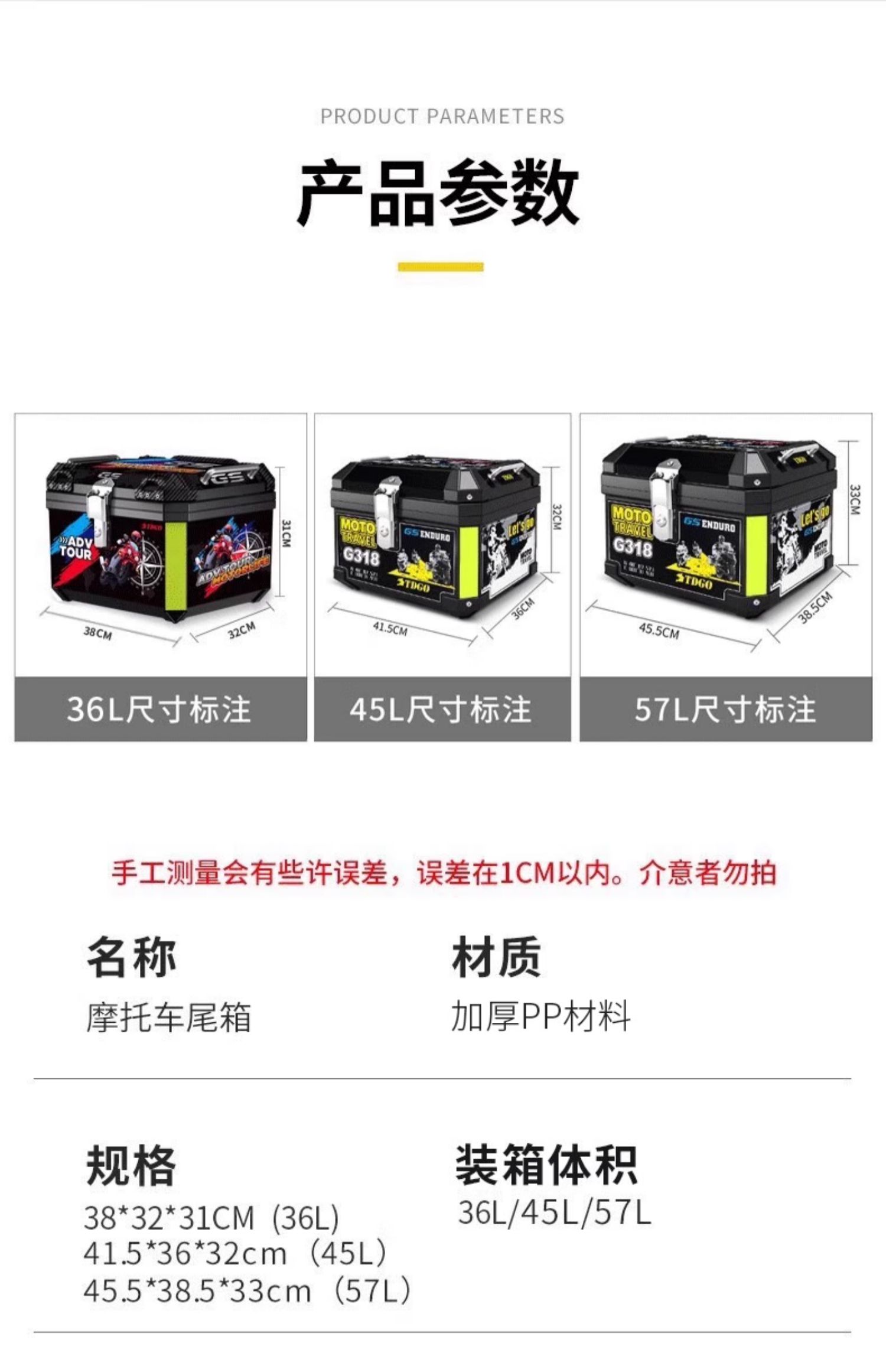Caja de cola de motocicleta, baúl de motocicleta, baúl de automóvil eléctrico, scooter, caja de herramientas de aleación de aluminio no universal grande