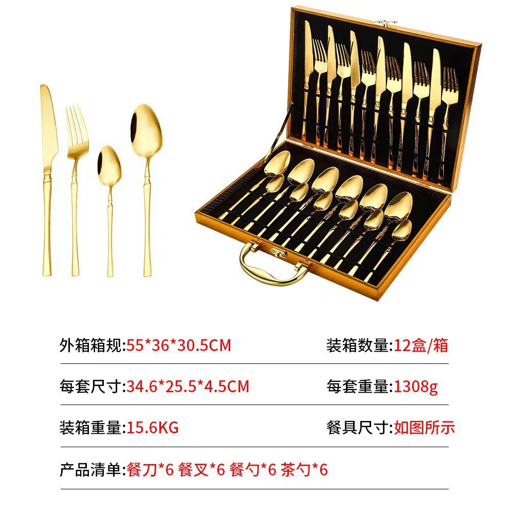 | Lista de trajes | Cuchillo de mesa * 6 cucharas de mesa * 6 tenedor de mesa * 6 cucharas de té * 6 |