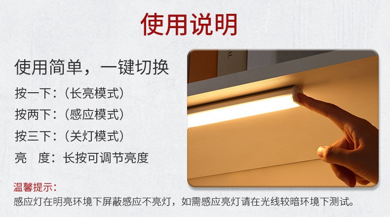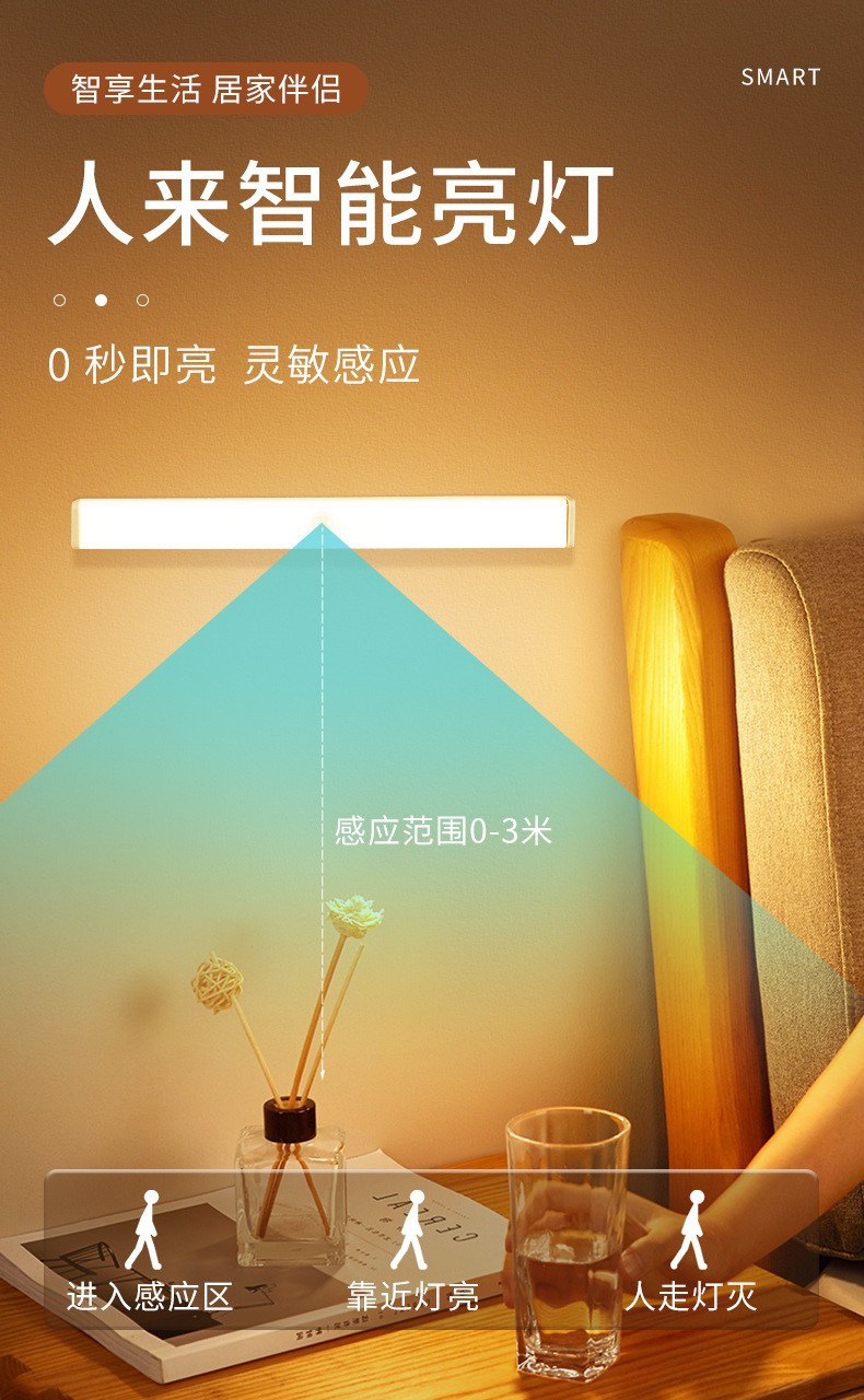 lámpara de gabinete de absorción LED inducción recargable tipo lámpara de noche lámpara de escritorio dormitorio al aire libre barra de lámpara ajustable