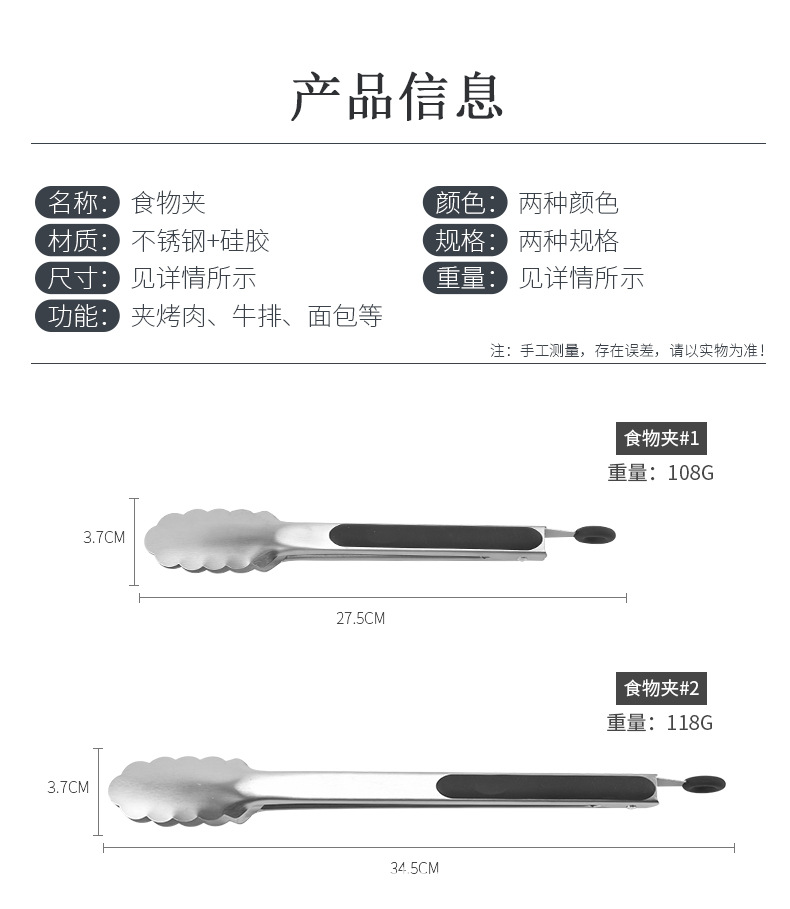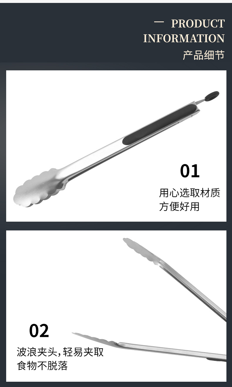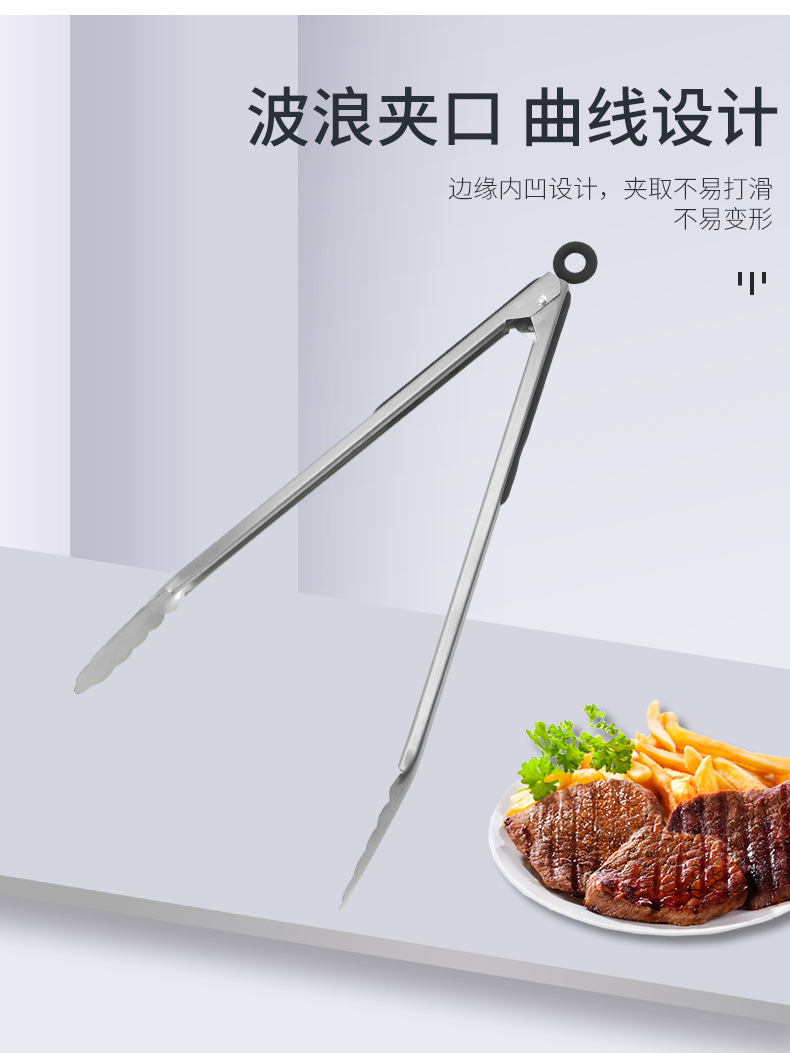 Clip de comida clip de barbacoa de acero inoxidable clip de comida buffet clip de pan de cocina anti-escaldado clip de carne de barbacoa de hotel