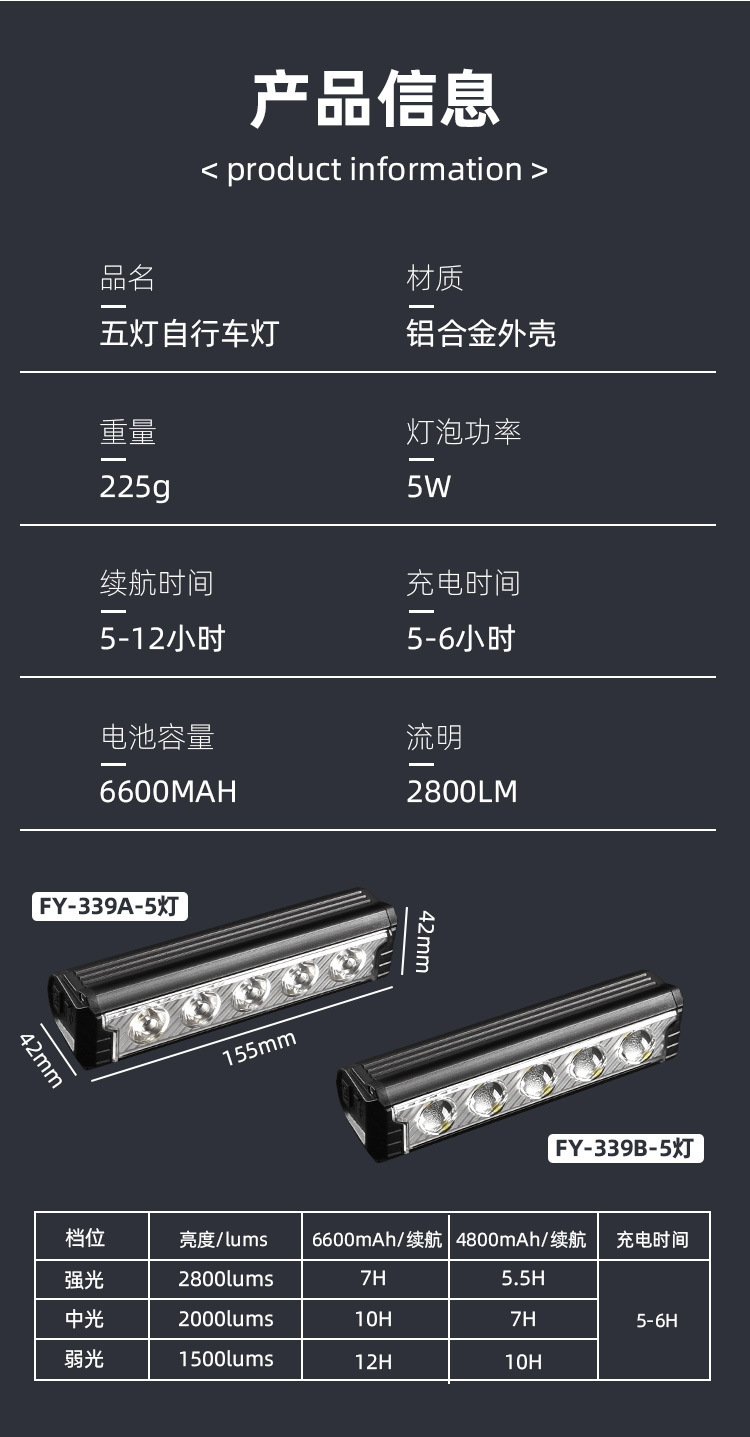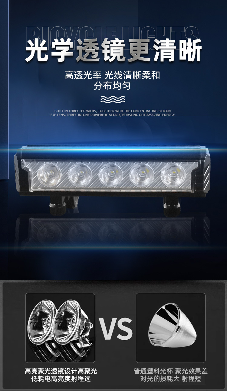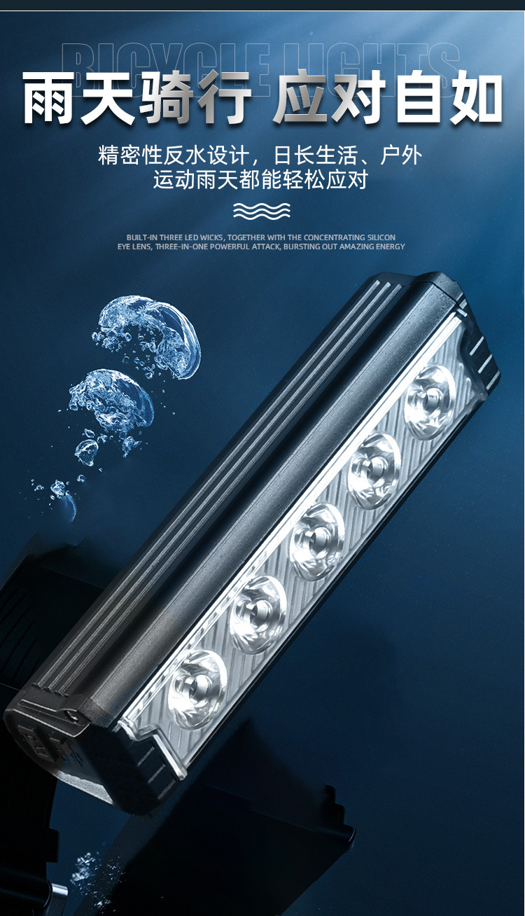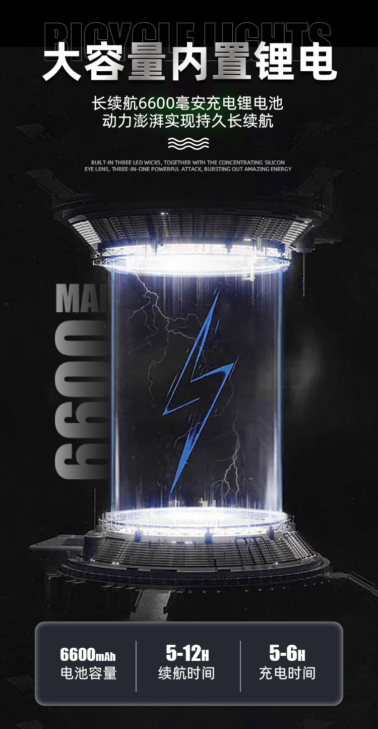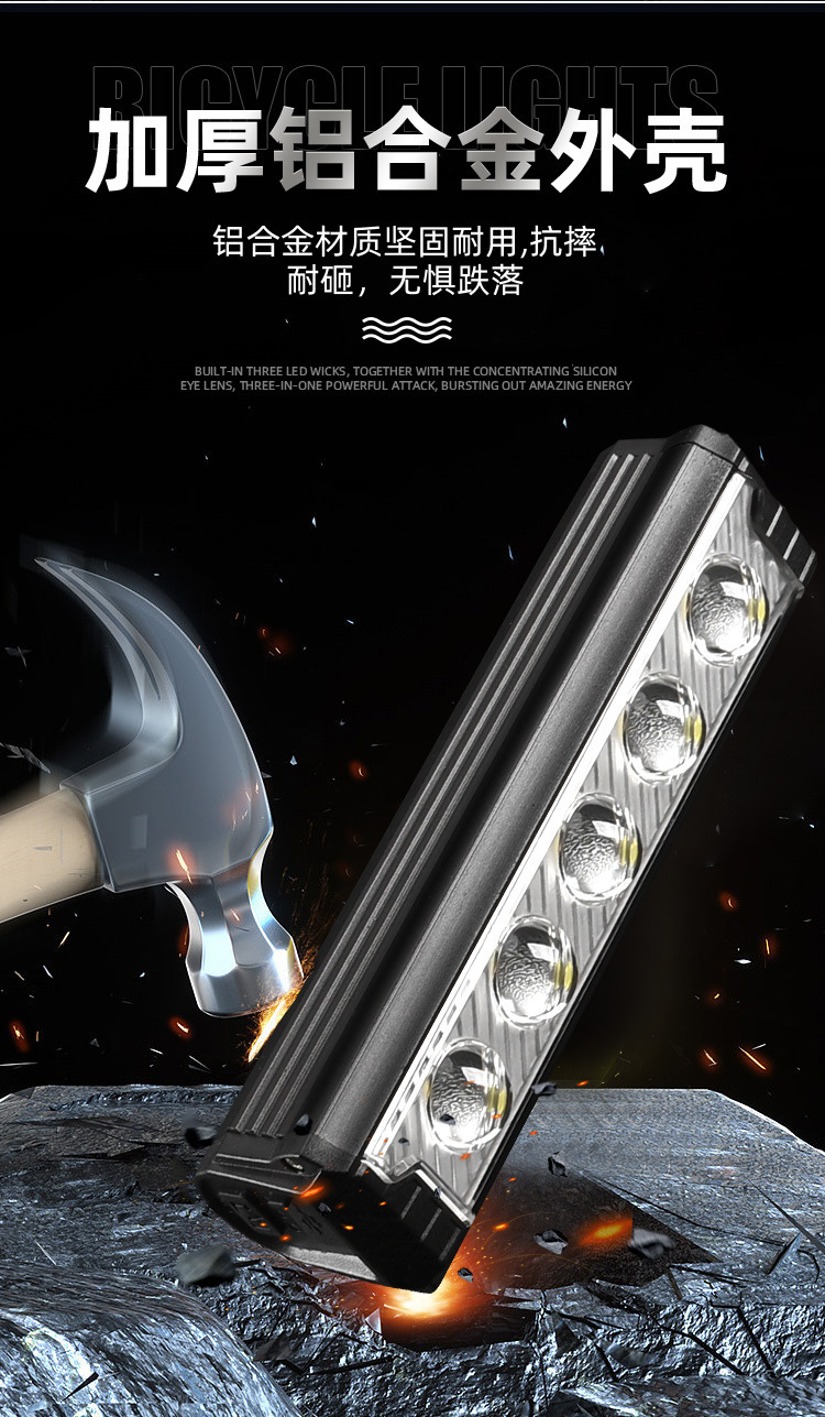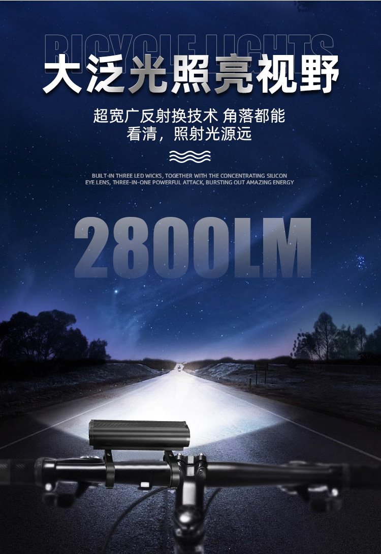6600 lúmenes de luz de bicicleta de montaña súper brillante luz de conducción nocturna luz de bicicleta horizontal de aleación de aluminio de alta capacidad luz delantera