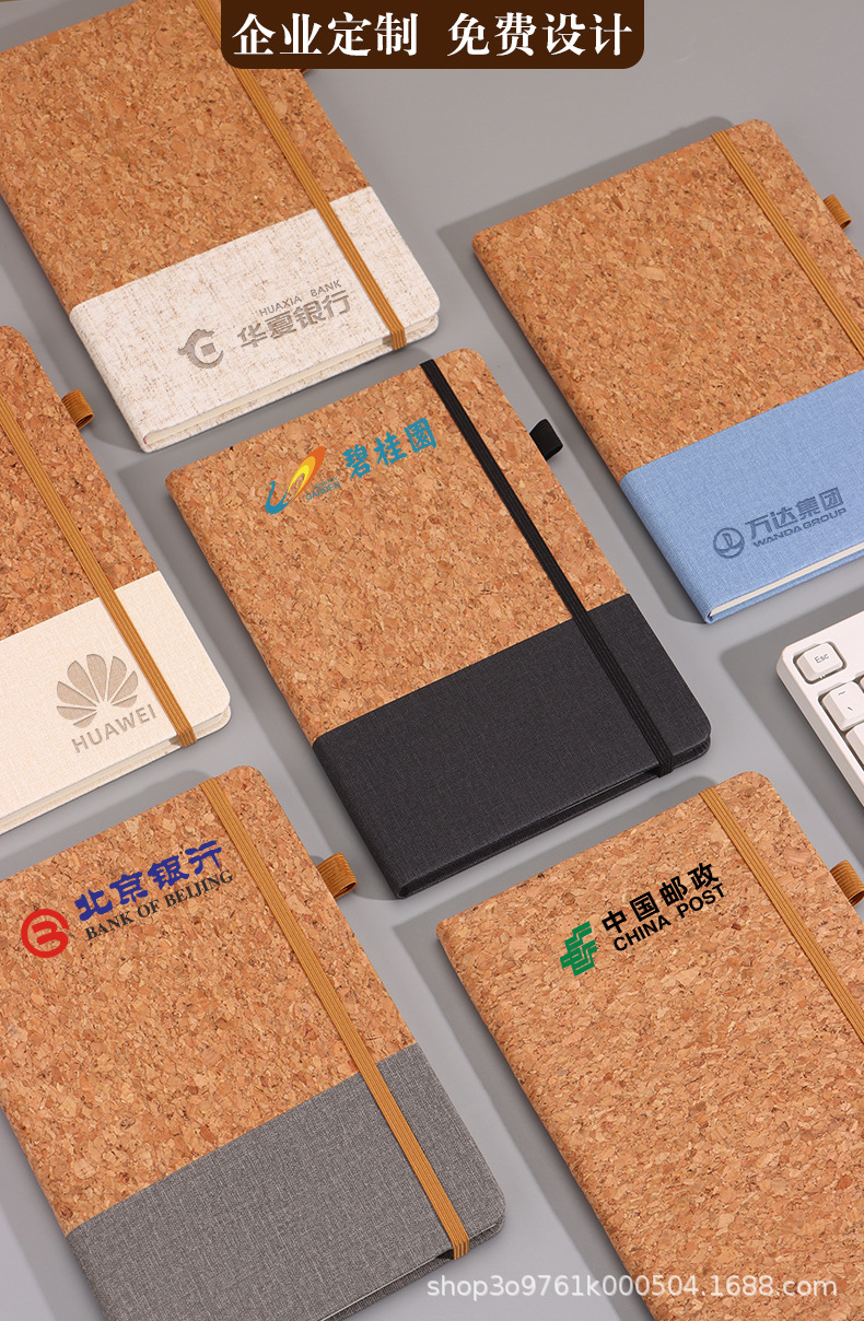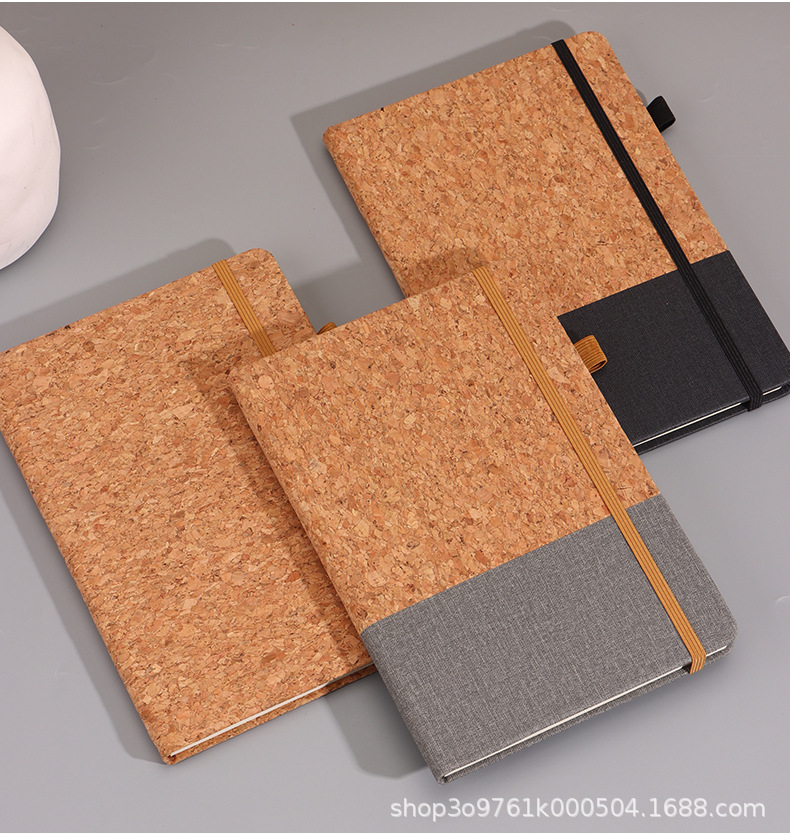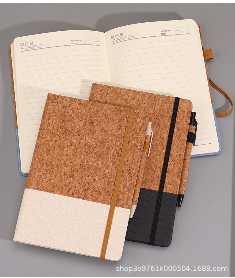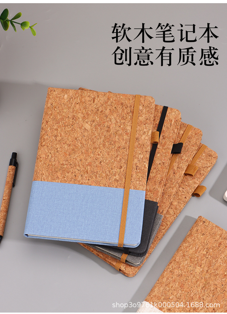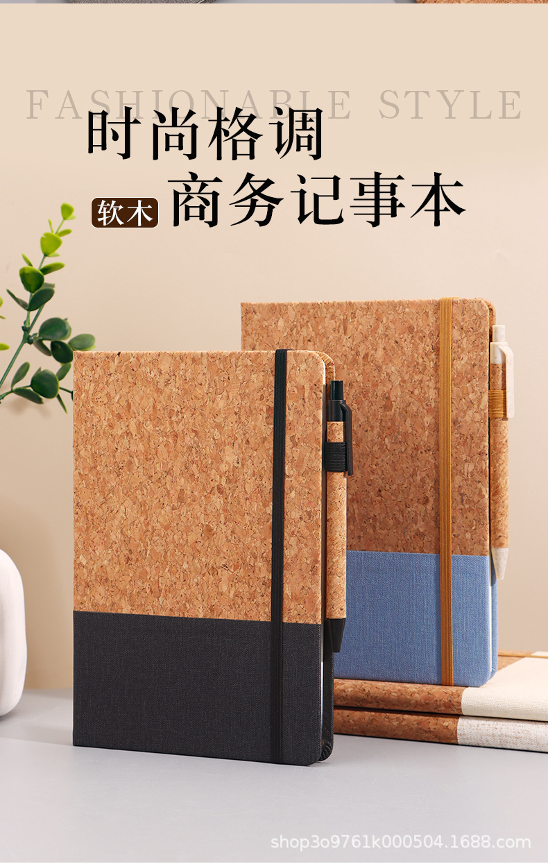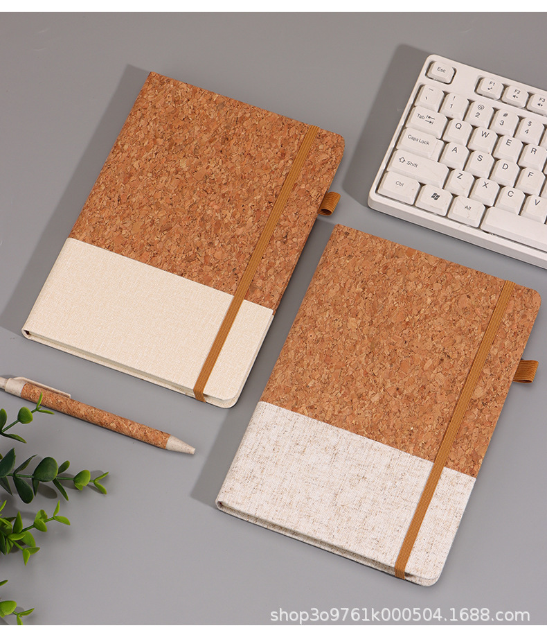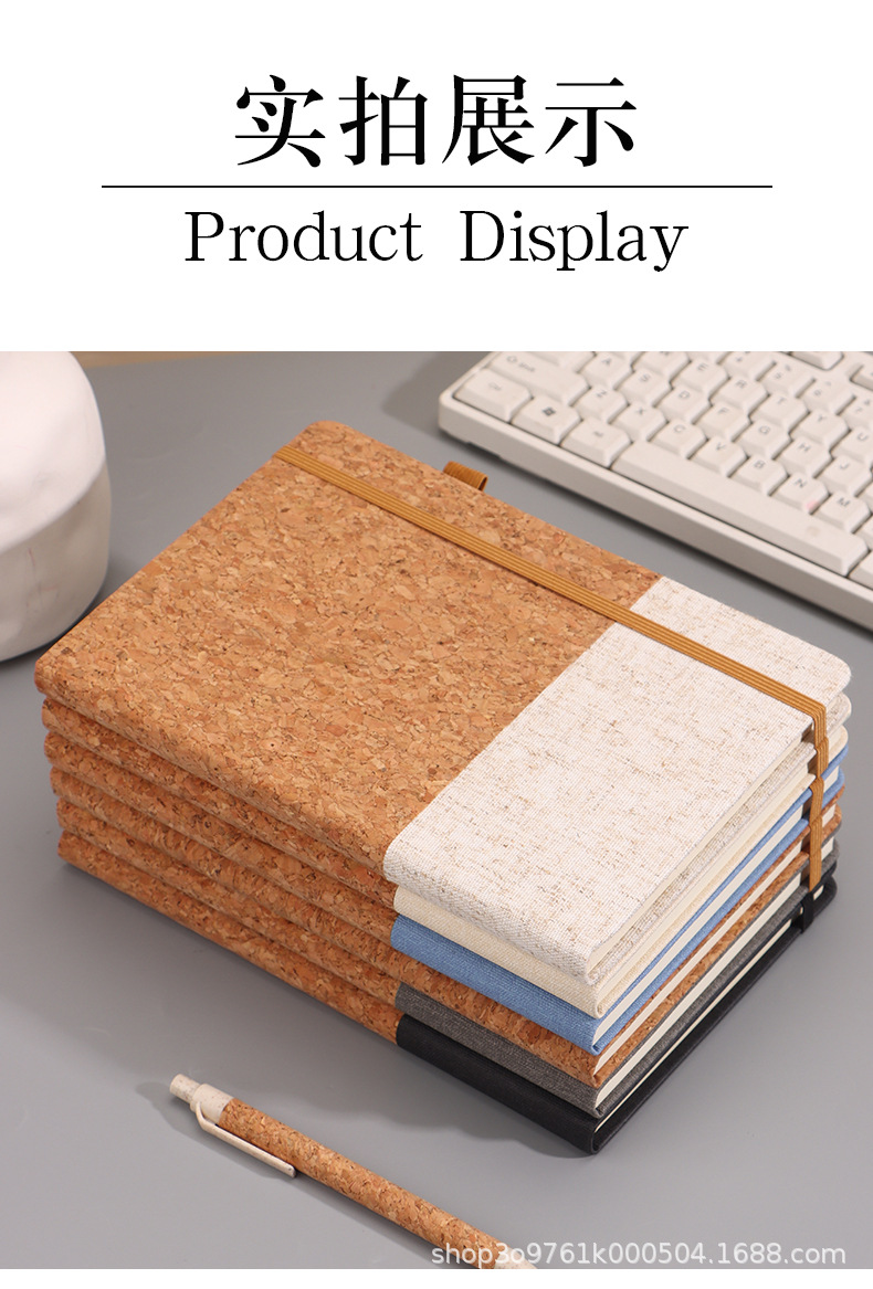 A5 Juego de cuaderno de paja de pino de corcho ecológico empalme de algodón y lino se puede imprimir logotipo empresarial reunión de oficina de negocios