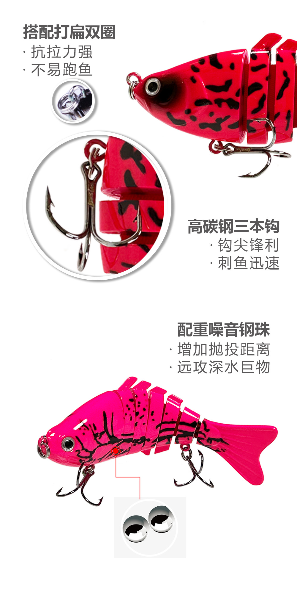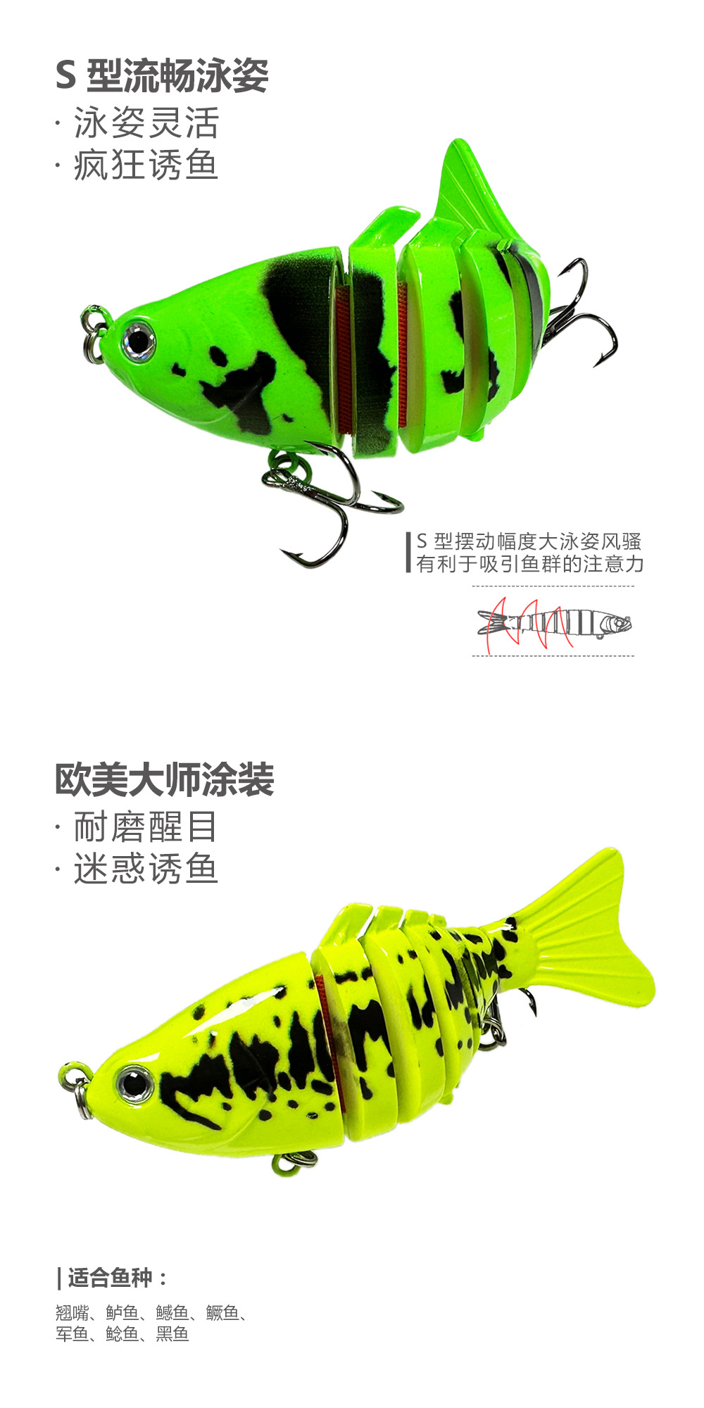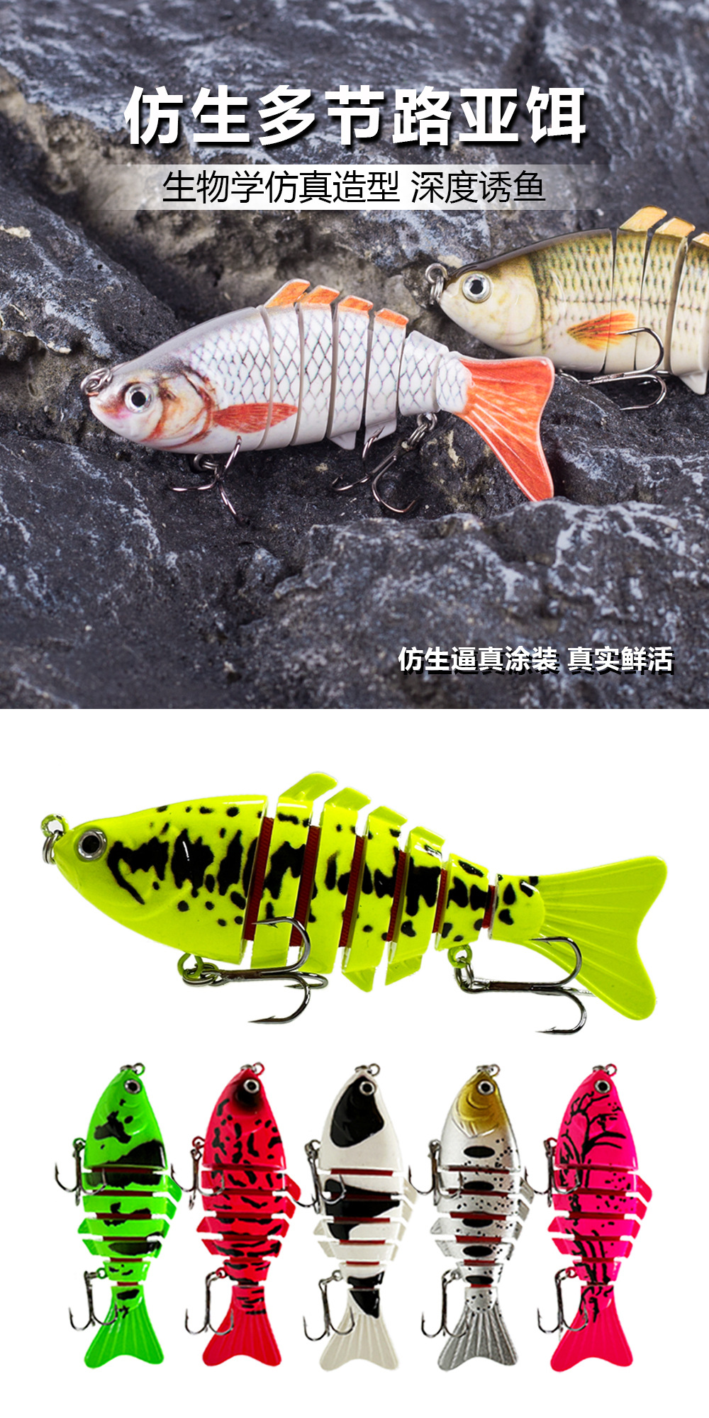 Artillo de pesca transfronterizo 7 secciones 10CM15g gancho duro biónico cebo plástico de agua dulce biónico cebo