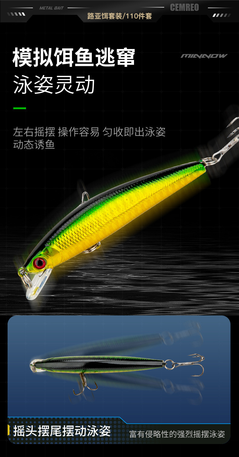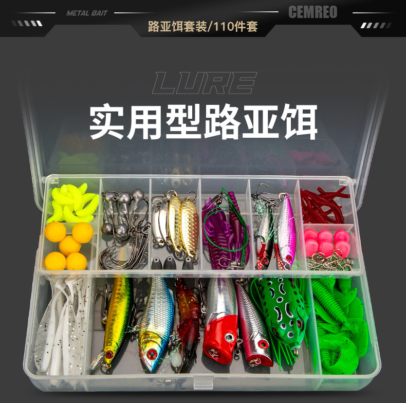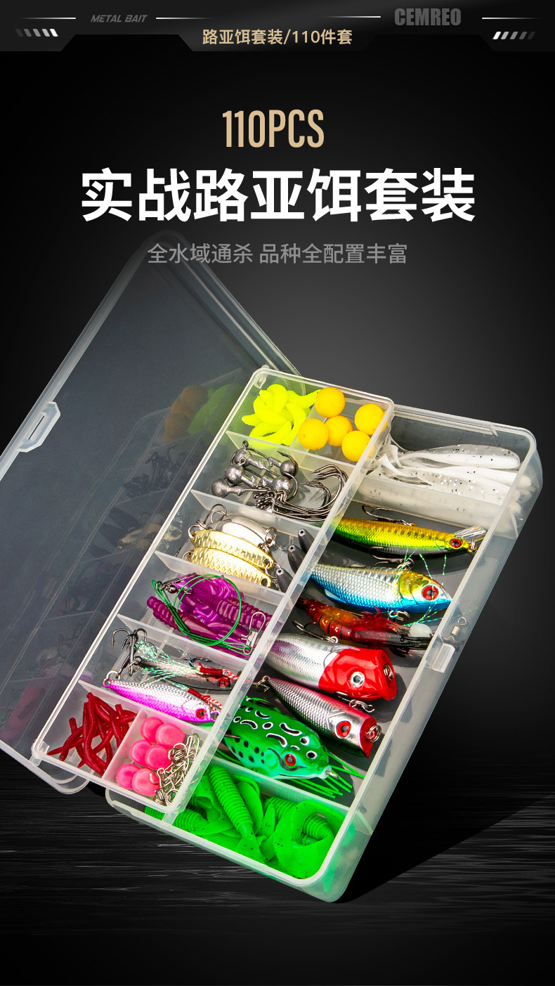 | Color | Juego integral de 110 piezas de cebo luya |