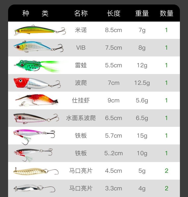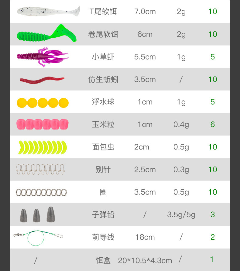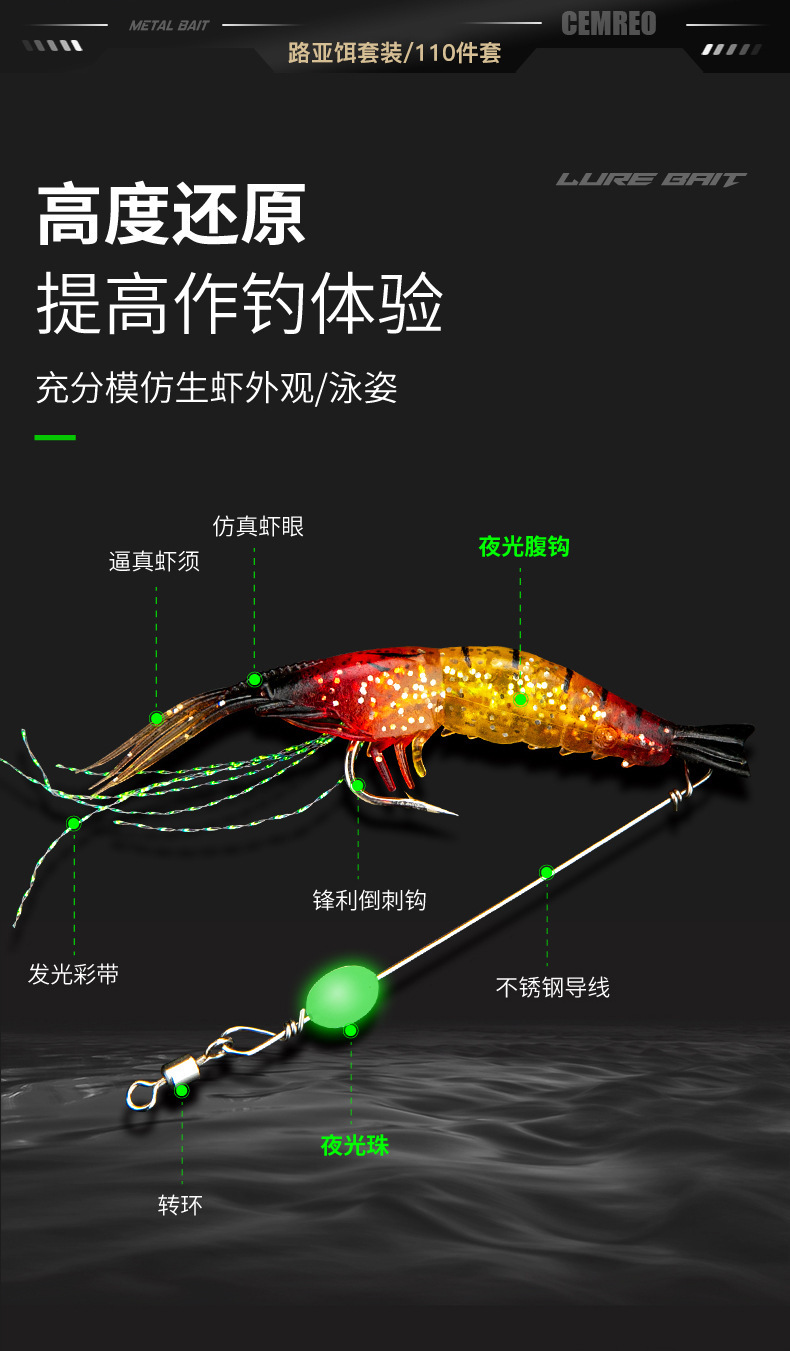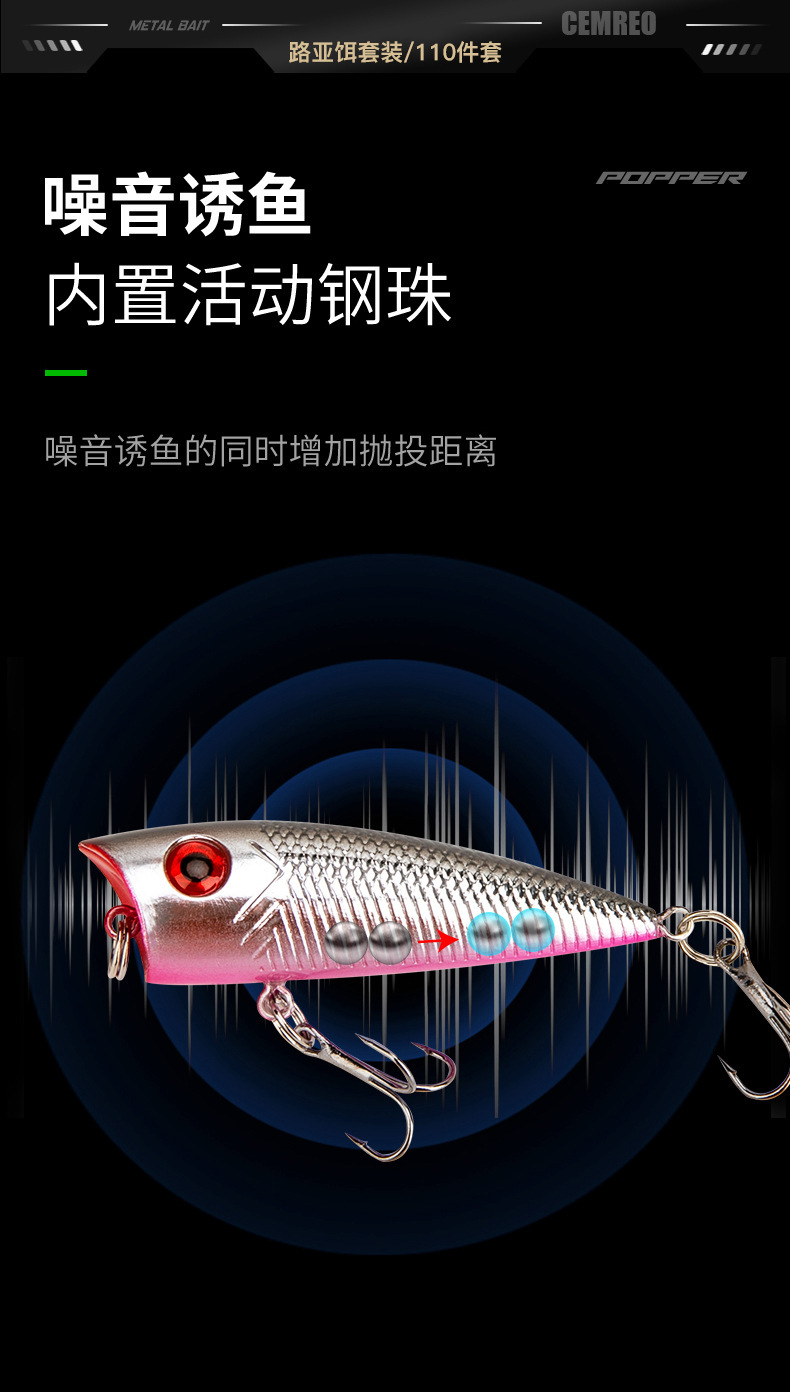 | Color | Juego integral de 110 piezas de cebo luya |