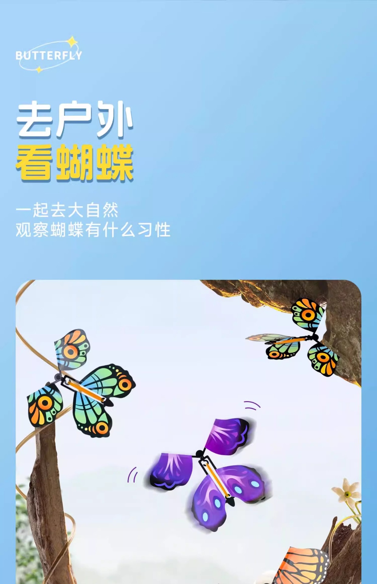 Mariposa voladora nuevo juguete al aire libre para niños caja de regalo con spray de flores libélula de bambú para niños