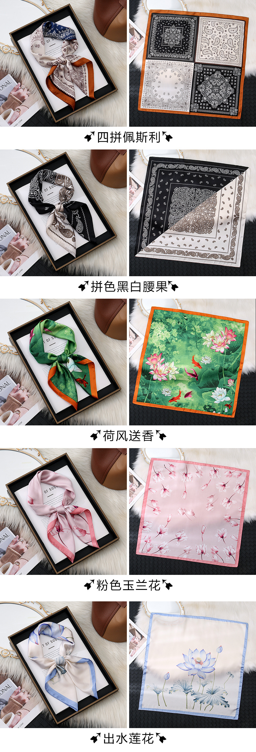 | Colores | Plumas trébol de cuatro hojas,Rayas negras,Rayas blancas,Vela náutica,Pintura al óleo pastoral,Flores de cerezo románticas,Bosque de abedules de viento,Pintoresco,Mandarin,Carro H (negro),Carro H (beige),Letra D (blanco),Letra D (negro),Raza de camelia (blanco),Raza de camelia (negro),Caballo de Troya (negro),Caballo de Troya (verde oscuro),Caballo de la corte,CC borde rojo y verde,Peonía en plena floración,Camelia (negro),Camelia (tono de piel),Lleno de primavera,Orquídea de ensueño,Cien flores,Flores de color verde púrpura,Fragancia oscura,Lazo de línea (negro),Lazo de línea (marrón),Punto de onda en blanco y negro,Flores de colores (rojo),Flores de colores (beige),Caballo al galope,Cabeza de caballo de dibujo de línea,Caballo de arroz,Retrato de boceto,Nueva golondrina blanca lechosa,Río Sena,Letras del cubo de Rubik,Porcelana azul y blanca,Tótem rojo fuego,Estética Tal,Hebilla de cuero pictórico,Insignia de arco,Hebilla de herradura naranja,Edificio de la jungla,Antiguo testamento de Bach,Cadena de leopardo,Flor de ginkgo de hoja caduca,Flor de loto,Elegante estanque de loto,Conjunto Paisley de Cuatro Piezas,Anacardos en bloques de color blanco y negro.,La fragancia del viento de loto.,magnolia rosa,Loto fuera del agua |
