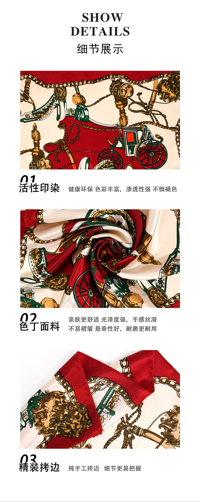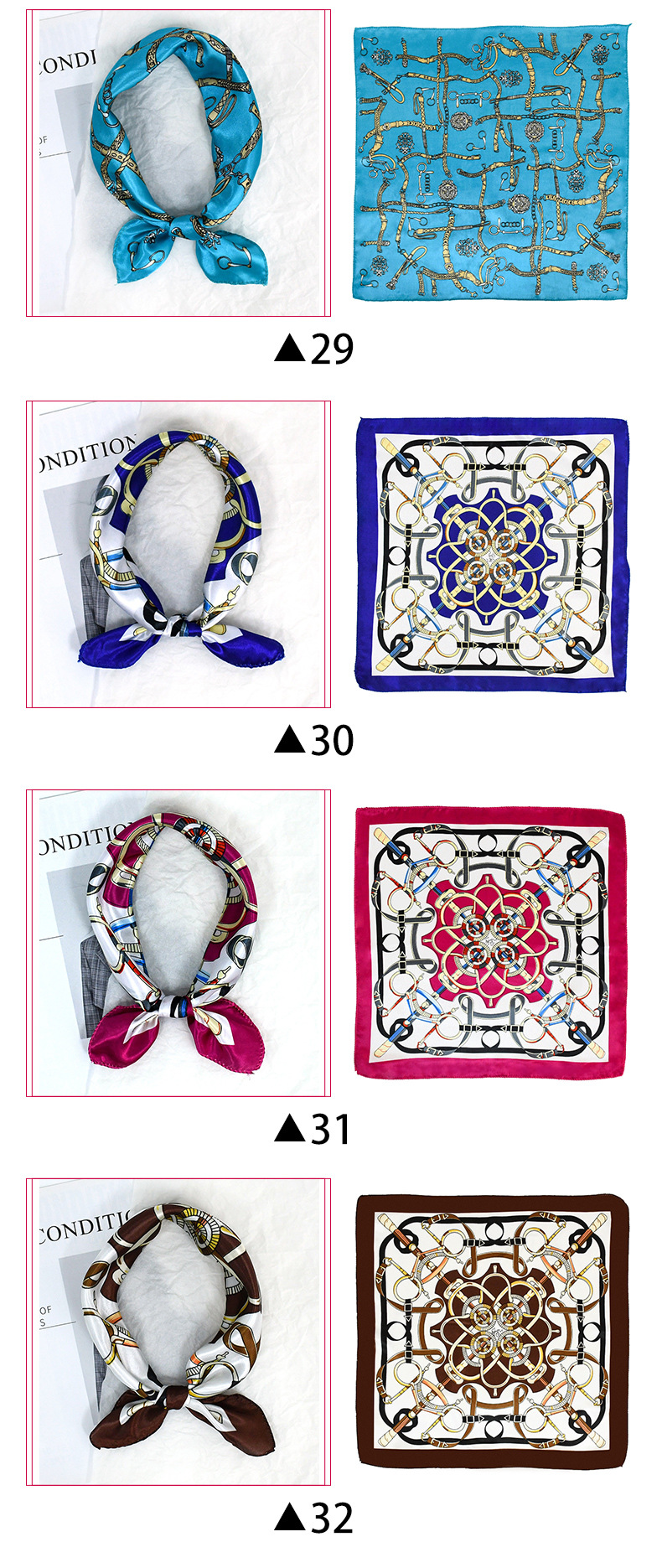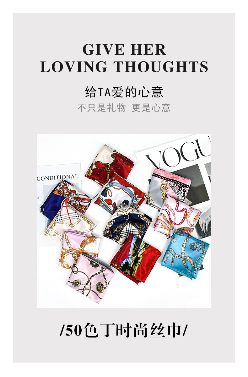 50 Satin Chain Pañuelo cuadrado estampado Color Sense de alta gama Moda de todo fósforo azafata profesional Servicio al cliente Bufanda de decoración Bufanda de seda