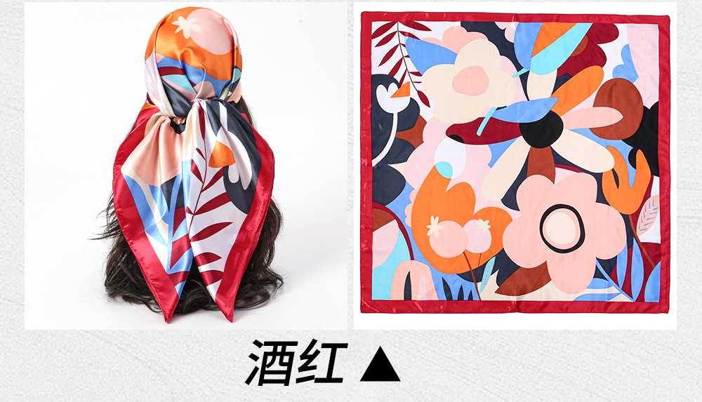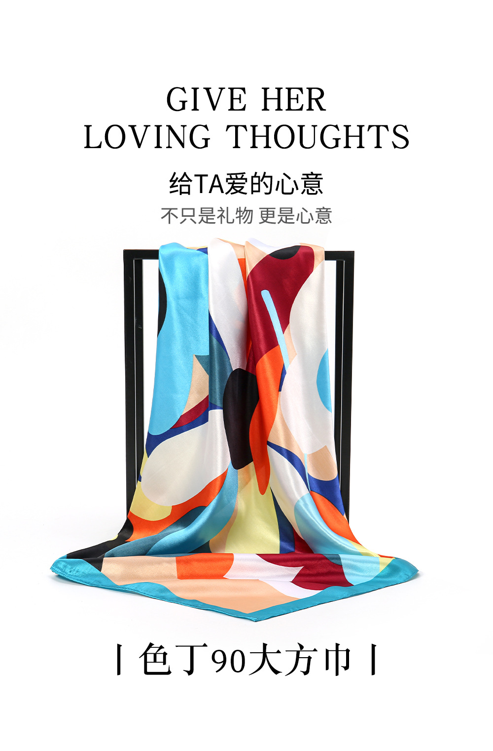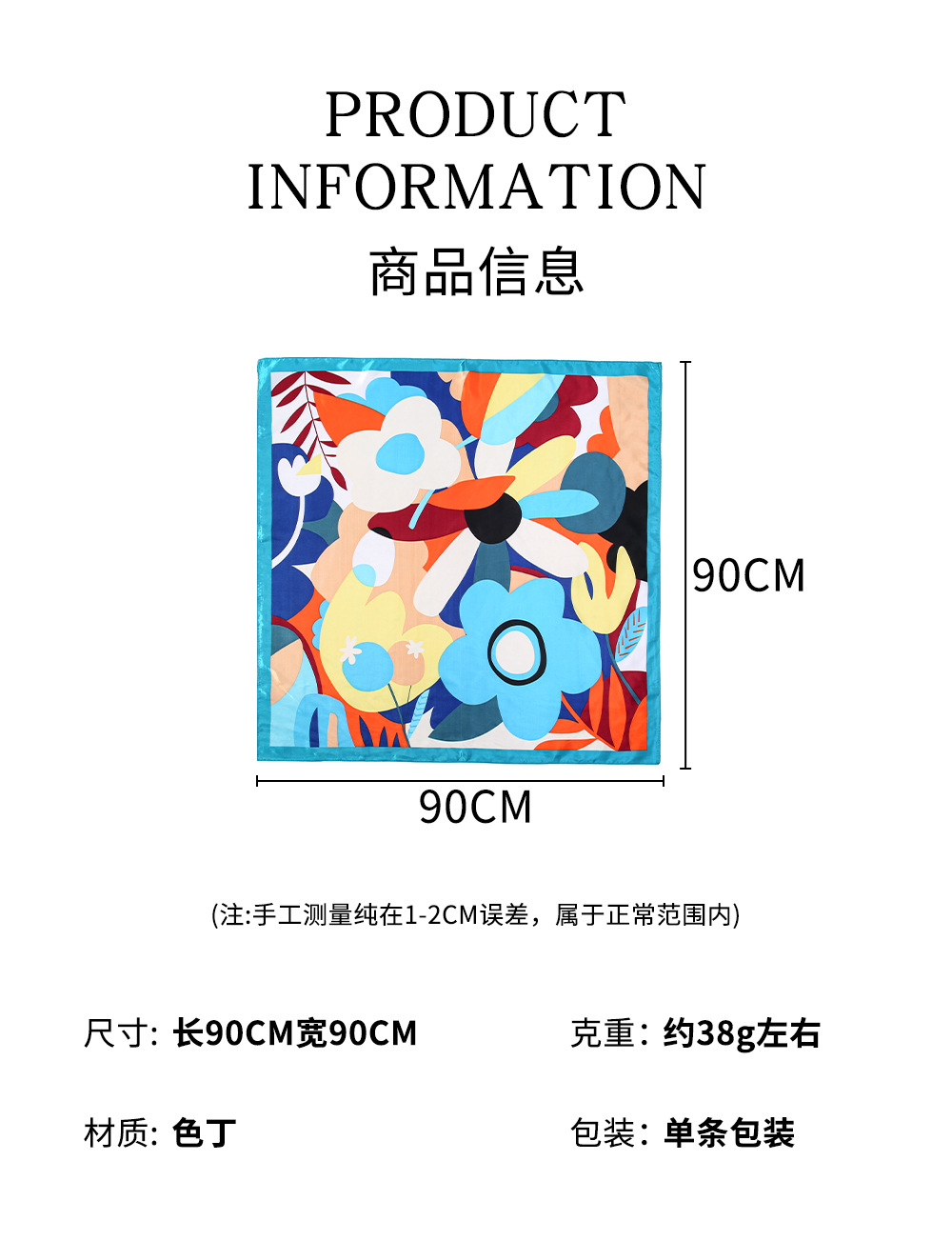 Pañuelo cuadrado de 90 colores fresco y lindo, flor, viaje de viaje, bufanda de seda estampada de moda multiusos, bufanda cuadrada con cuello femenino