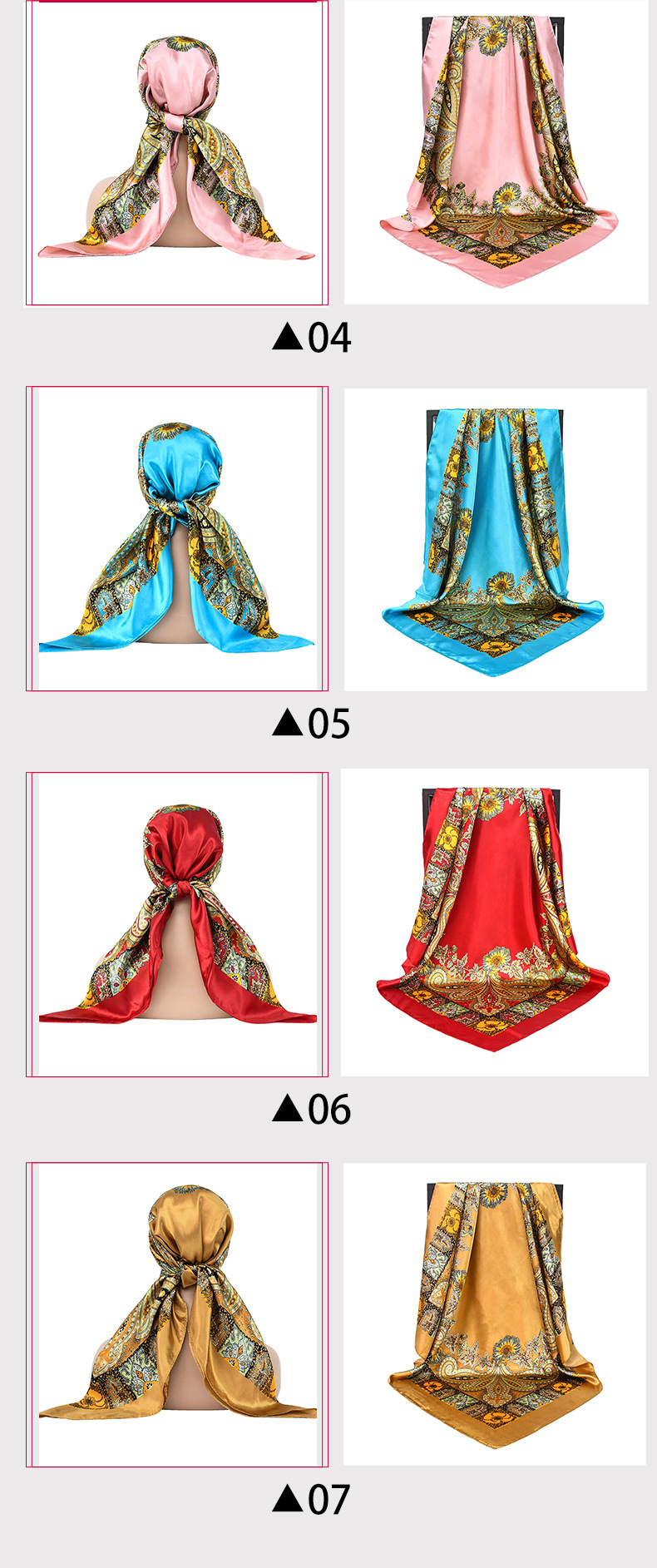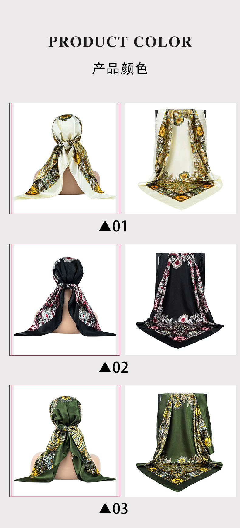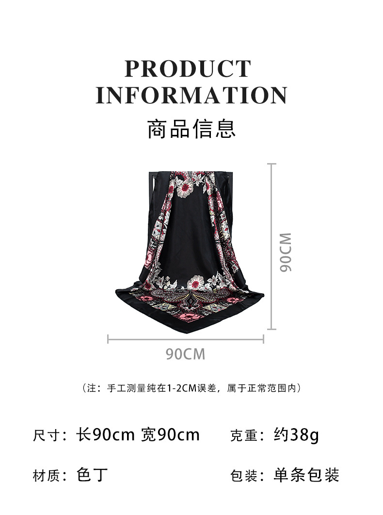 | 01 | Patrón logo personalizado 90 color cuadrado bufanda bufanda de seda |