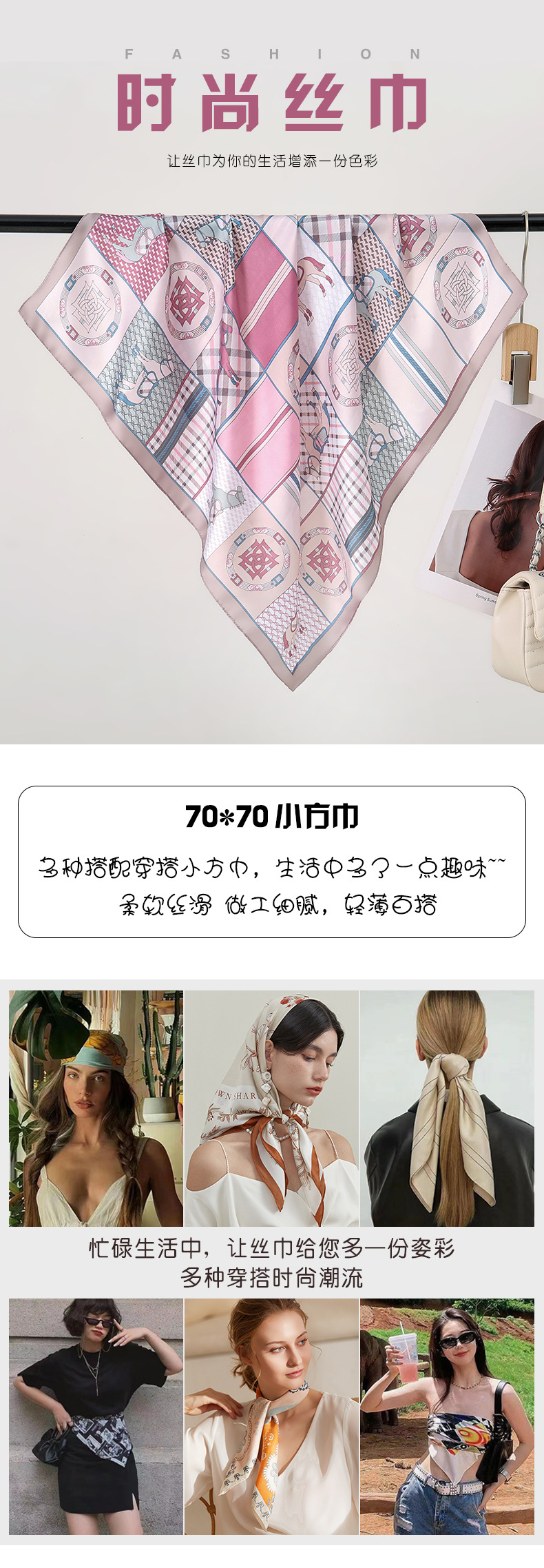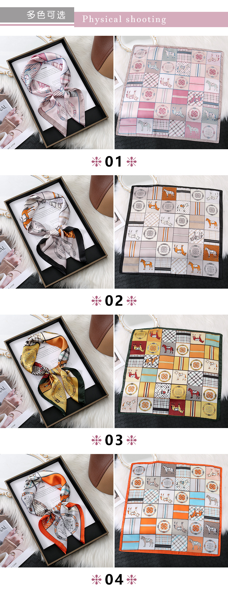 Transfronterizos nueva seda 70 bufandas de seda impresa multicolor diaria bufandas de cabello de alto nivel sensación de ataduras de cabello bolsa bufandas cuadradas