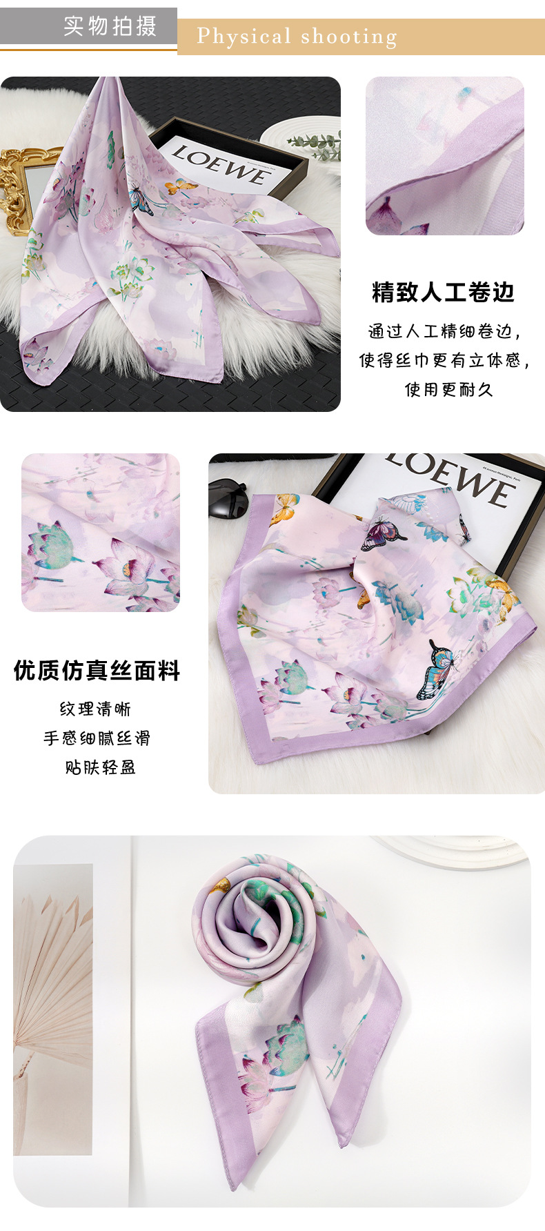 | 02 | Bufanda de seda, bufanda cuadrada, logotipo de patrón, personalización de imagen |
