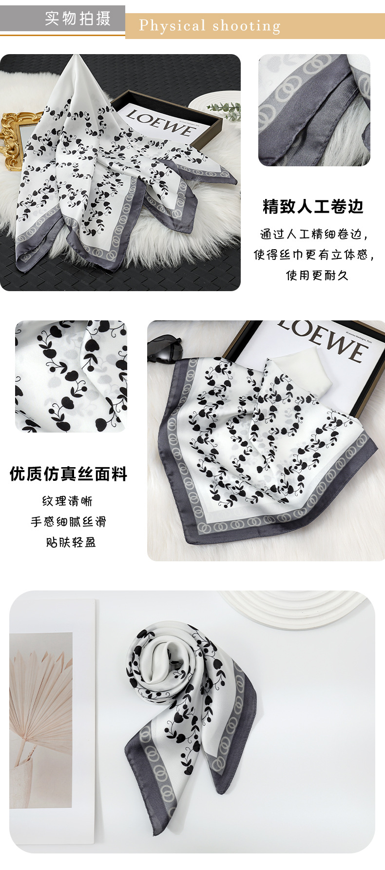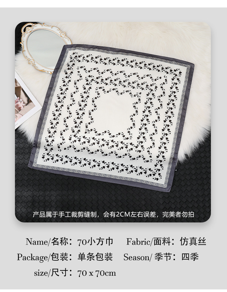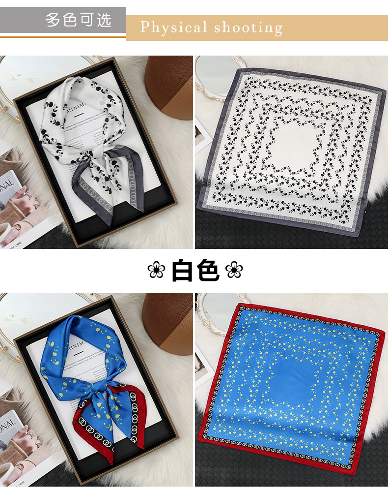 Pañuelo de seda de imitación con estampado blanco francés, chal de protección solar, bolsa de atar, bufanda cuadrada para el cabello, uso simple, flor 70, bufanda de seda