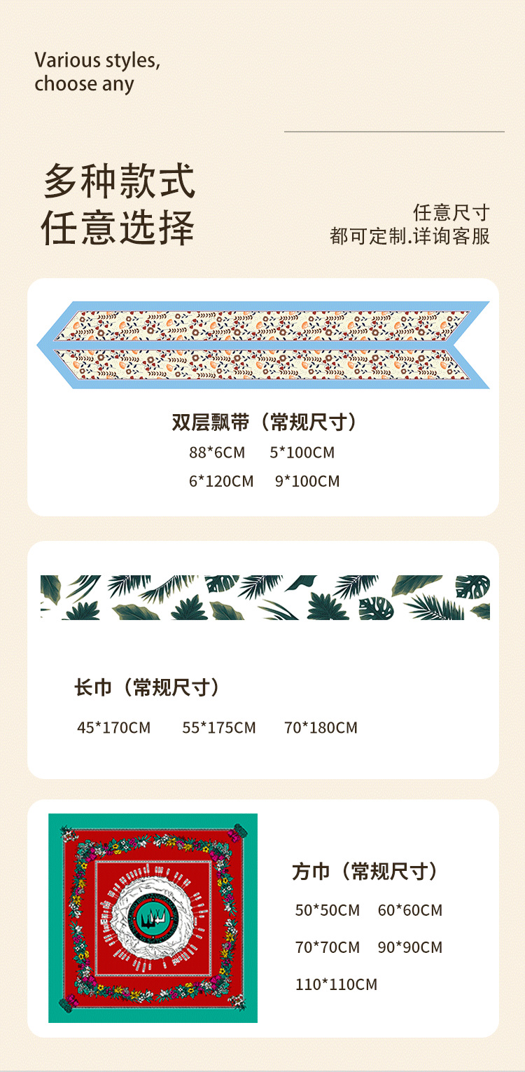 Fuente Fábrica Bufanda de seda Bufanda cuadrada Bufanda triangular Serigrafía digital de una cara y doble cara personalizada Serigrafía con dibujos y muestras Pedido