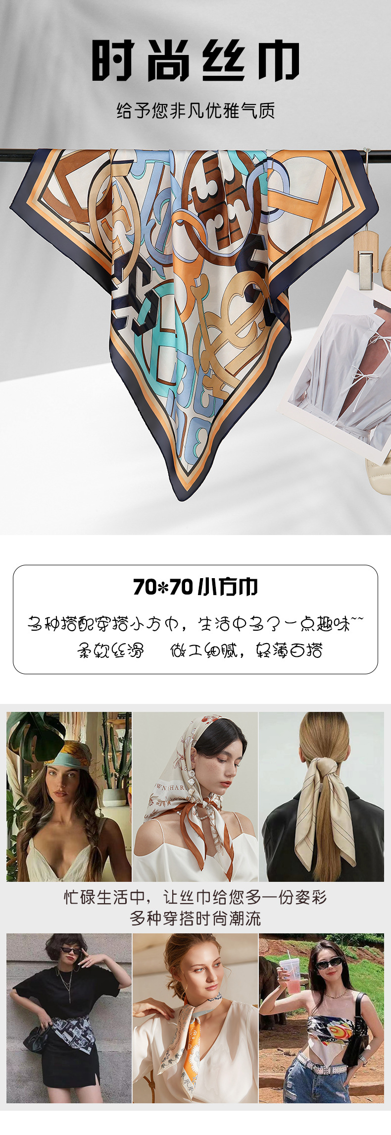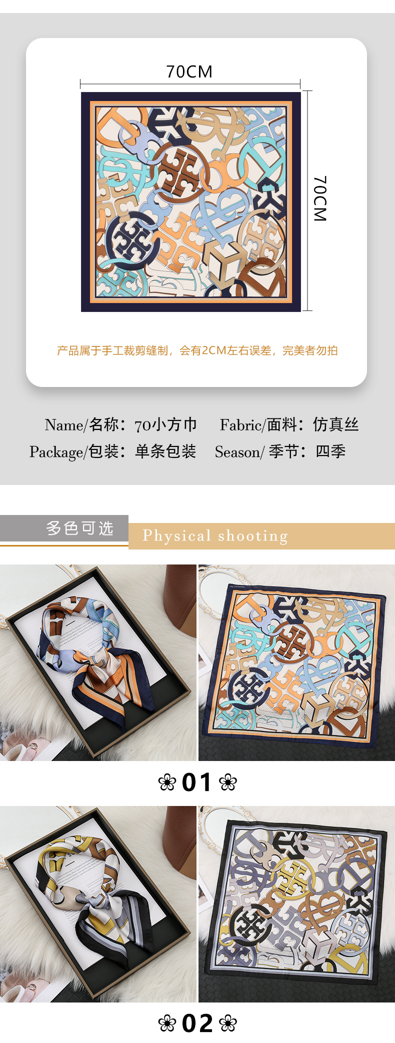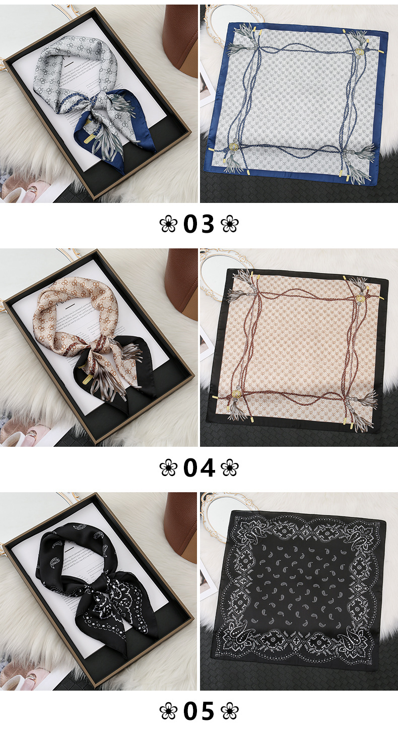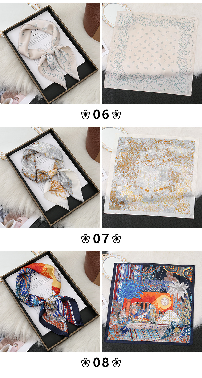 | 01 | 70x70 bufanda de seda pequeña cuello 4 temporadas con nueva bufanda cuadrada nueva primavera y verano bufanda femenina de moda extranjera |