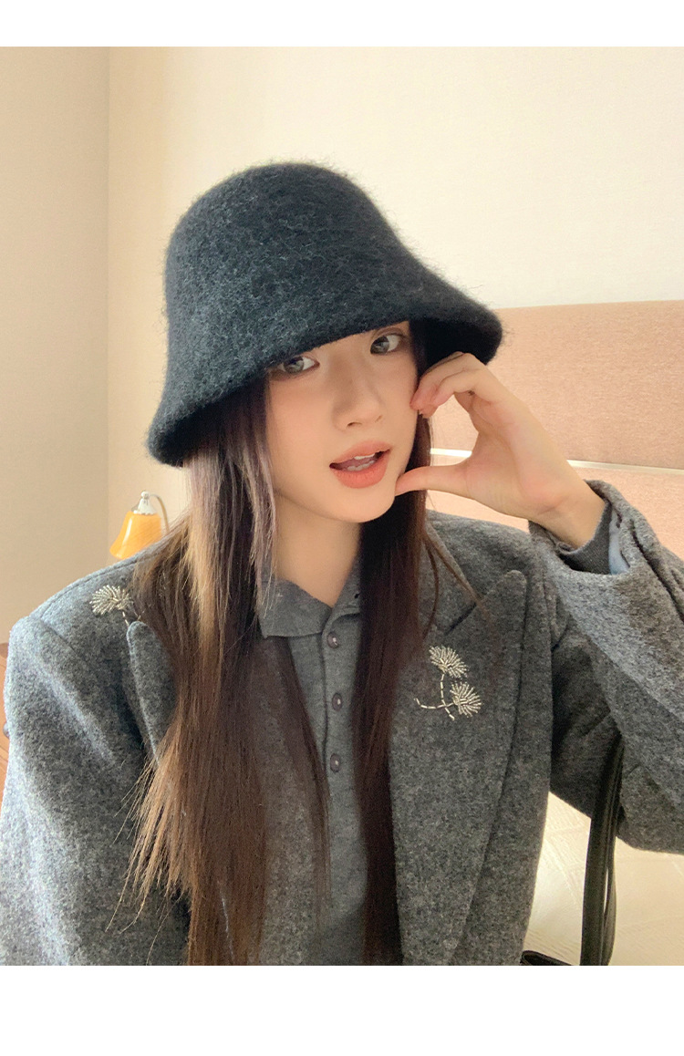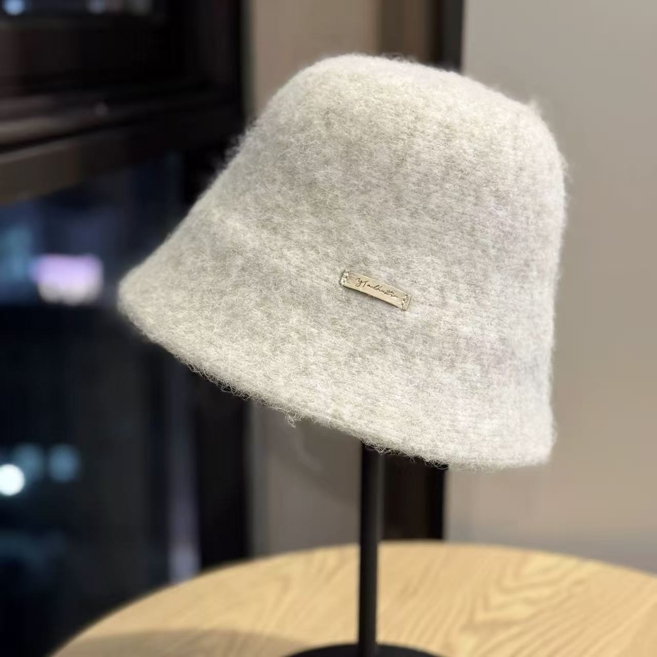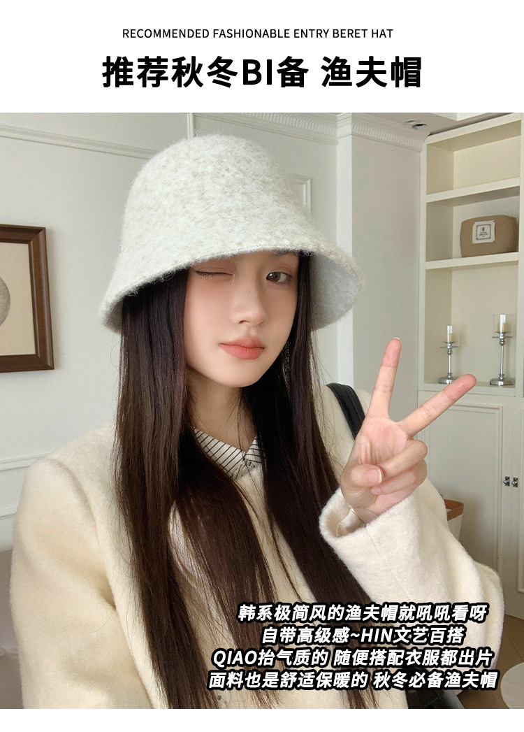 Francia elegante sombrero de pescador blanco para mujeres otoño y invierno 2025 nuevo estilo artístico para mostrar la cara pequeña sensación simple sombrero de cubo de agua universal