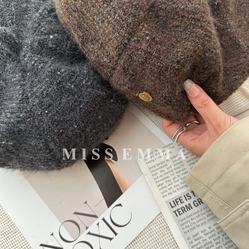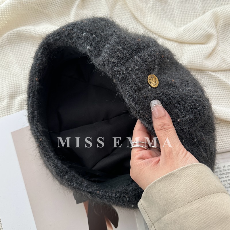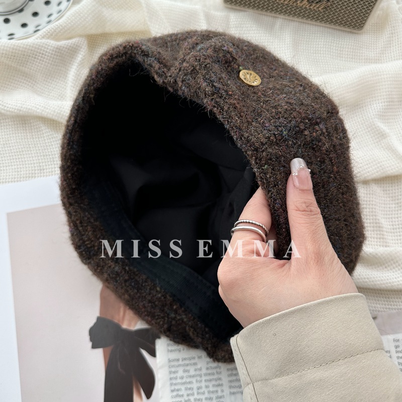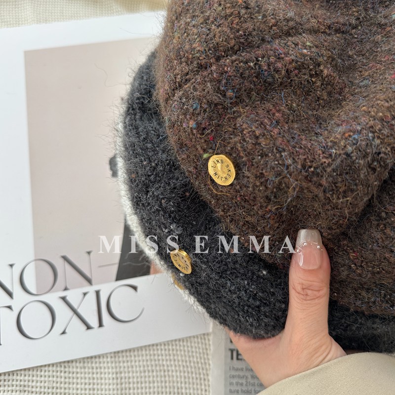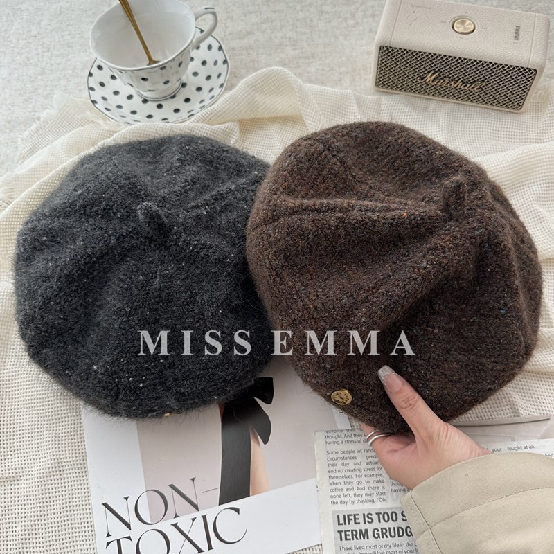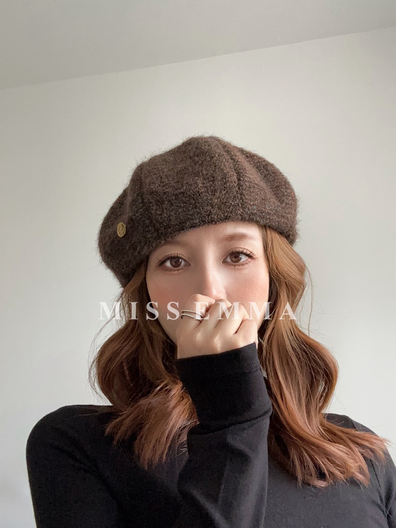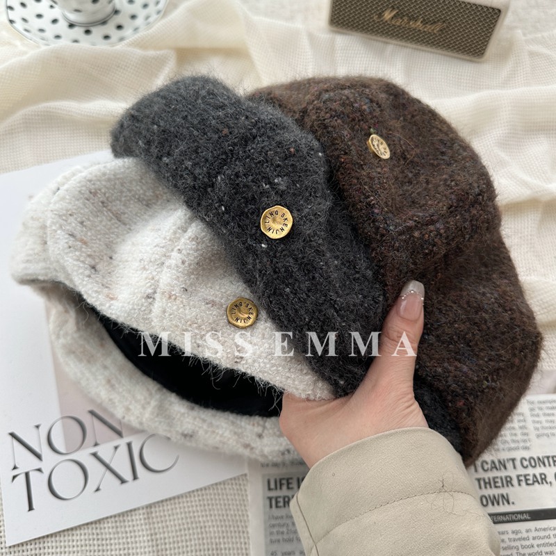 Boina de punto mujer otoño invierno coreano universal Inglés retro octogonal pintor sombrero mostrando cara pequeña lana calabaza sombrero