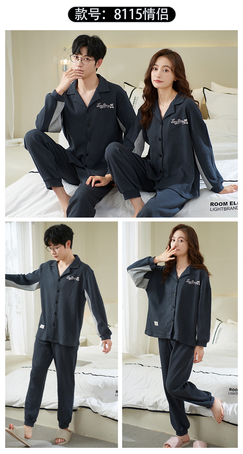 Pijamas de pareja PRIMAVERA/Otoño/Invierno de las mujeres Nuevo estilo coreano lindo cardigan de manga larga waffle casual ropa para el hogar de los hombres se puede usar fuera
