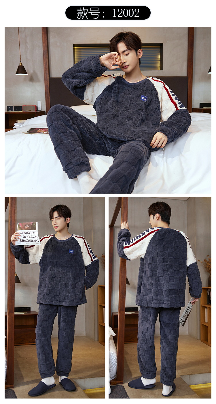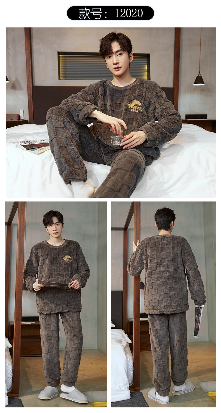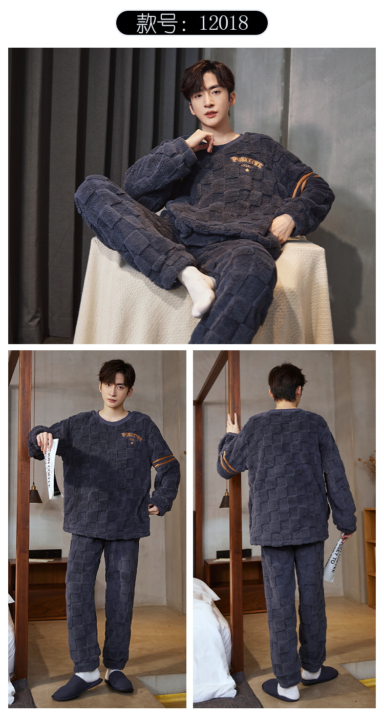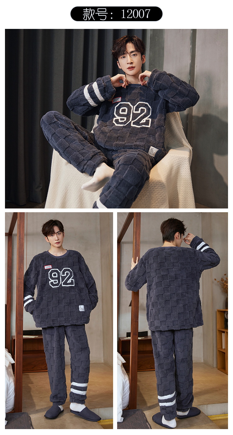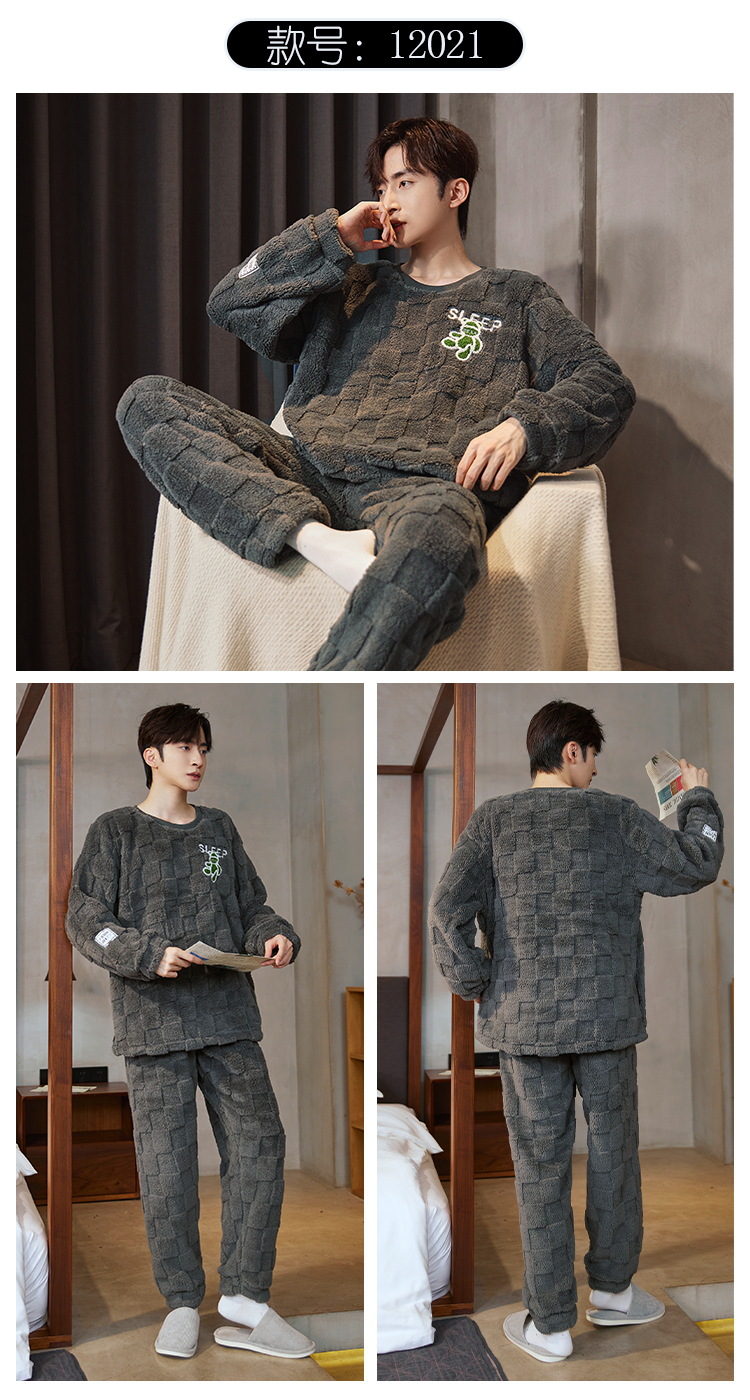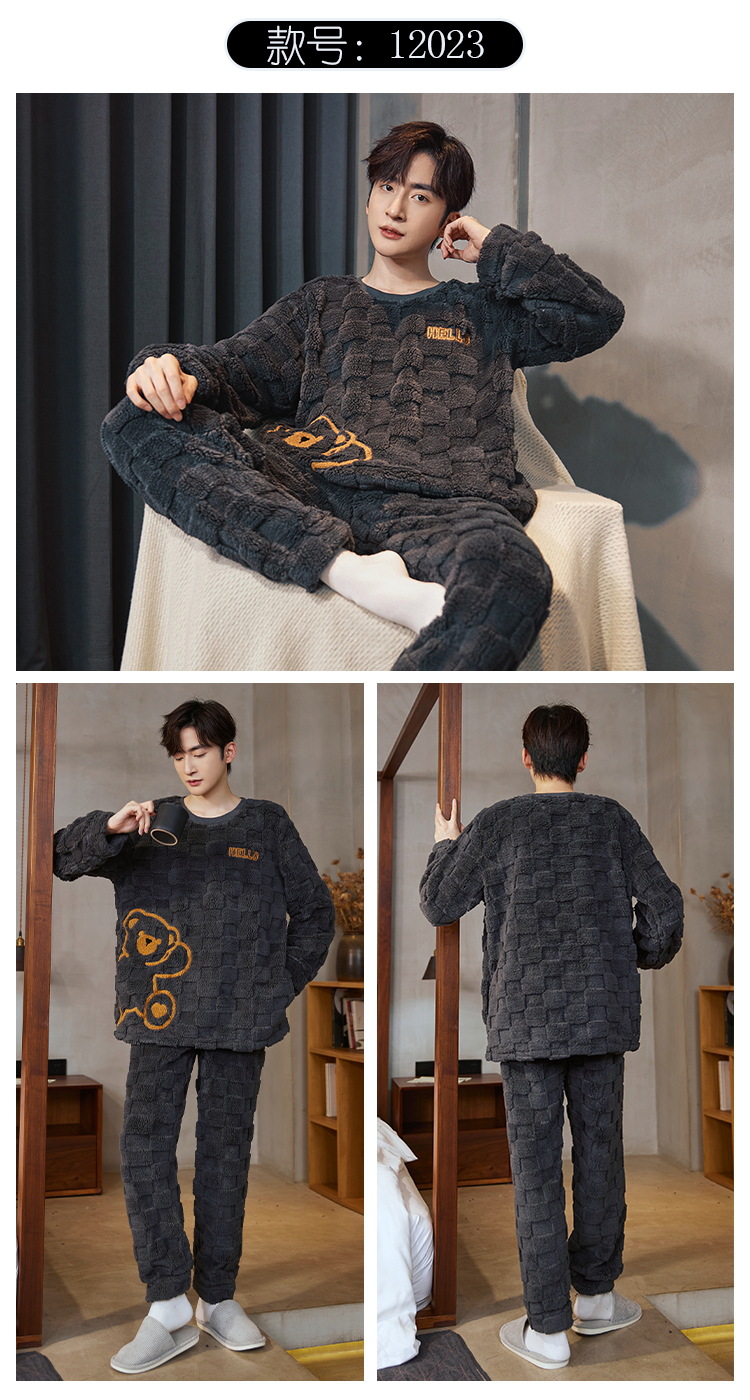 Pijamas de franela para hombres de invierno más grueso de terciopelo de coral de mangas largas para hombres juveniles de alta calidad conjunto de ropa de hogar