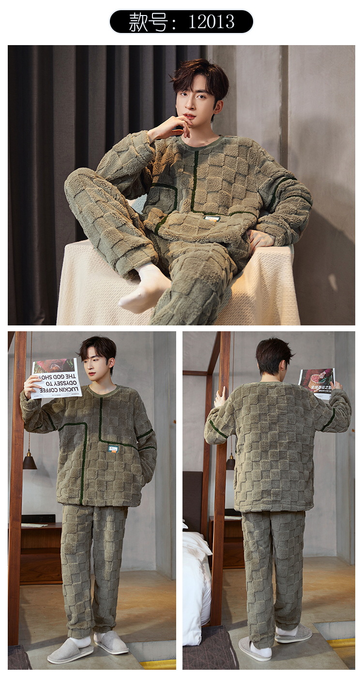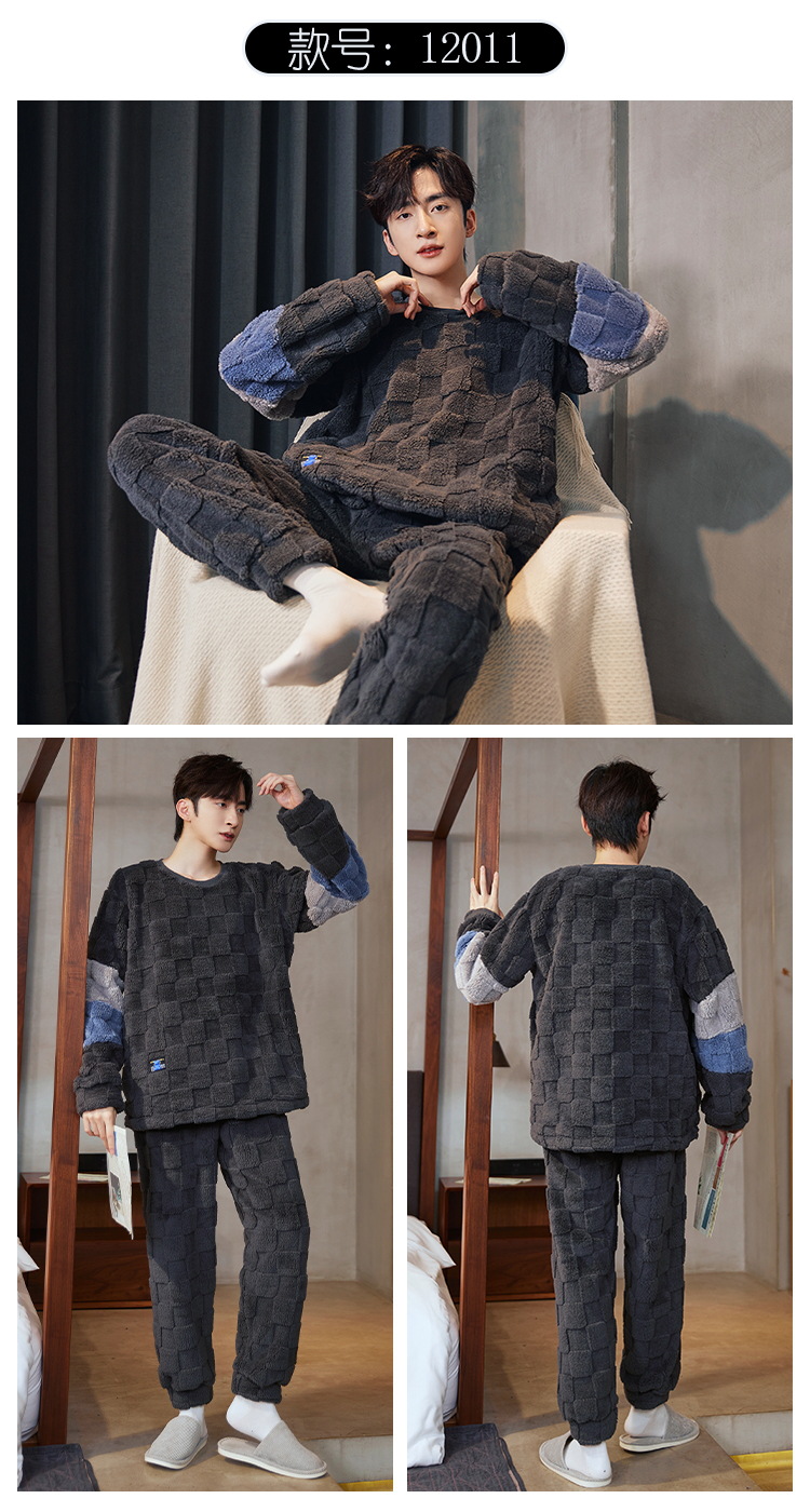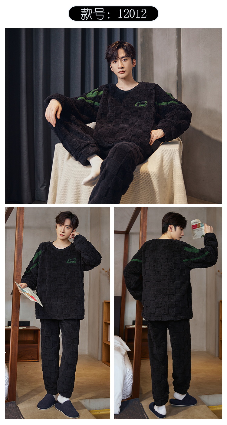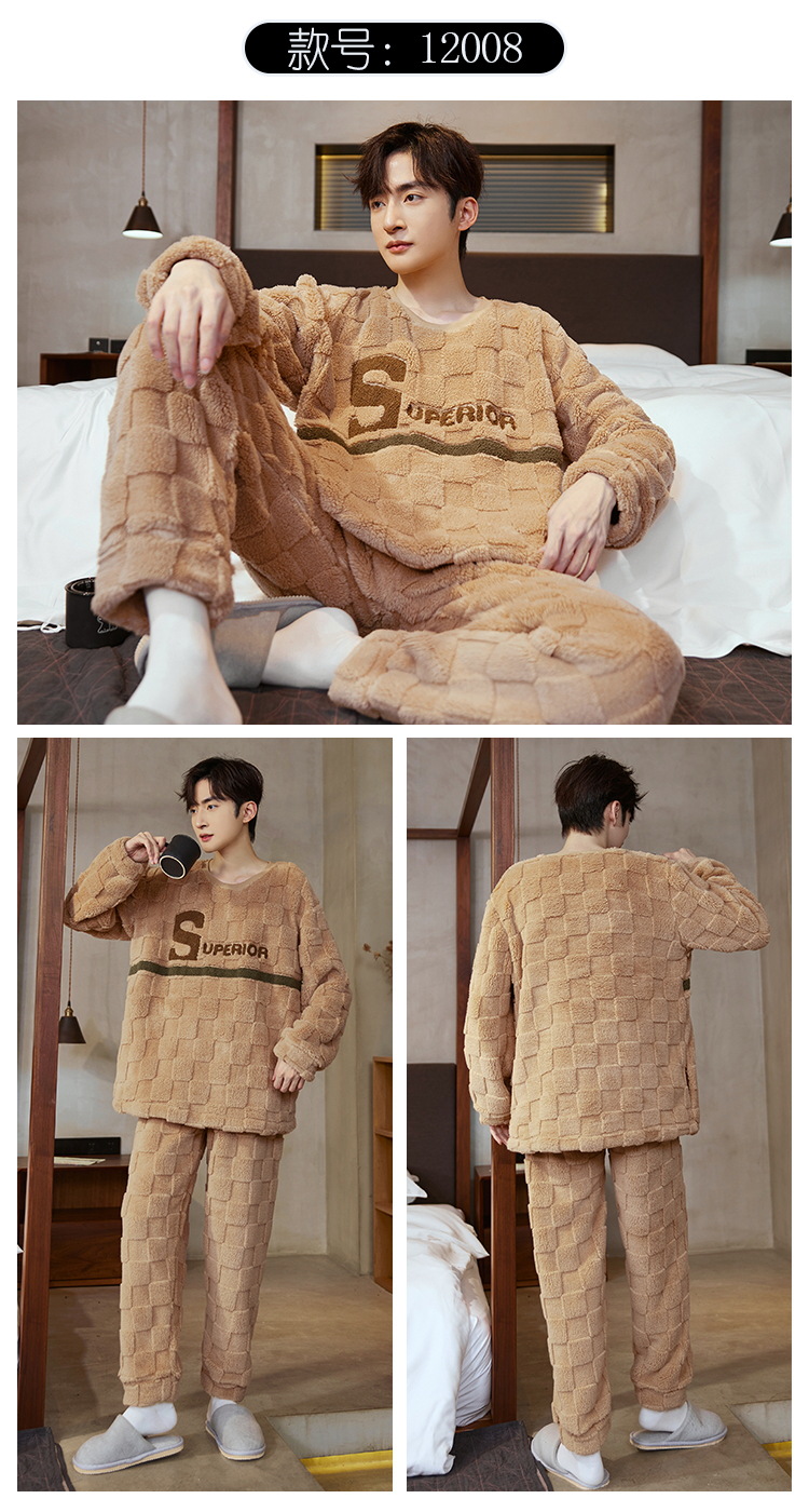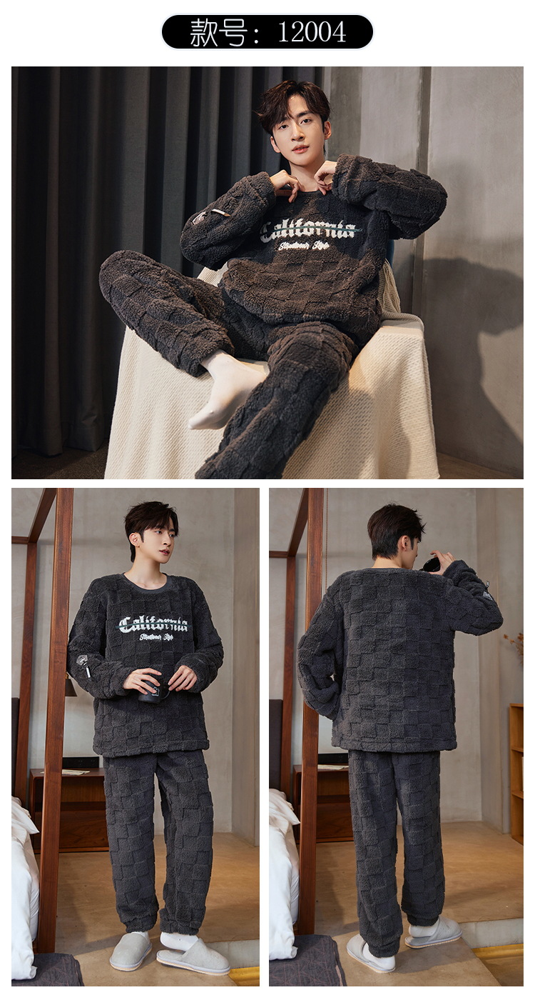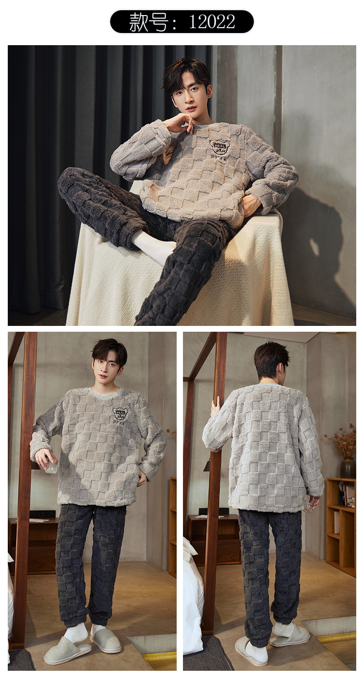 Pijamas de franela para hombres de invierno más grueso de terciopelo de coral de mangas largas para hombres juveniles de alta calidad conjunto de ropa de hogar