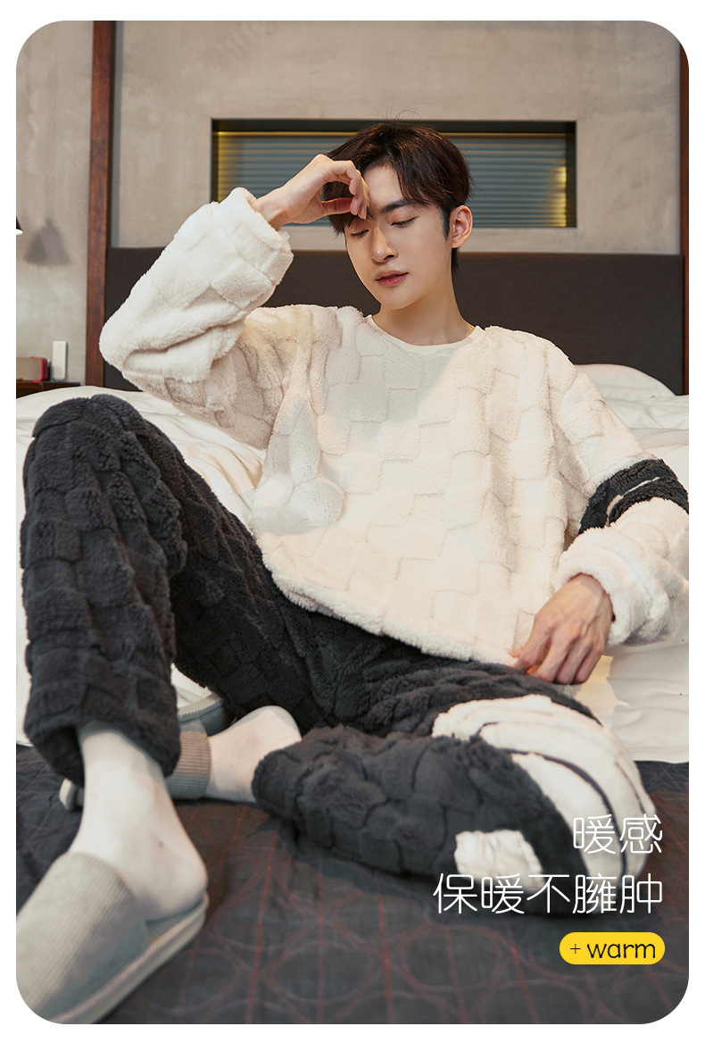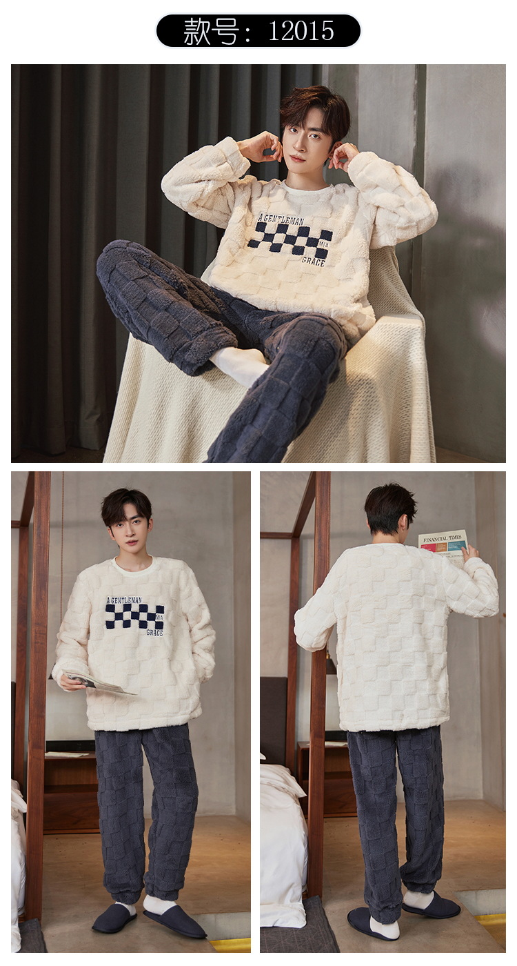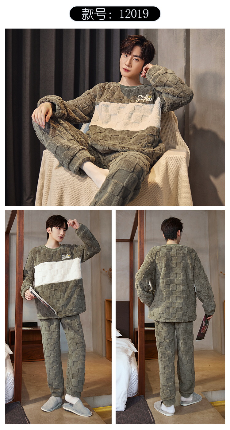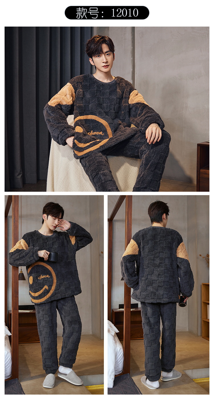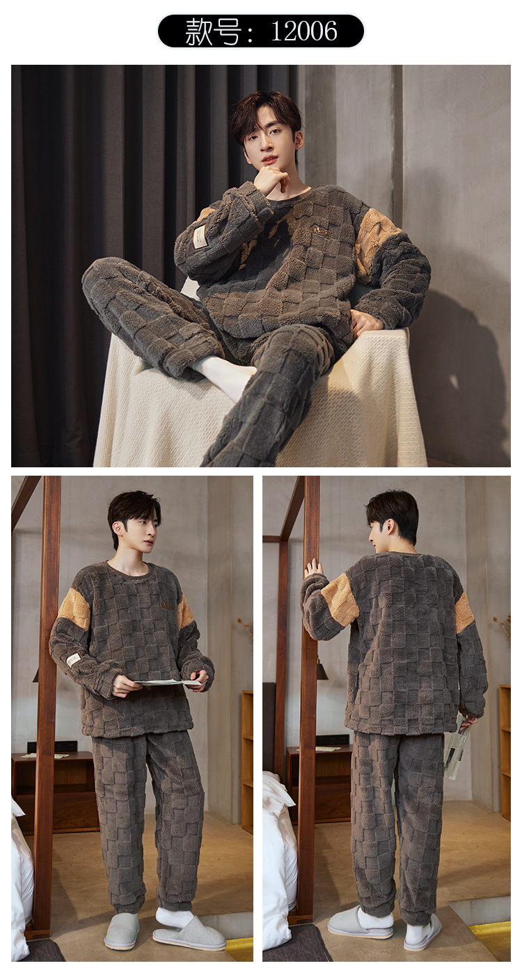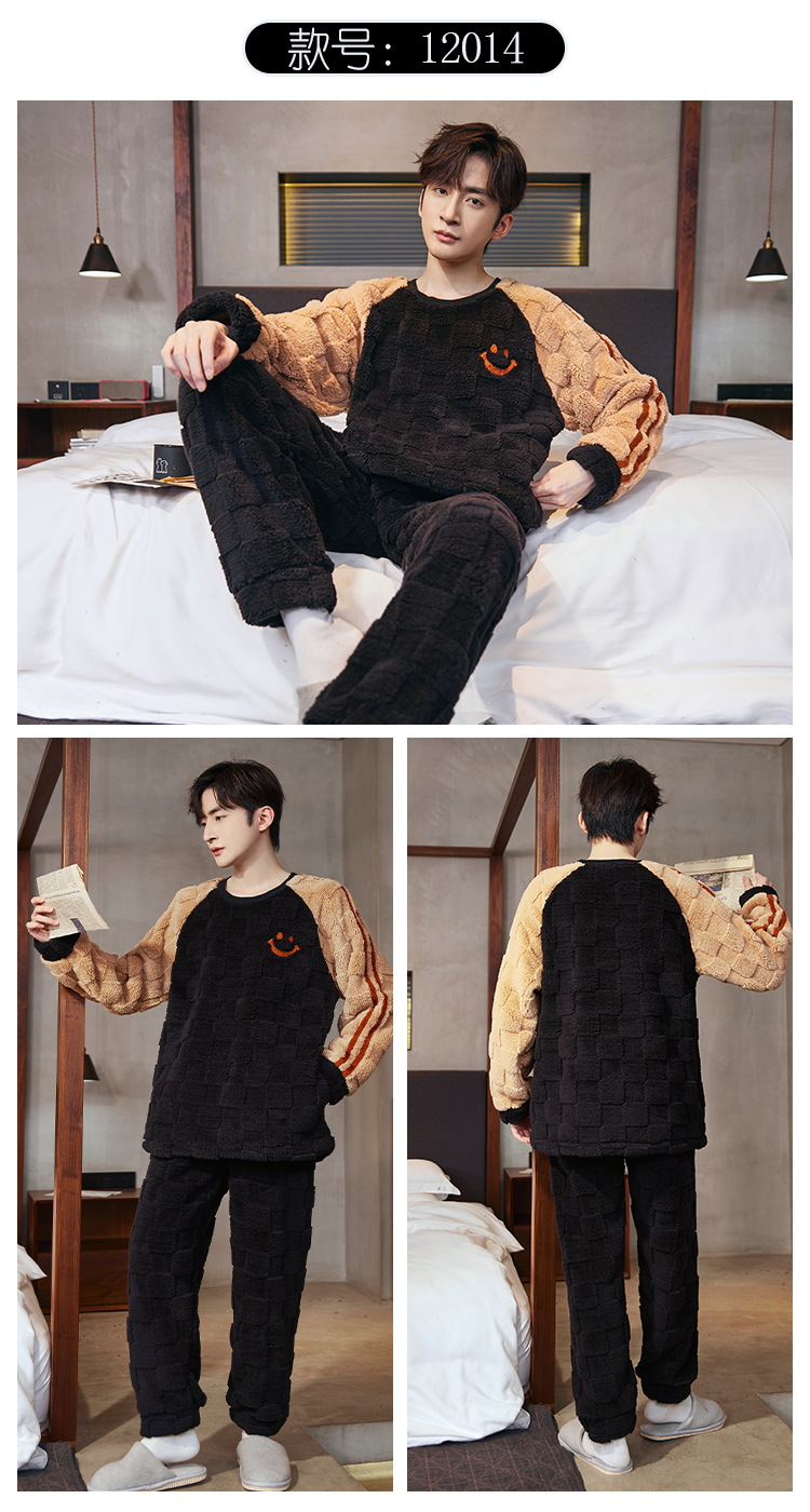 Pijamas de franela para hombres de invierno más grueso de terciopelo de coral de mangas largas para hombres juveniles de alta calidad conjunto de ropa de hogar