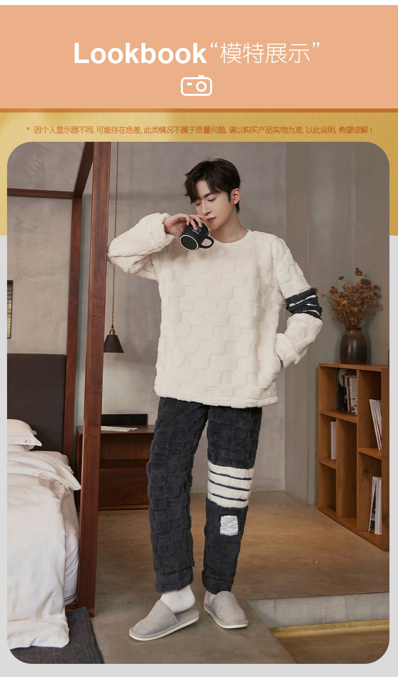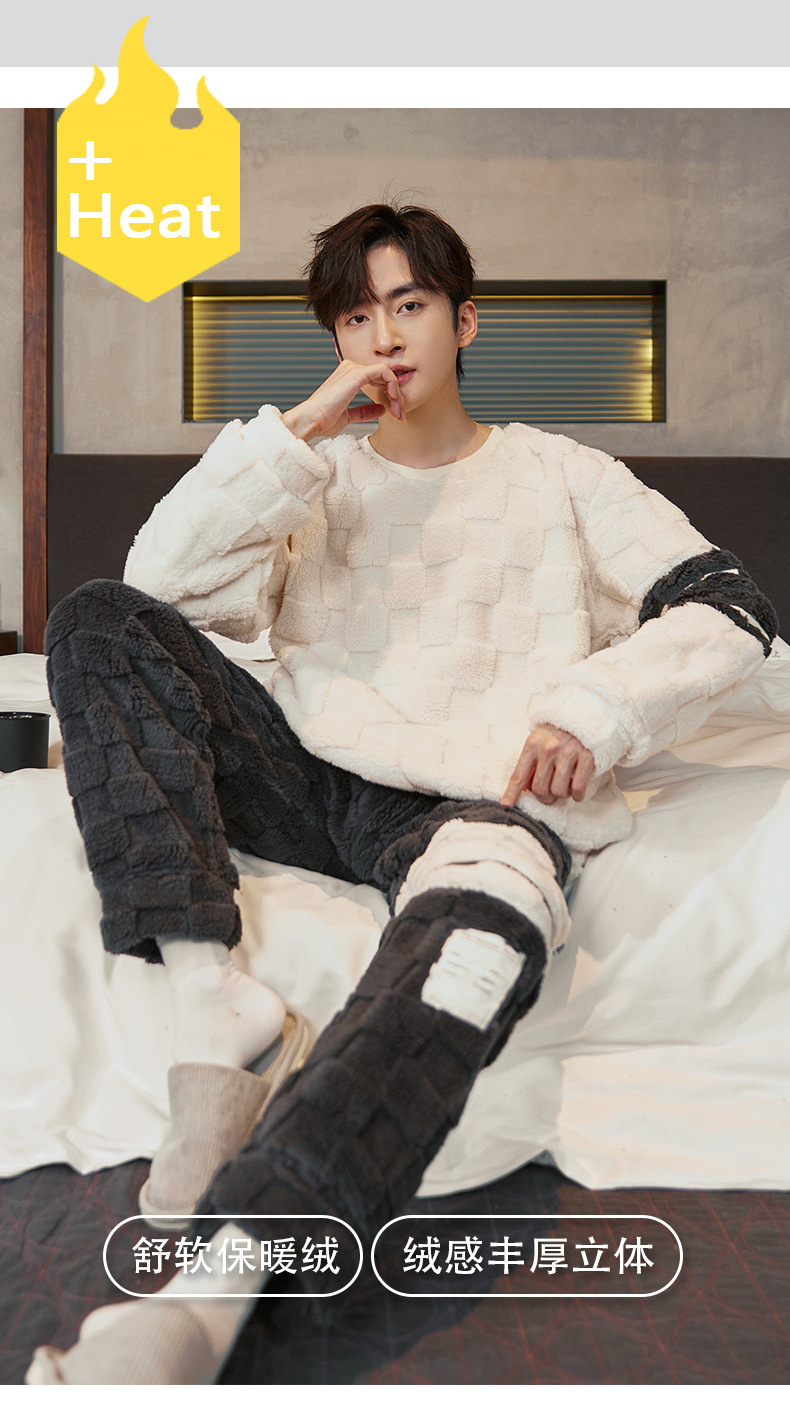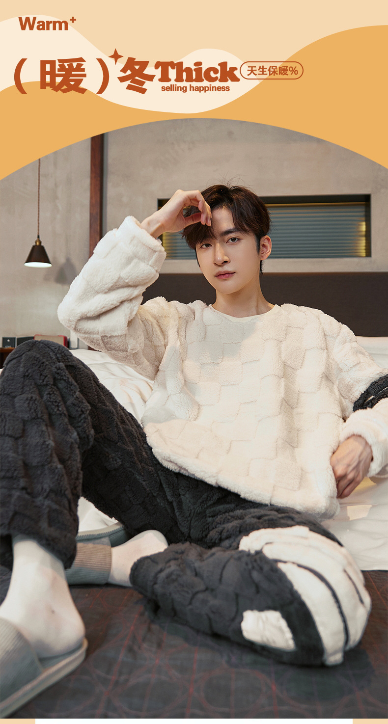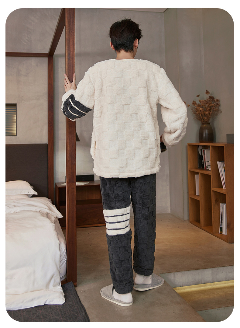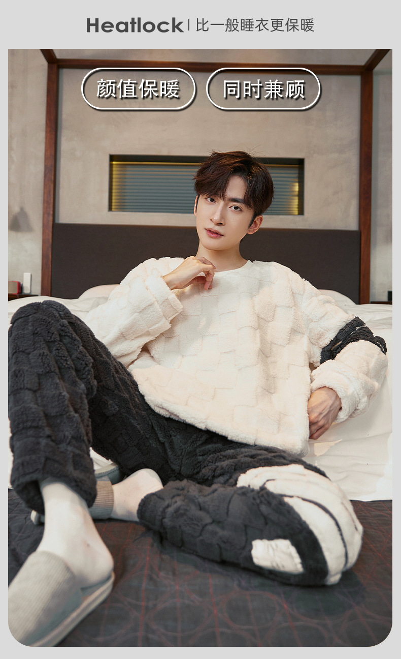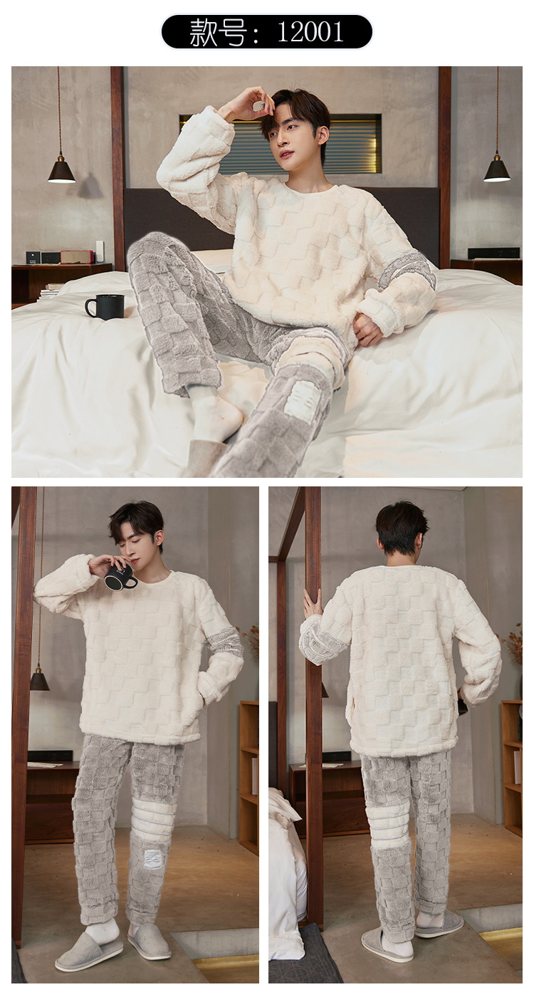 Pijamas de franela para hombres de invierno más grueso de terciopelo de coral de mangas largas para hombres juveniles de alta calidad conjunto de ropa de hogar