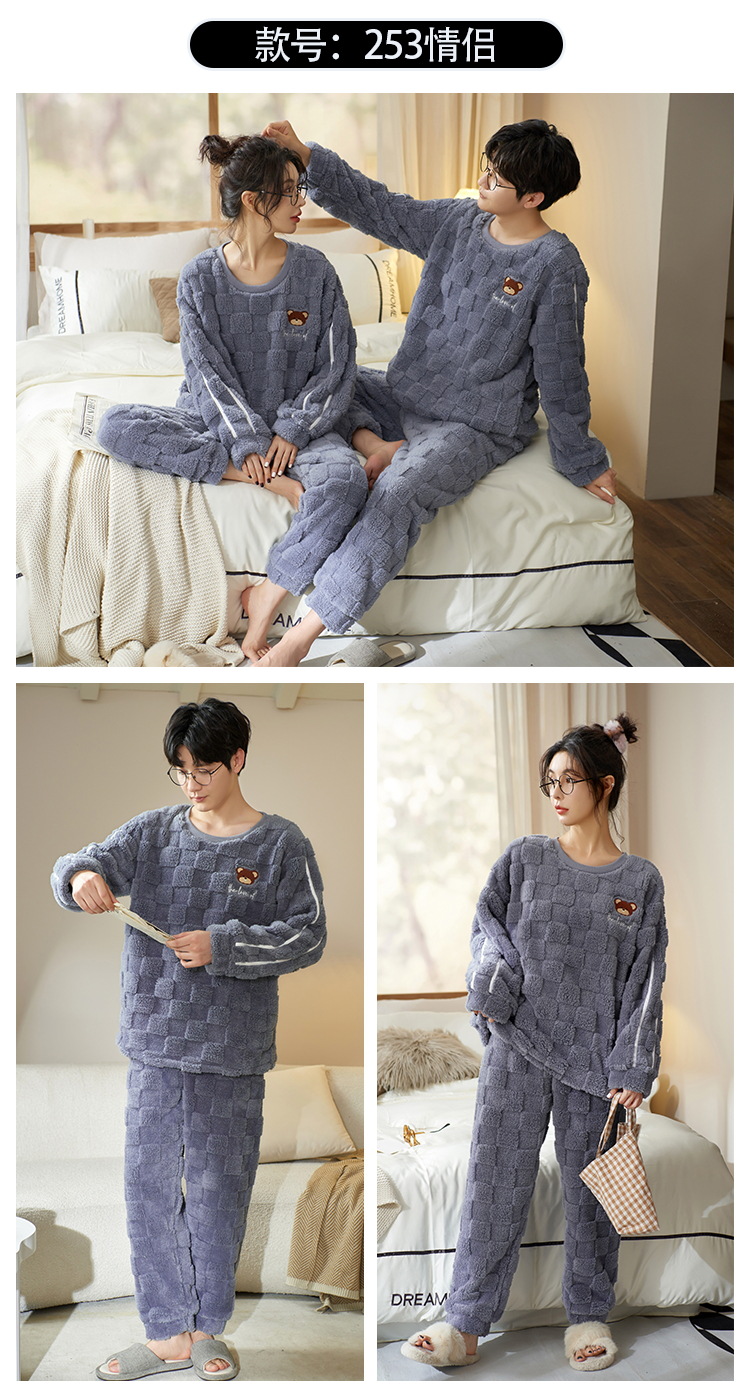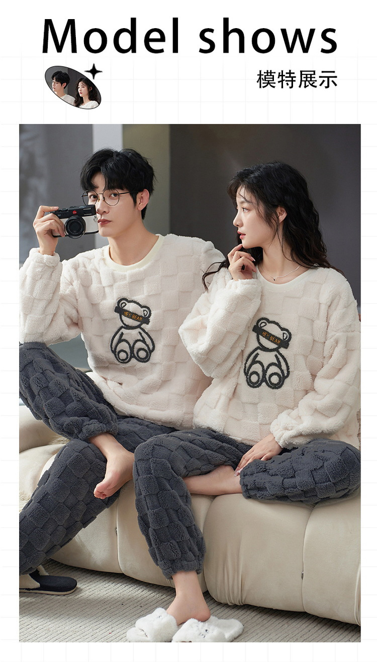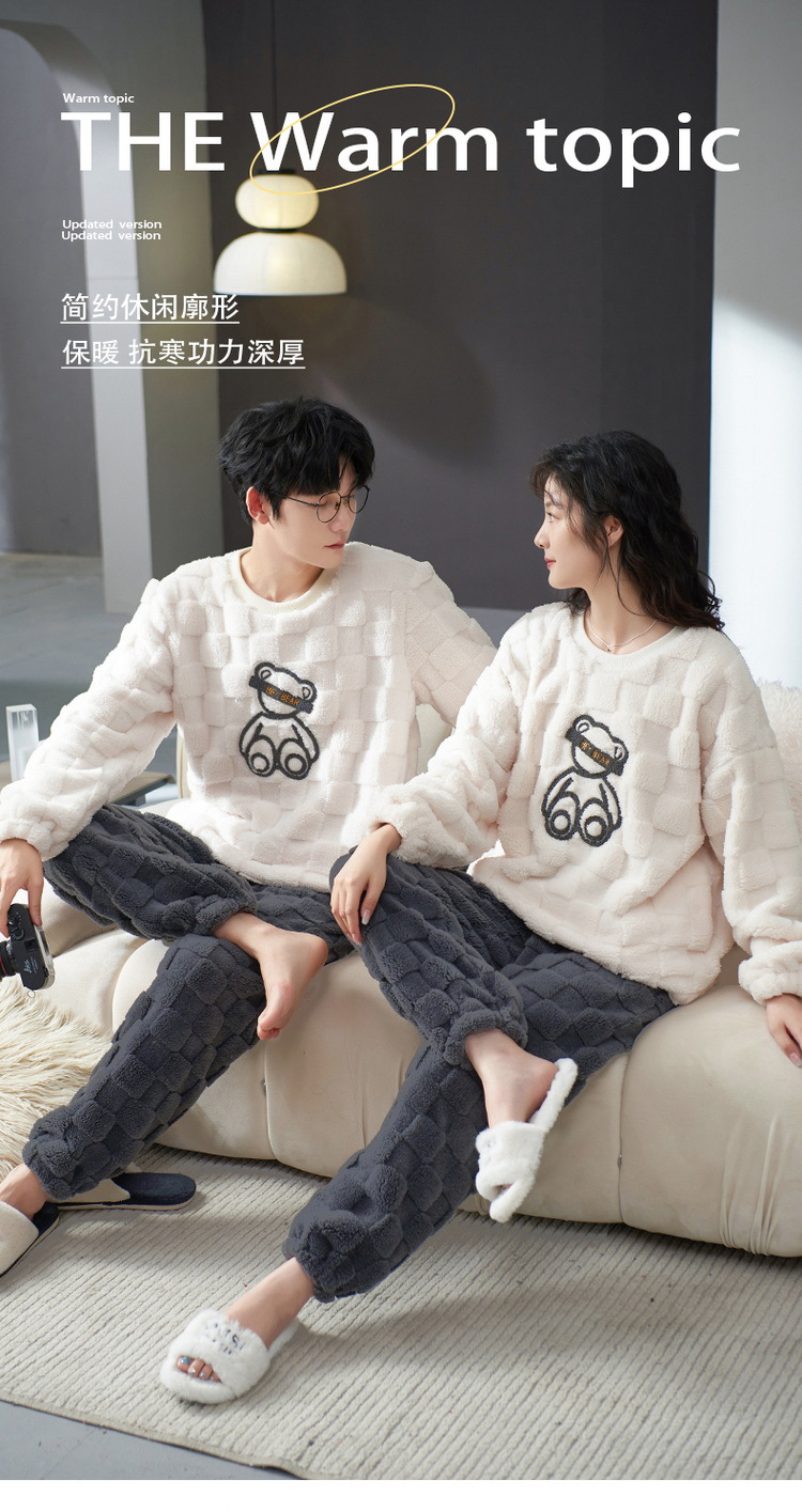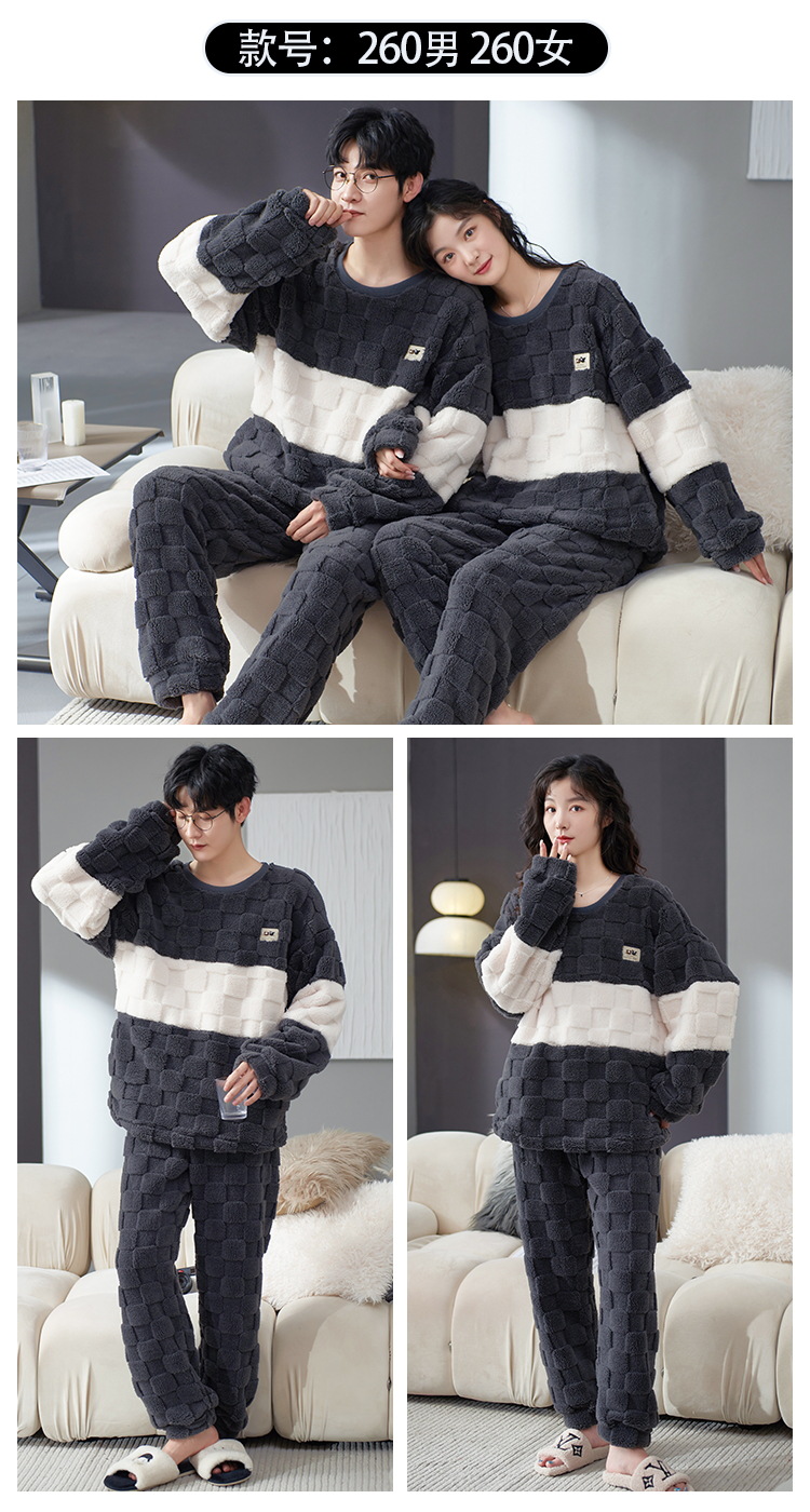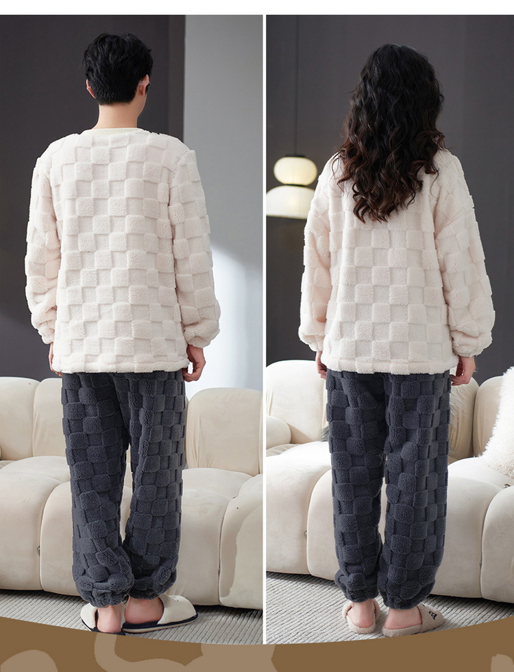 Pijamas de pareja de invierno forrados de lana engrosada coral polar hombres y mujeres Otoño e Invierno franela ropa para el hogar cálido traje de dos piezas