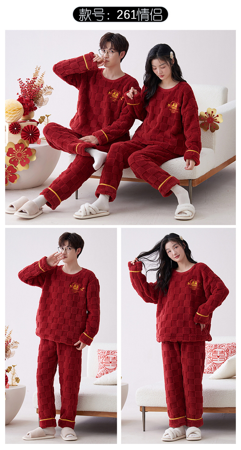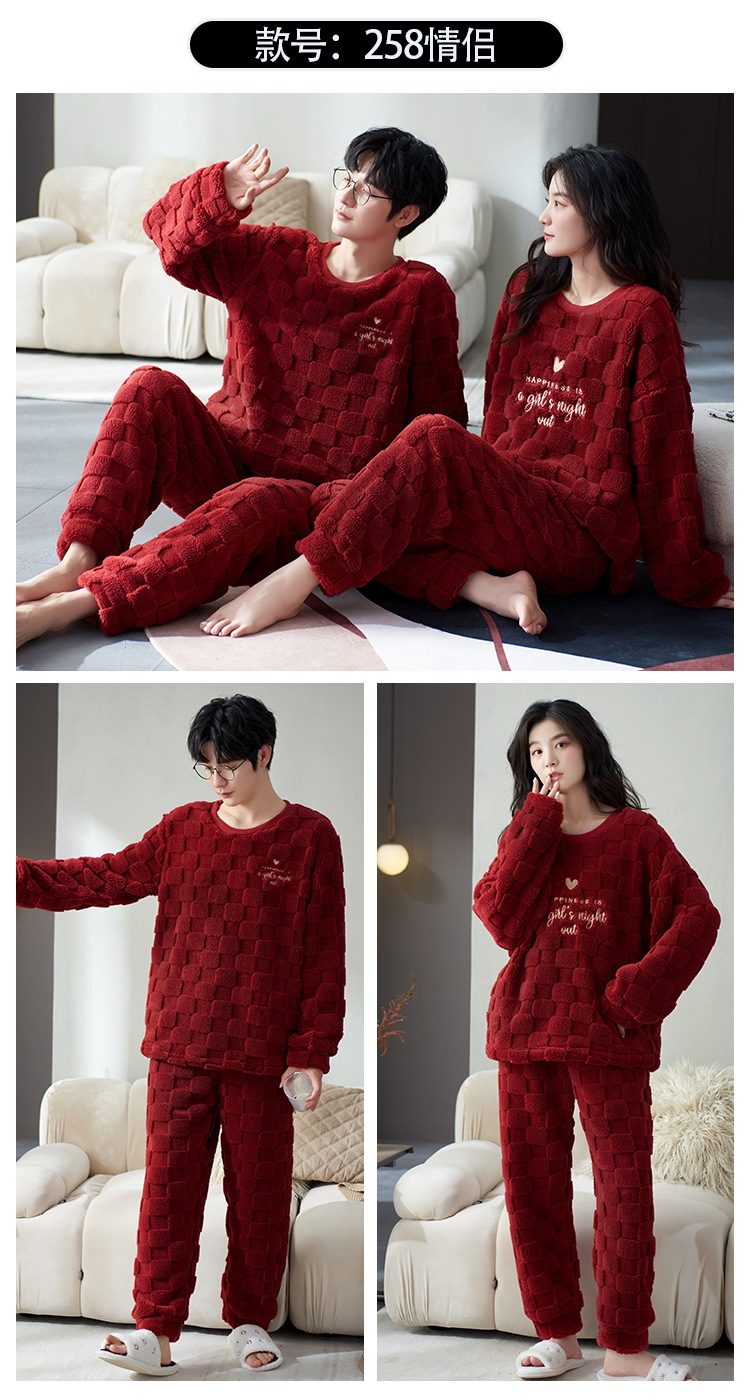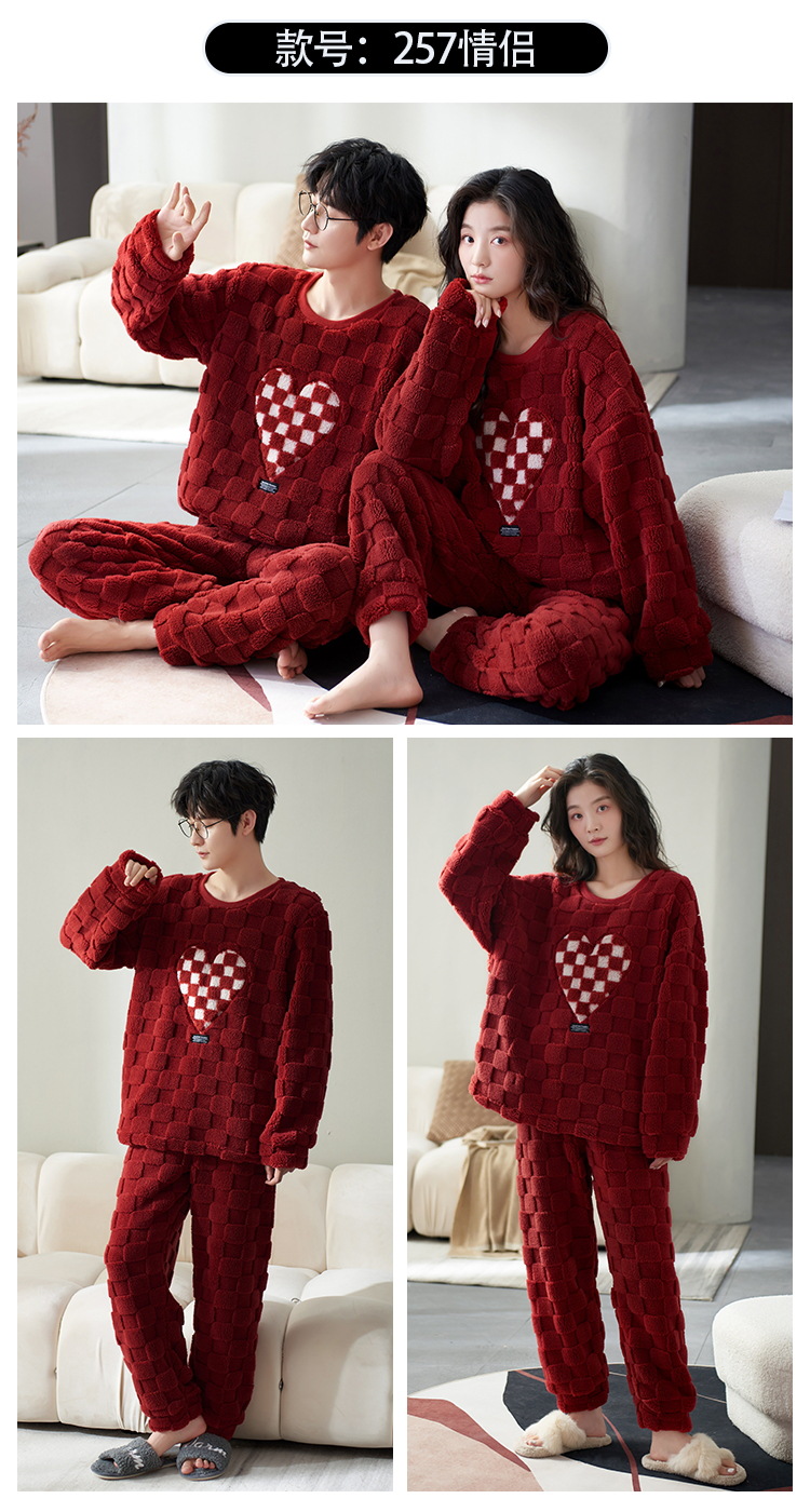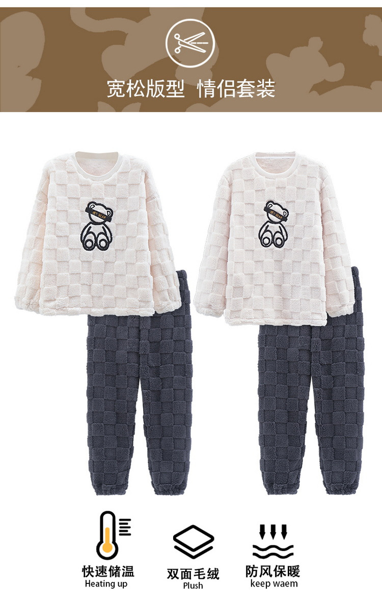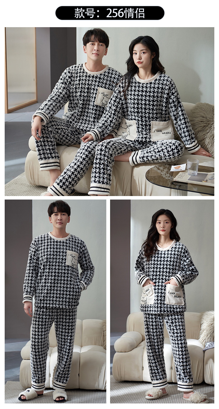 Pijamas de pareja de invierno forrados de lana engrosada coral polar hombres y mujeres Otoño e Invierno franela ropa para el hogar cálido traje de dos piezas
