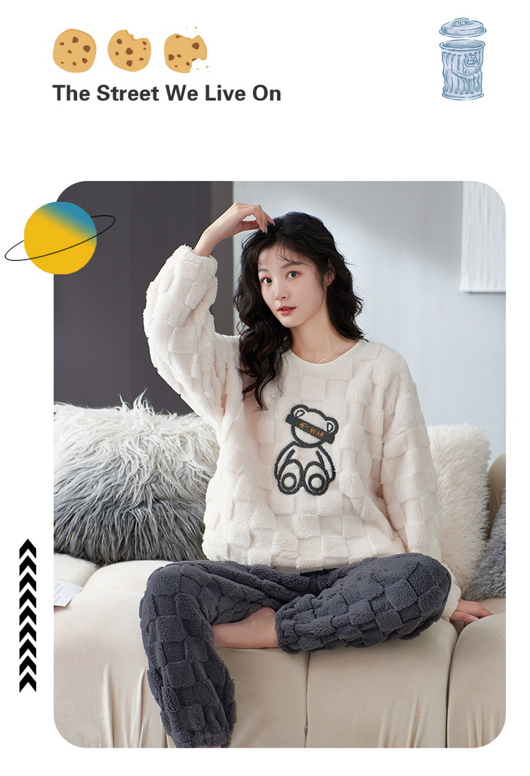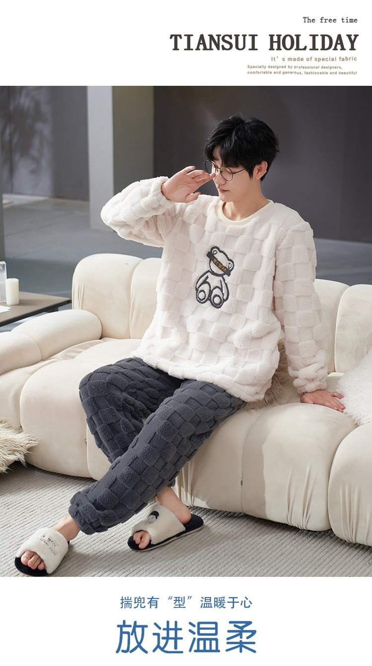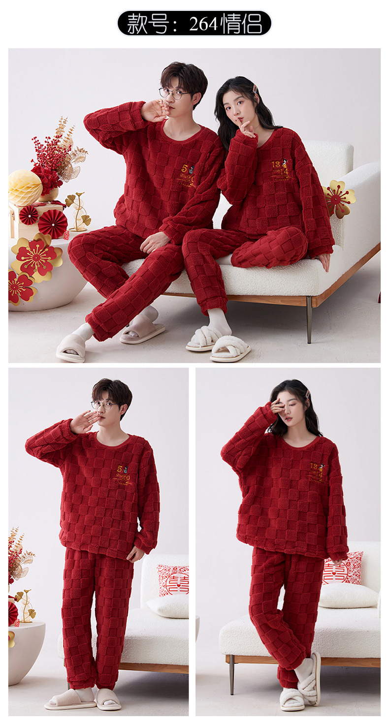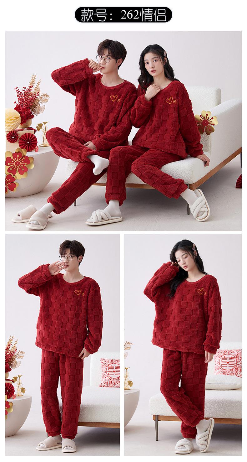 Pijamas de pareja de invierno forrados de lana engrosada coral polar hombres y mujeres Otoño e Invierno franela ropa para el hogar cálido traje de dos piezas